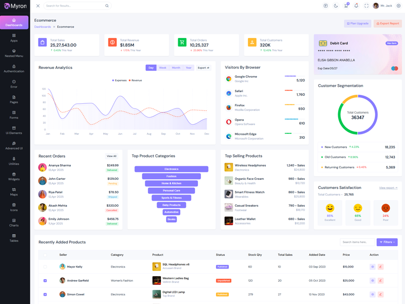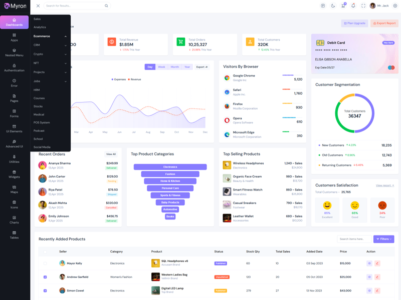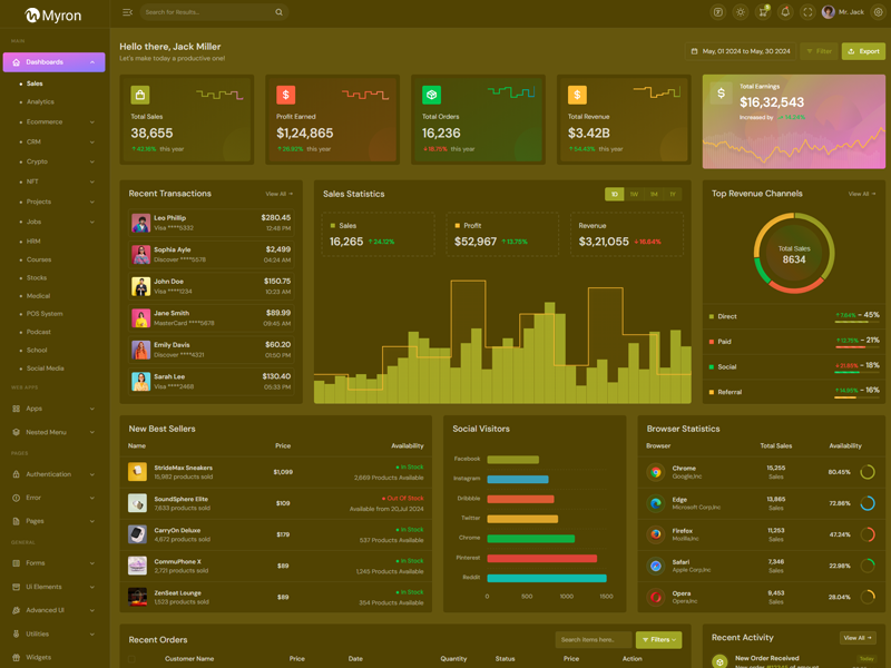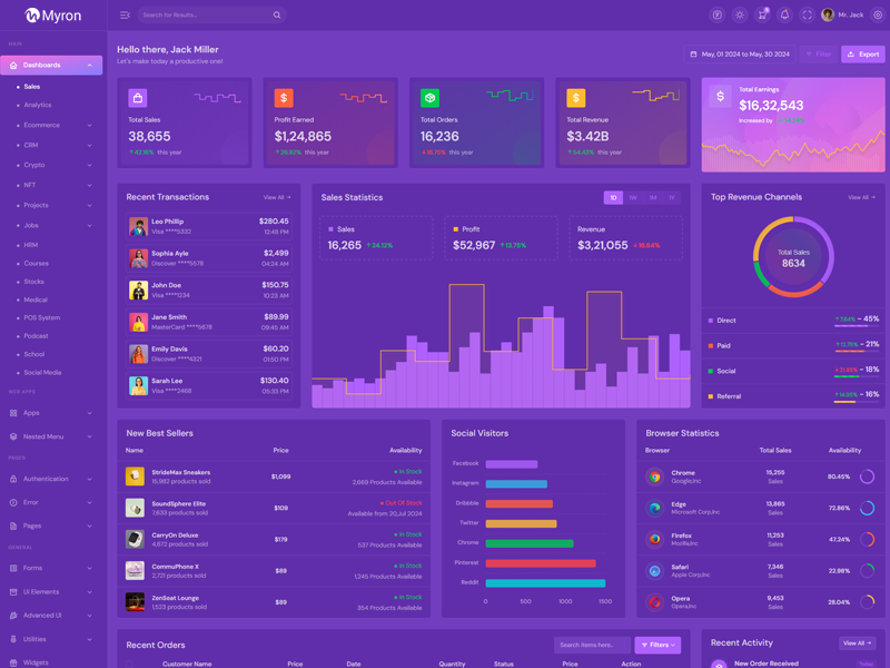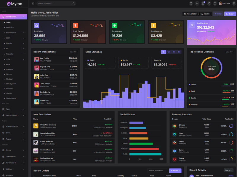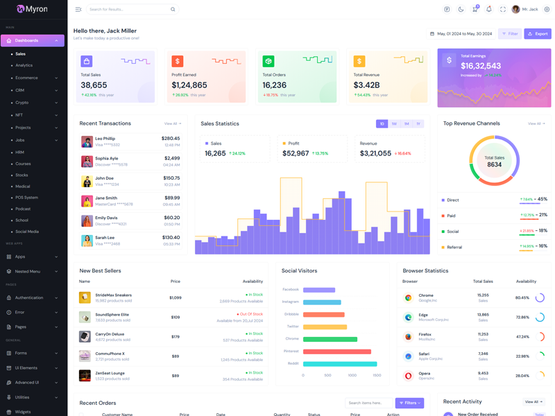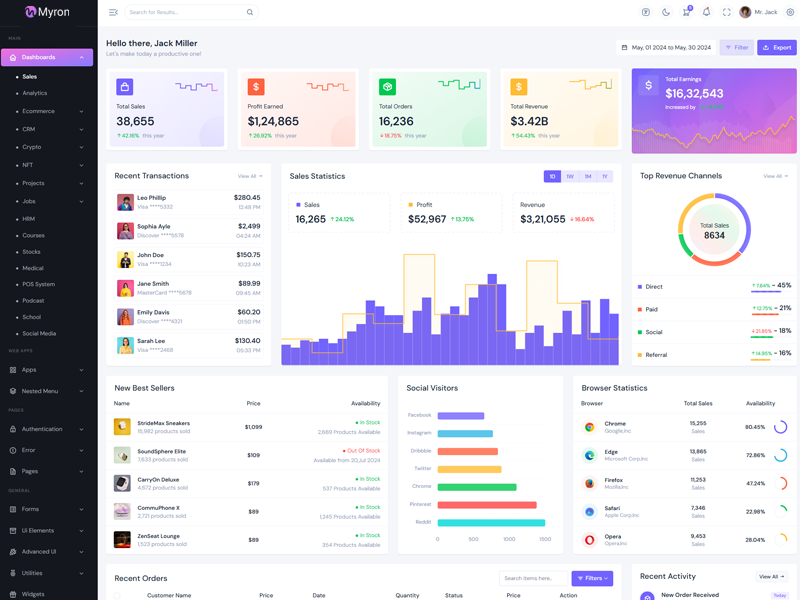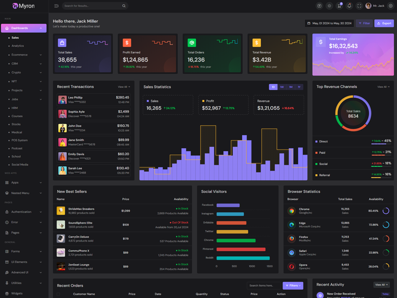 Here’s a quick overview of the Myron Bootstrap 5 Dashboard Template and its key features.