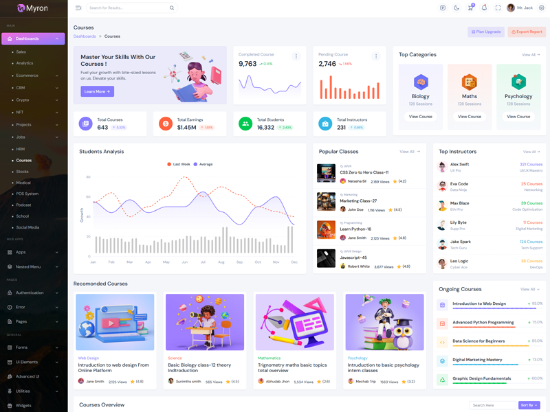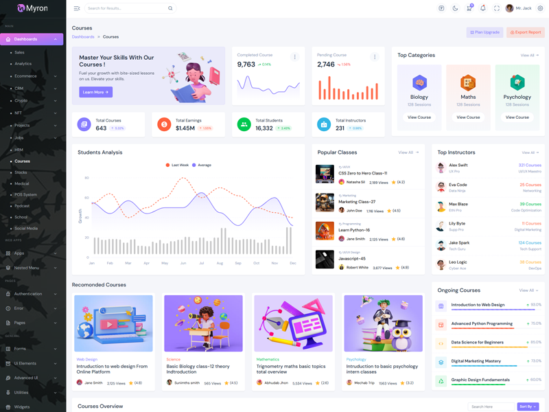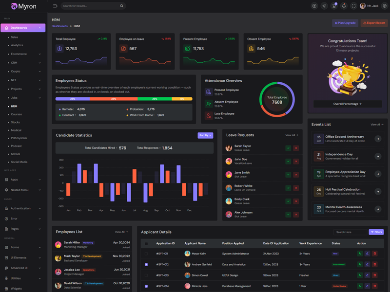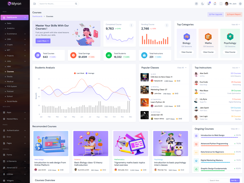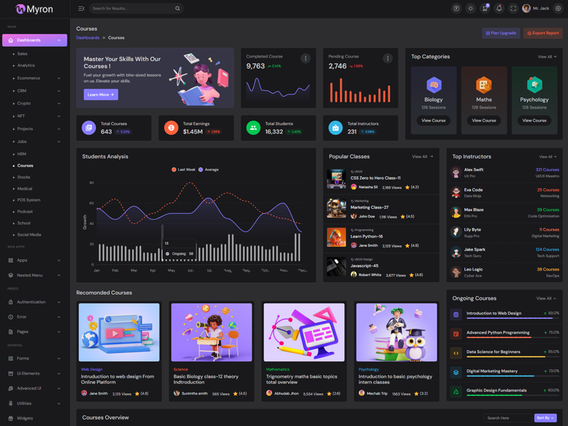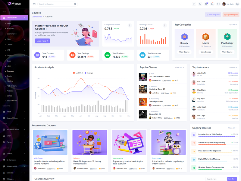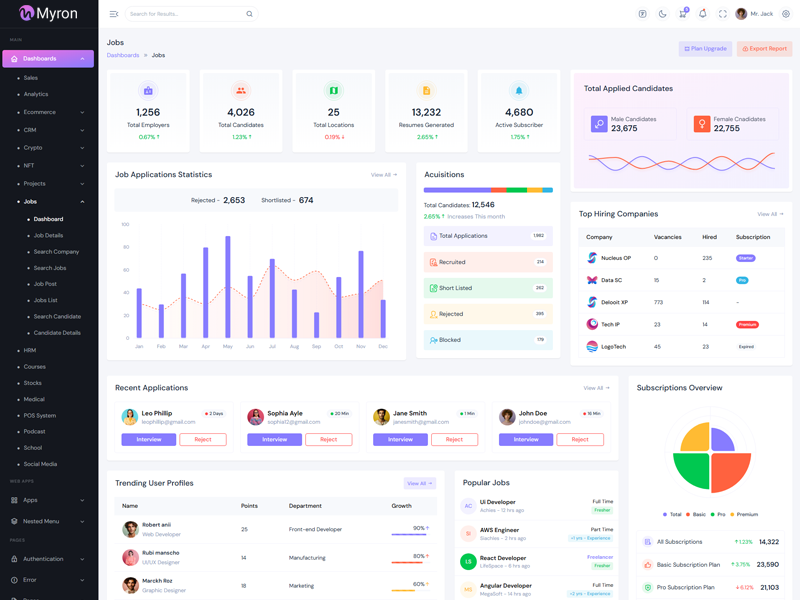 Discover the latest trending features integrated into the myron Admin template, highlighting how we’ve enhanced and designed our offering. We consistently monitor the most popular design trends to ensure our template remains cutting-edge.