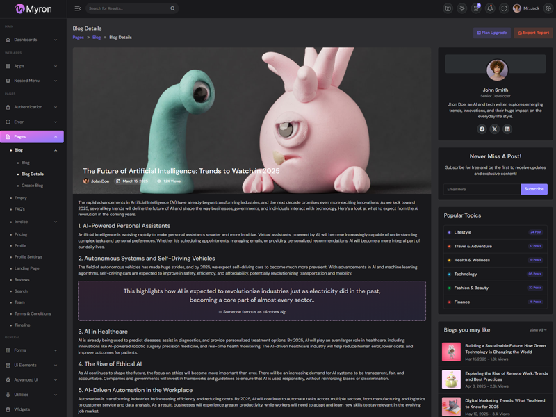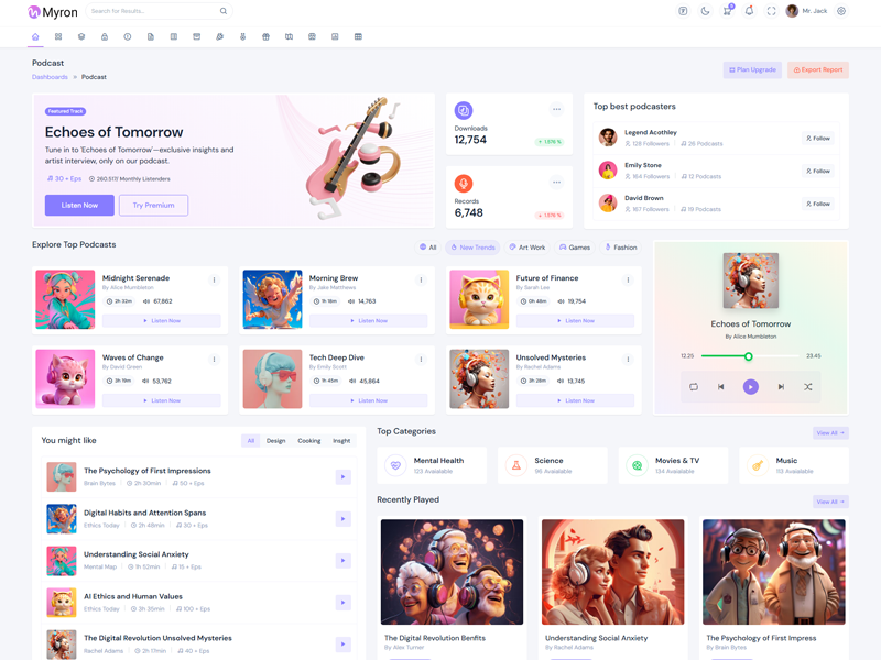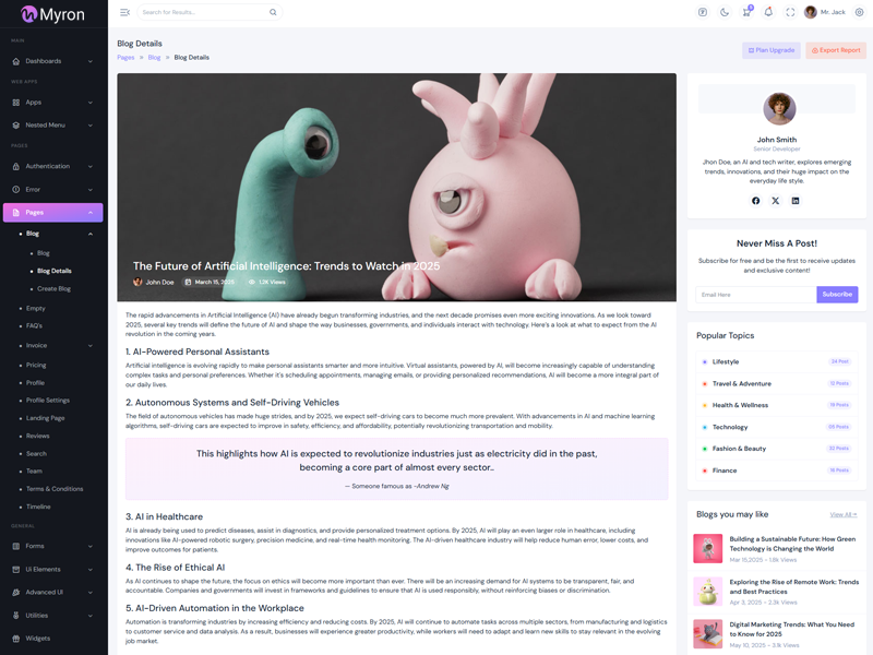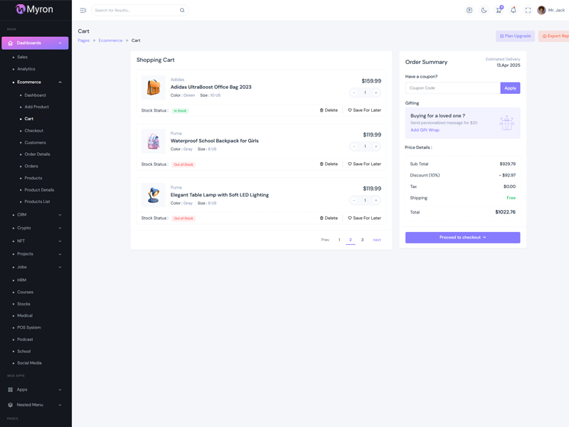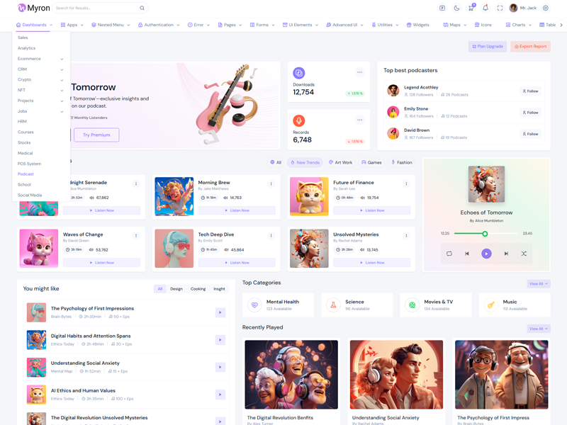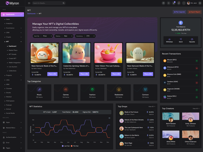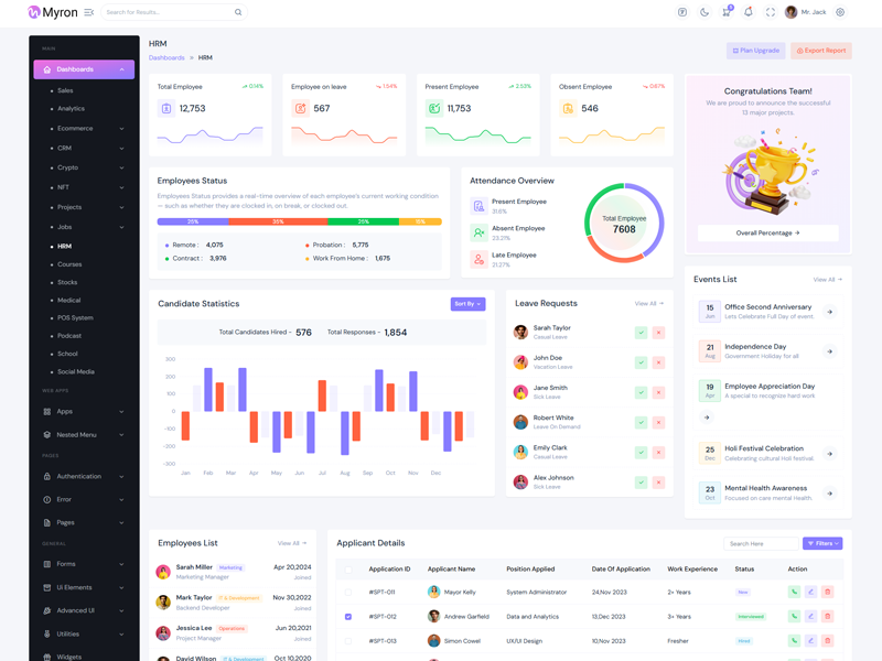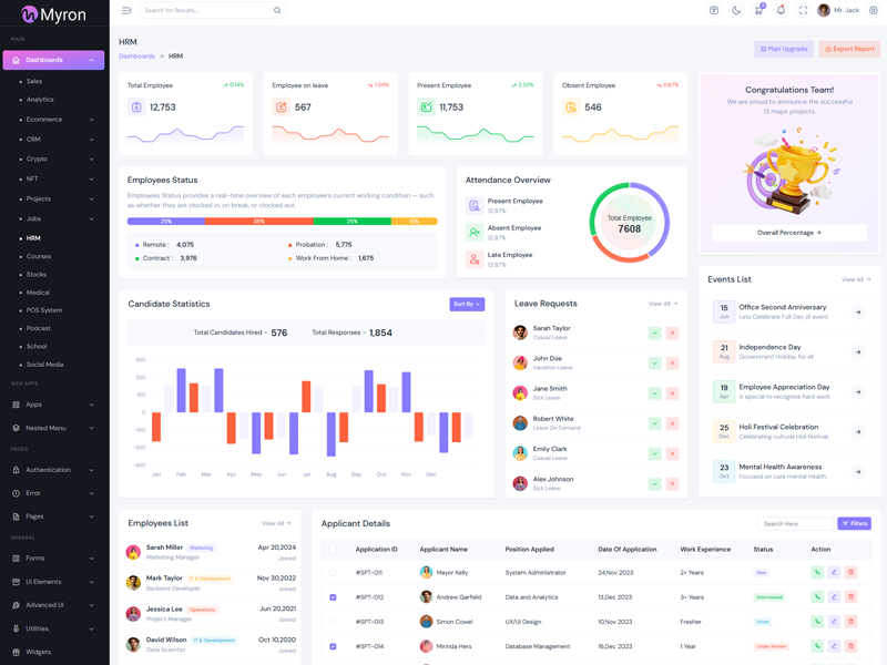 Discover the latest trending features integrated into the myron Admin template, highlighting how we’ve enhanced and designed our offering. We consistently monitor the most popular design trends to ensure our template remains cutting-edge.