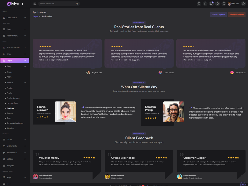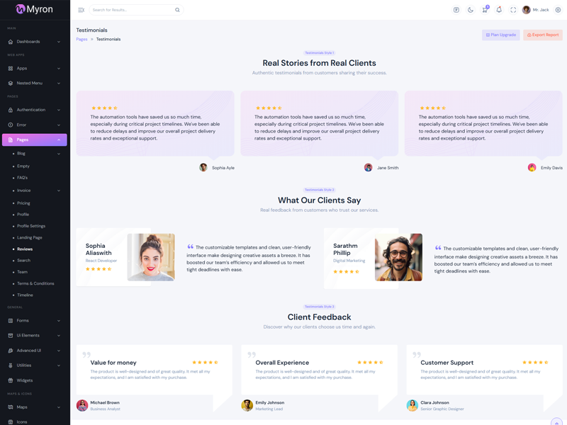 Discover how Myron Bootstrap Admin Template has transformed projects for professionals worldwide. From startups to enterprise teams, Myron speeds up dashboards, hardens UI consistency, and slashes build time—so you ship faster, with fewer bugs, and a design your users love.