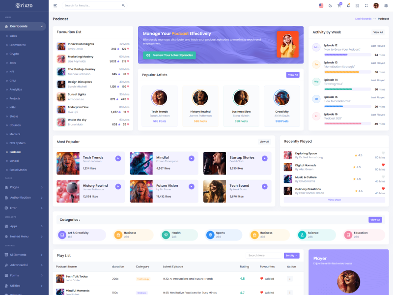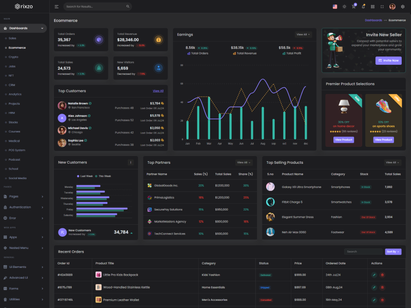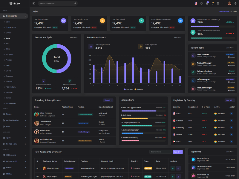 Explore the latest trending features incorporated into the Rixzo Admin template, showcasing how we have enhanced and designed our template. When it comes to design, we always keep a close watch on the most trending features.