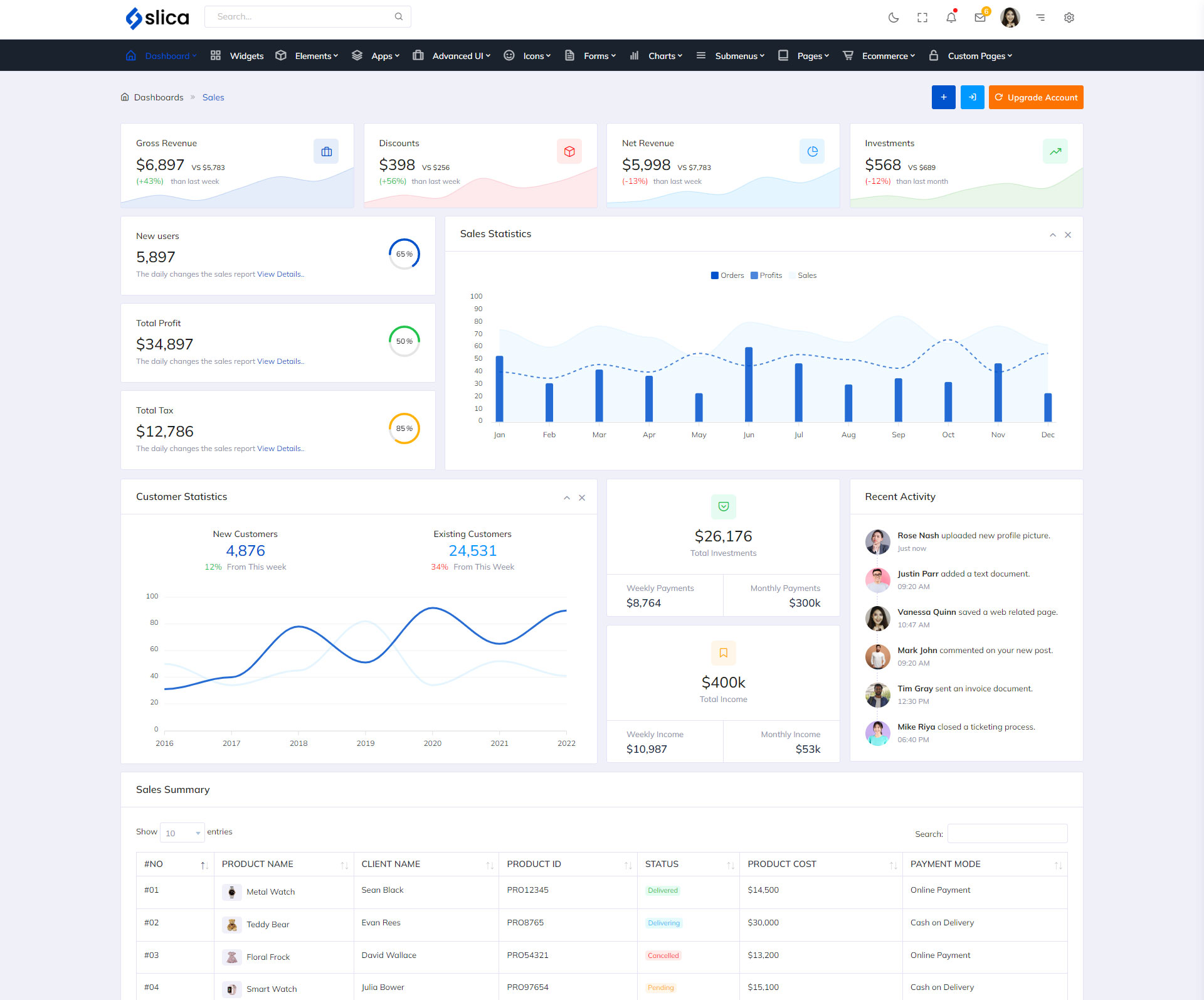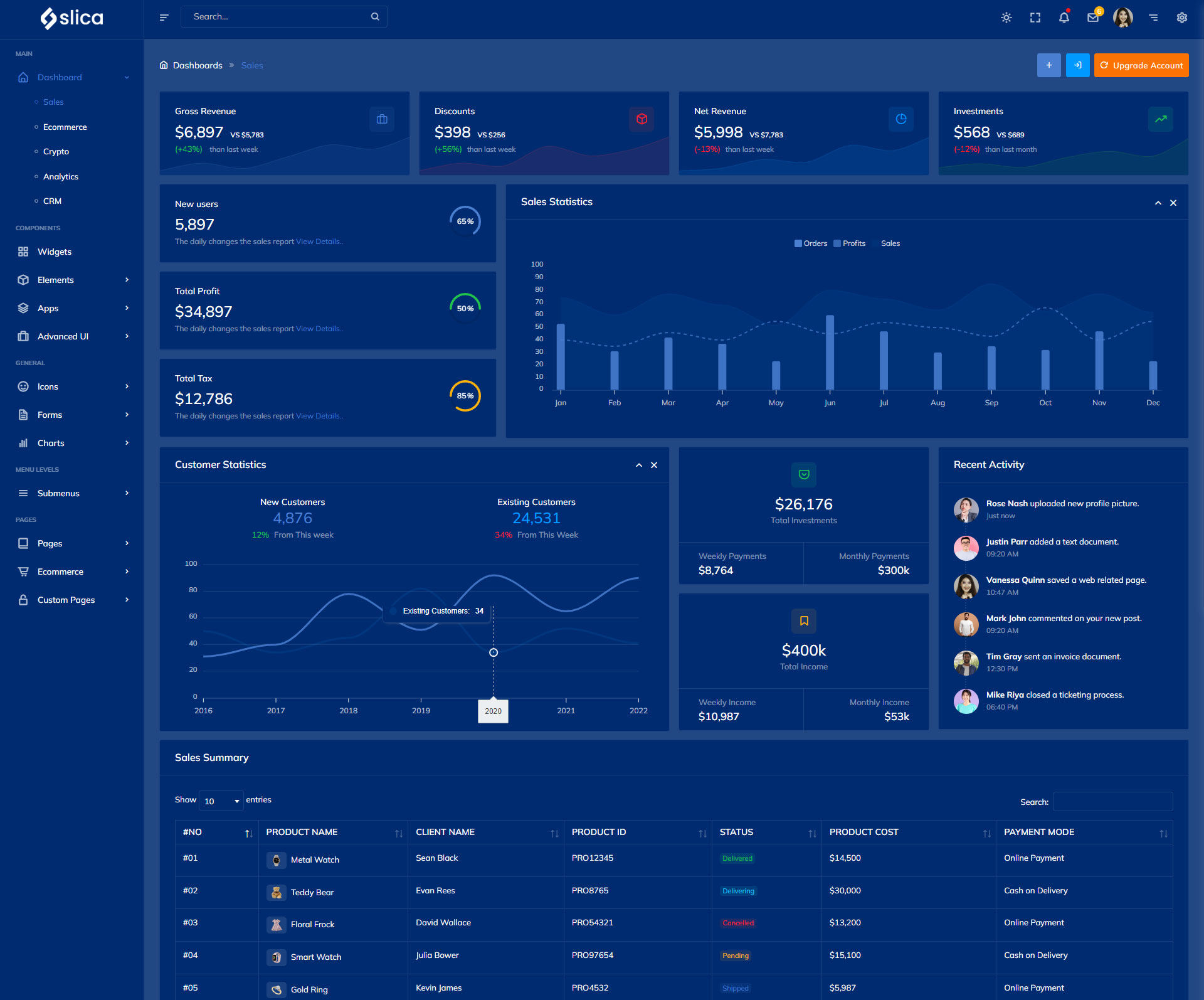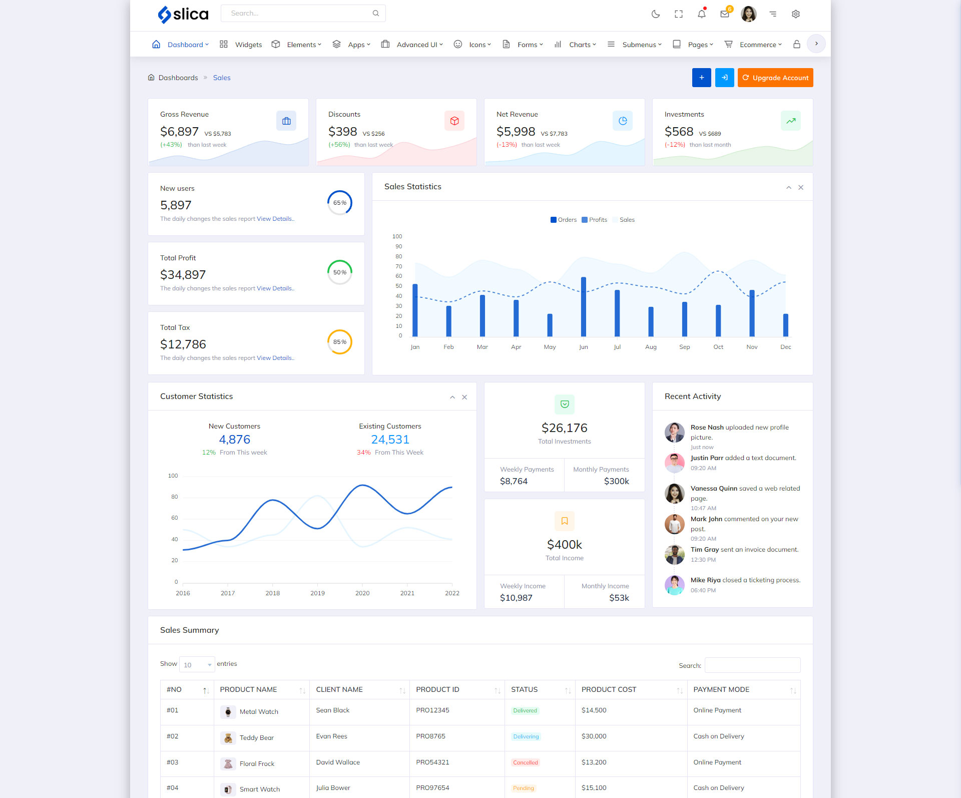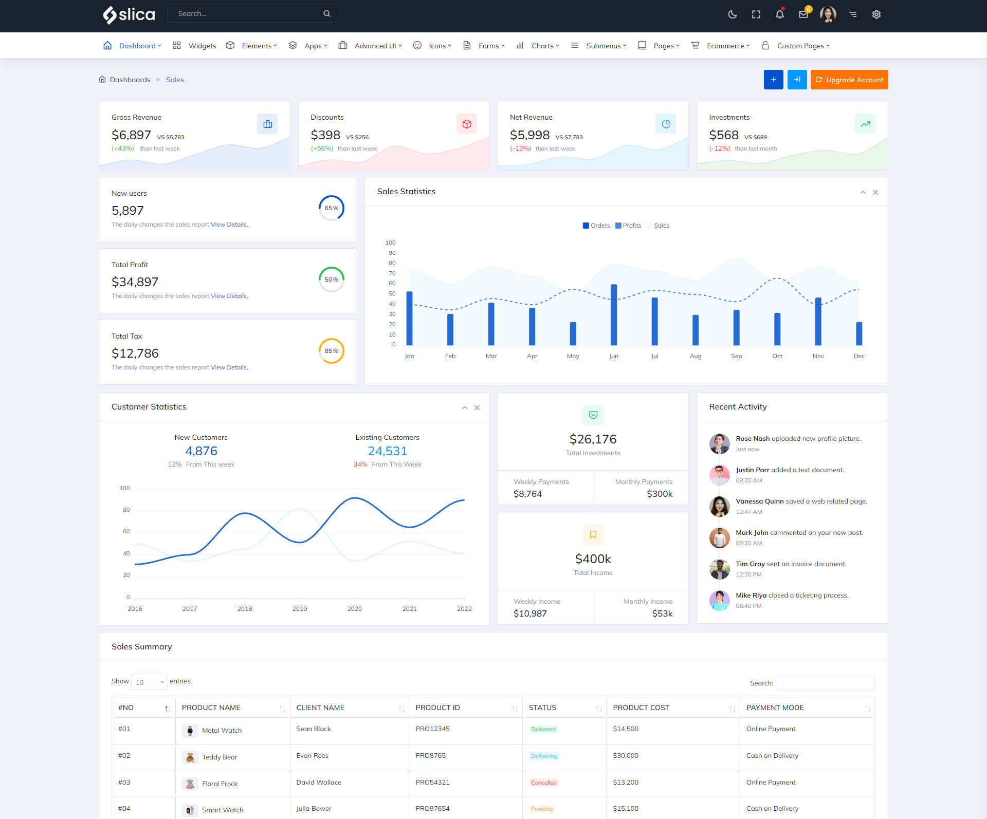 Explore the latest trending features incorporated into the Slica Admin template, showcasing how we have enhanced and designed our template. When it comes to design, we always keep a close watch on the most trending features.