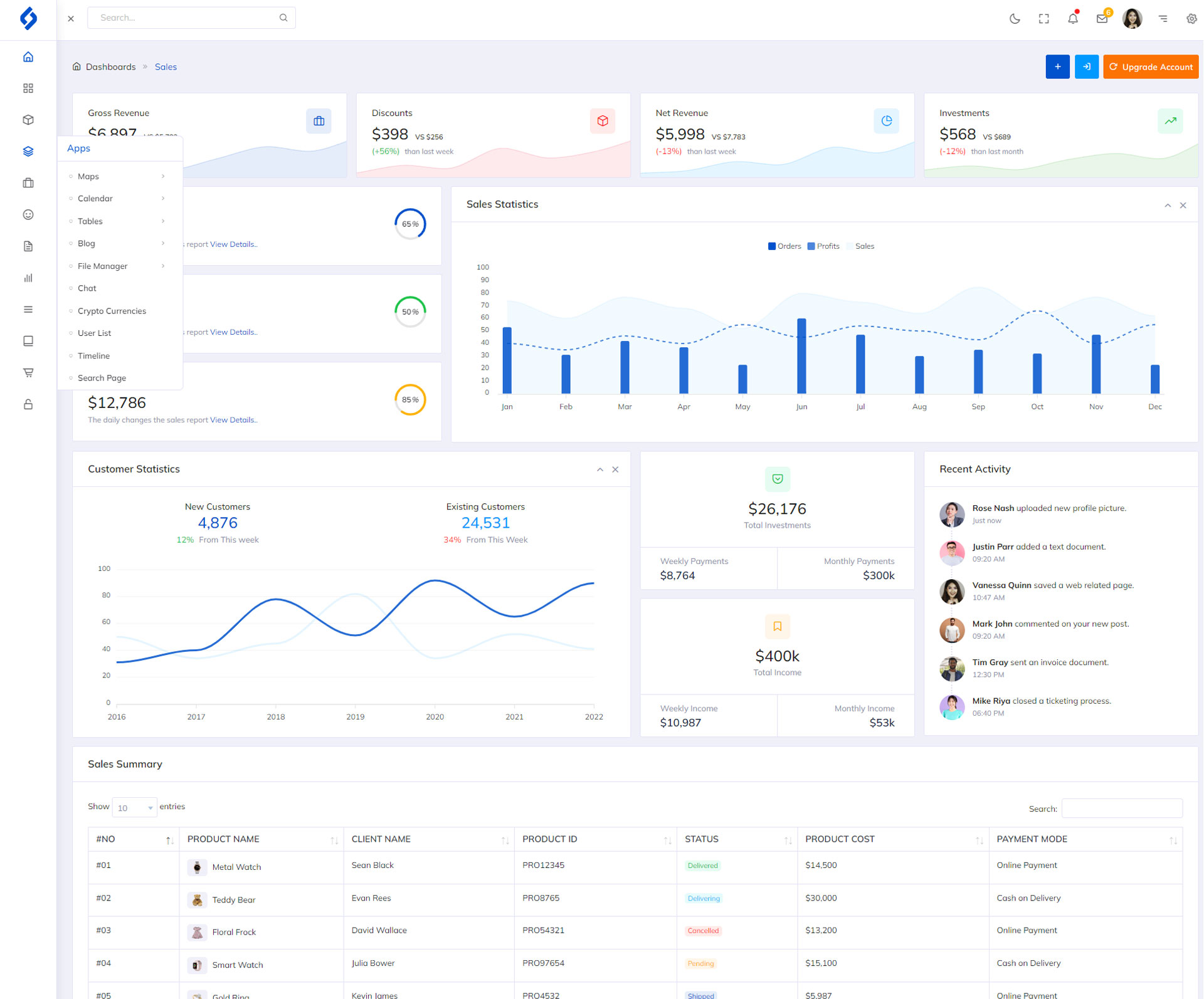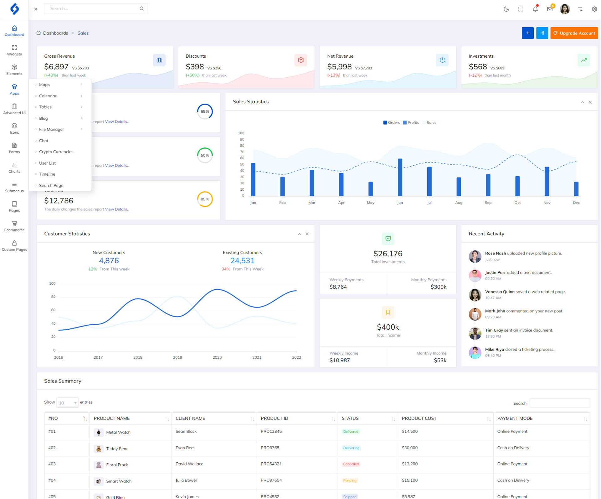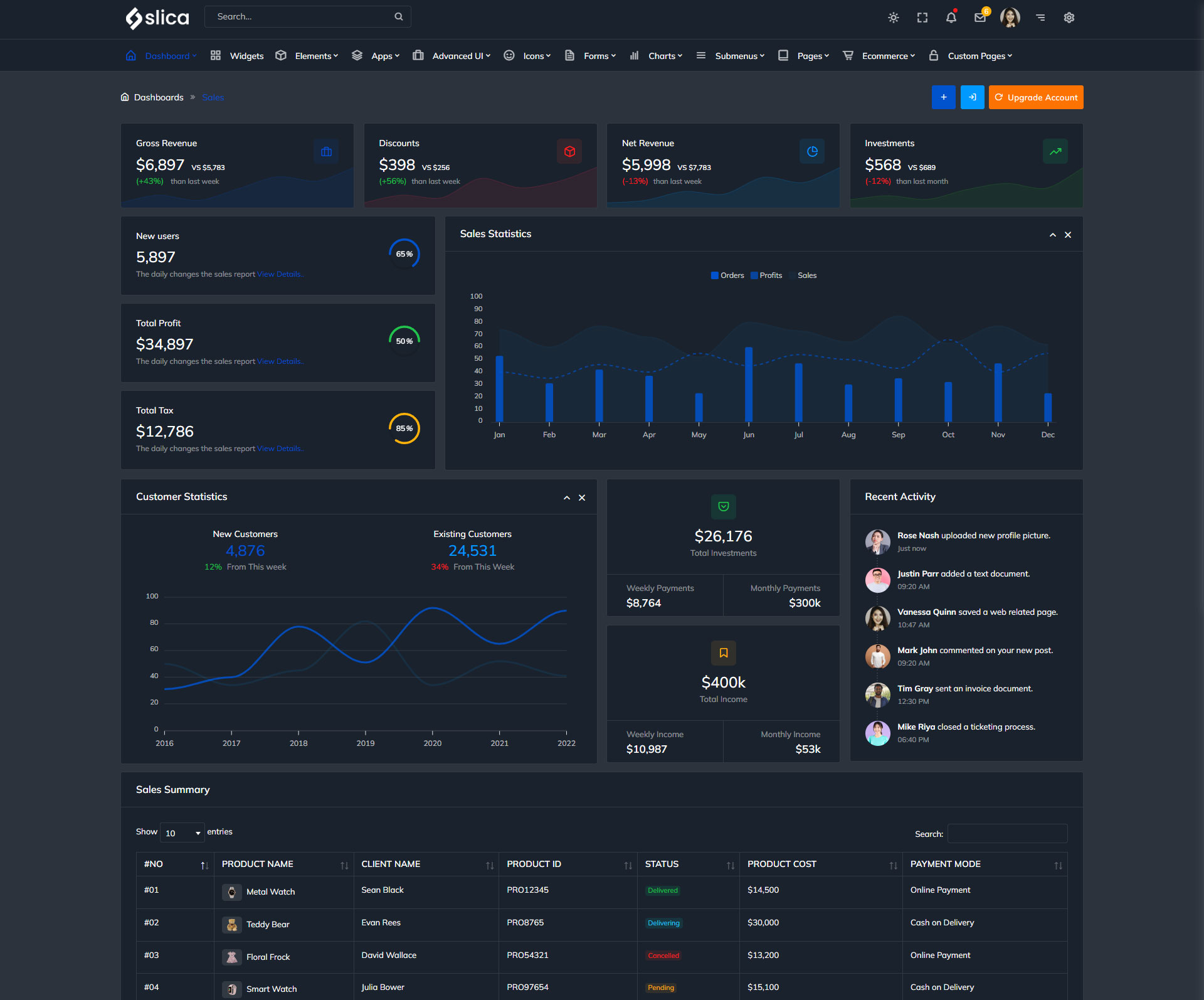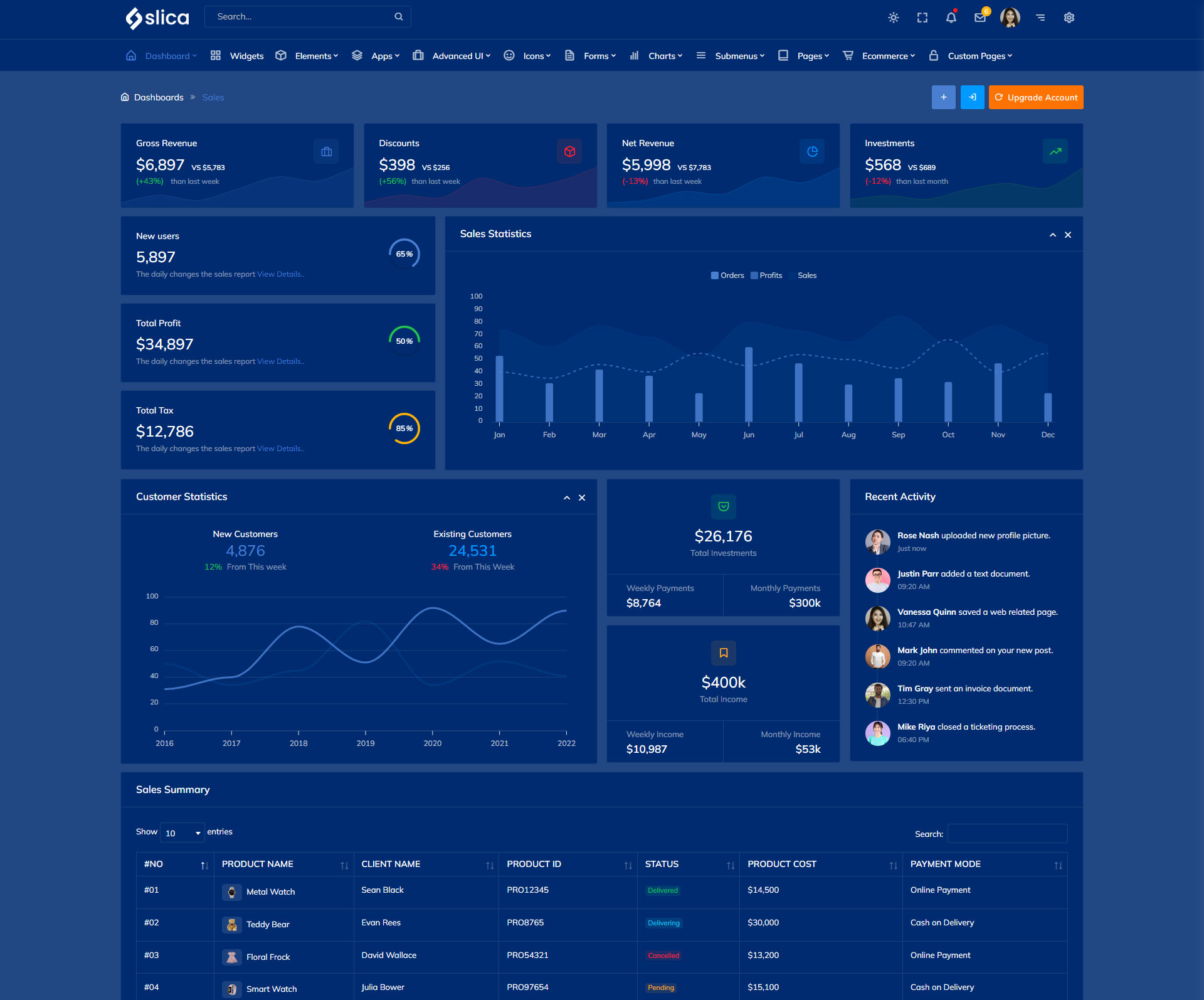 Explore the latest trending features incorporated into the Slica Admin template, showcasing how we have enhanced and designed our template. When it comes to design, we always keep a close watch on the most trending features.