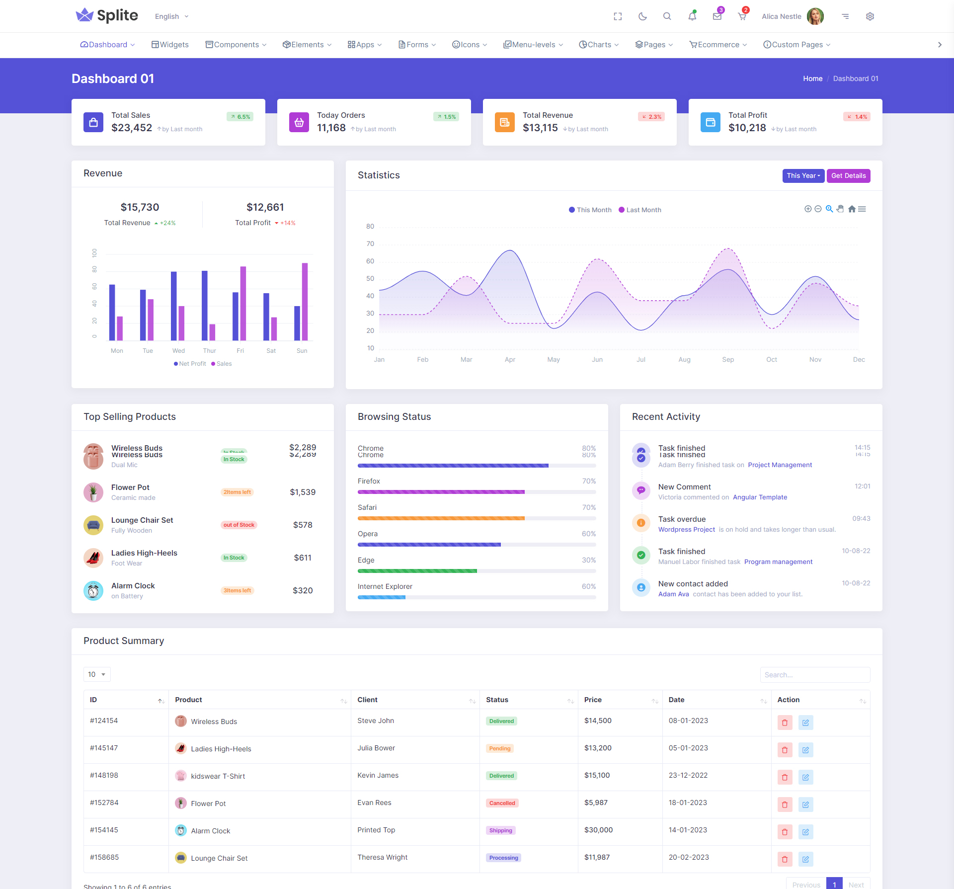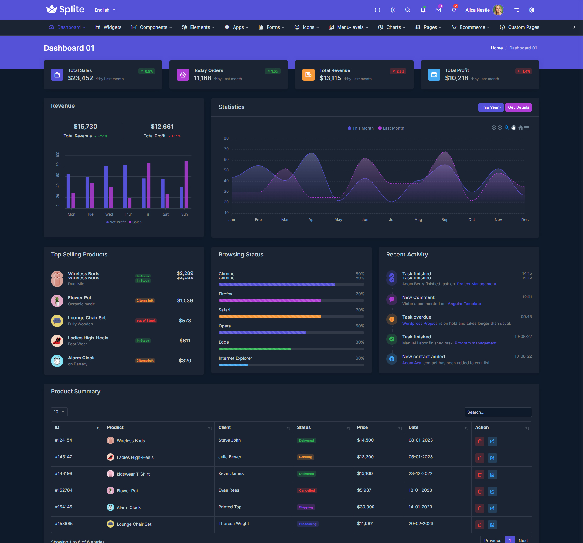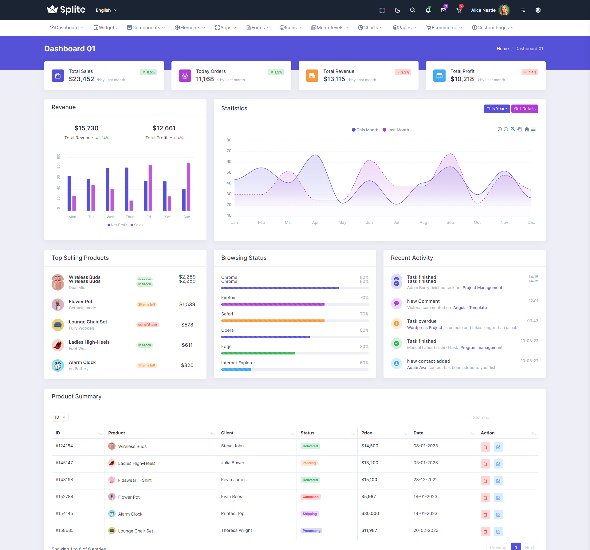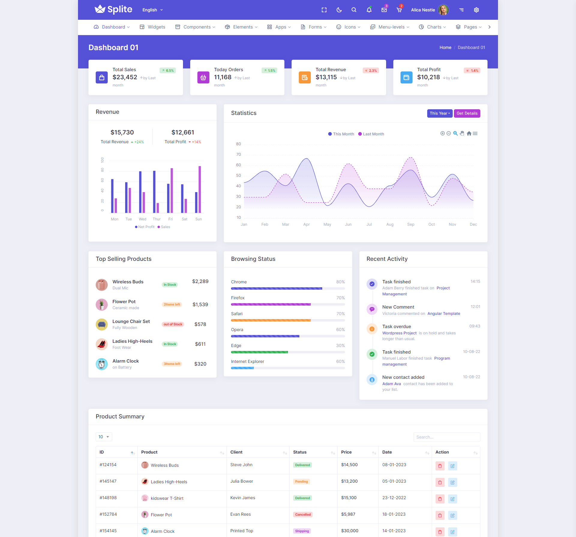 Take a look at the numerous versions we've integrated into the Splite Bootstrap 5 Premium Admin and Dashboard Template, where you can customize it in countless ways.