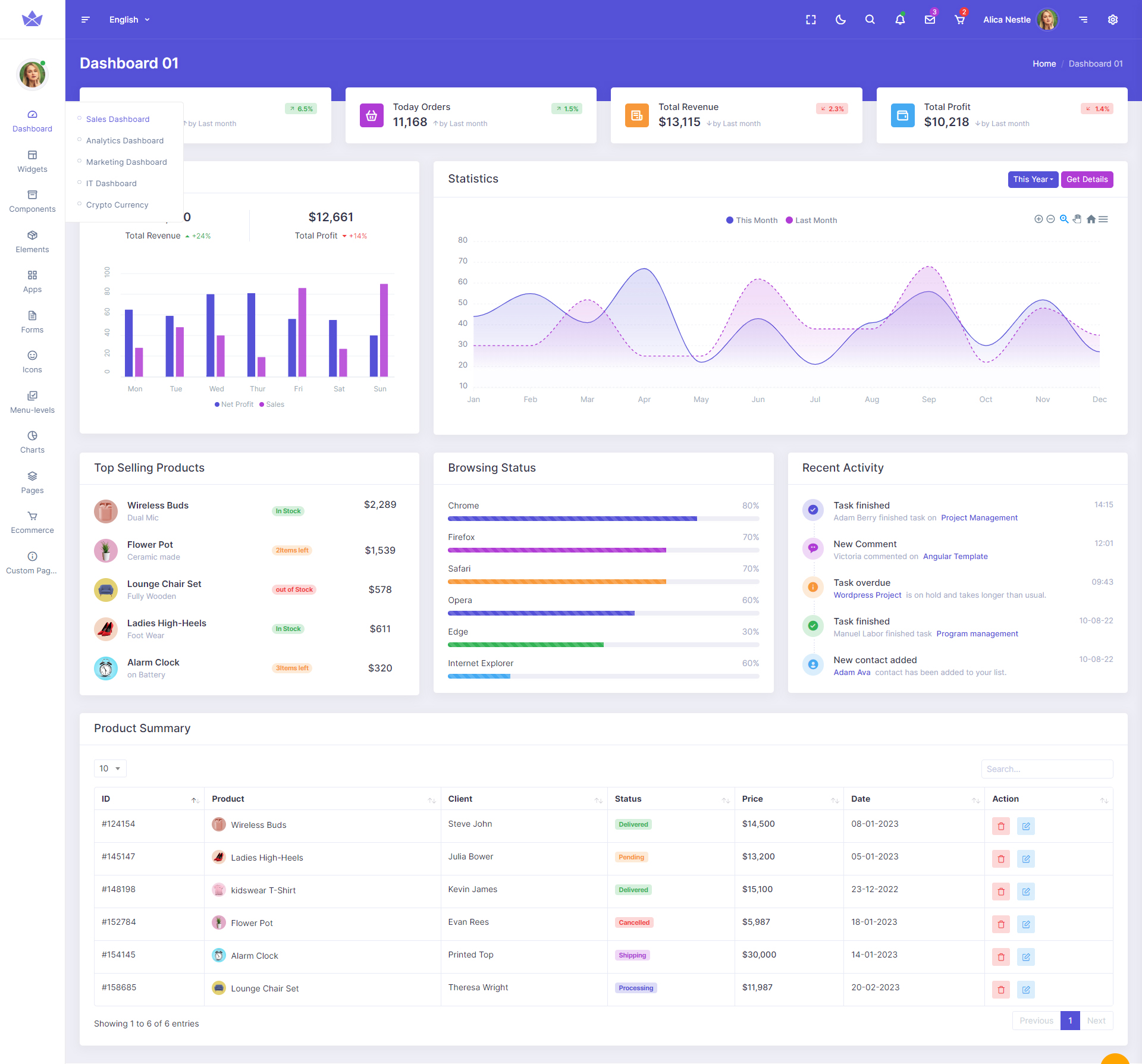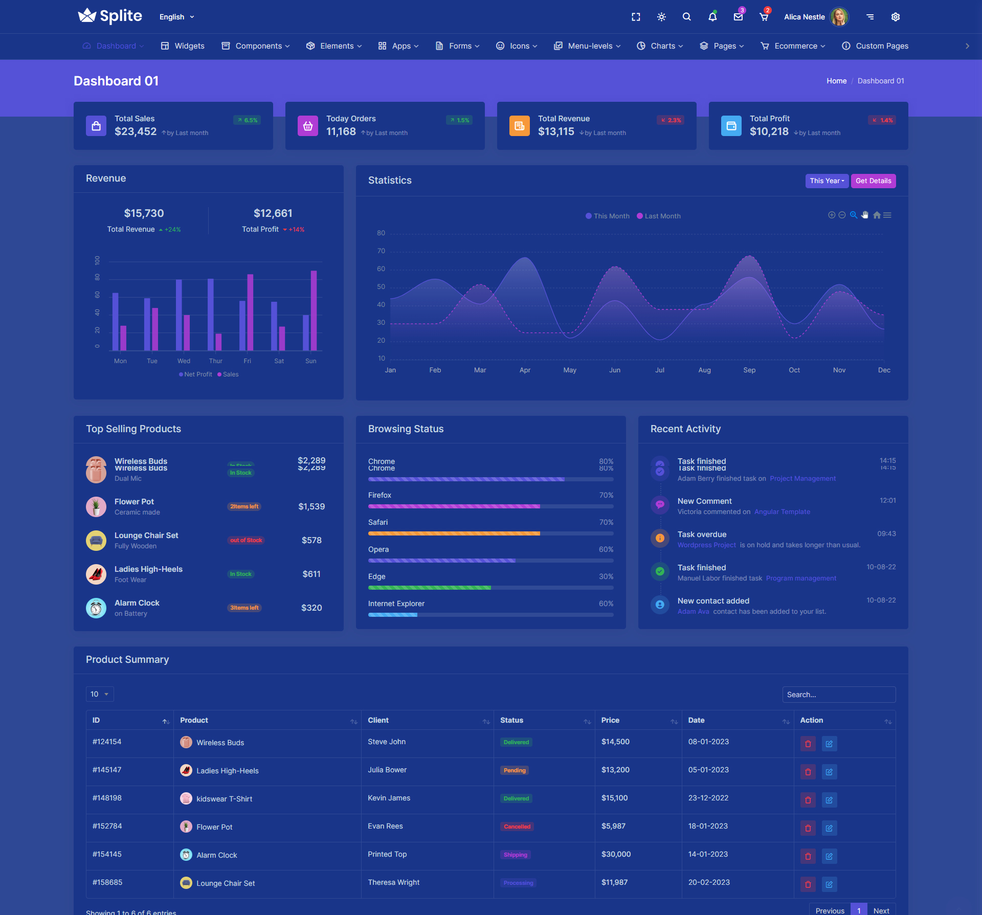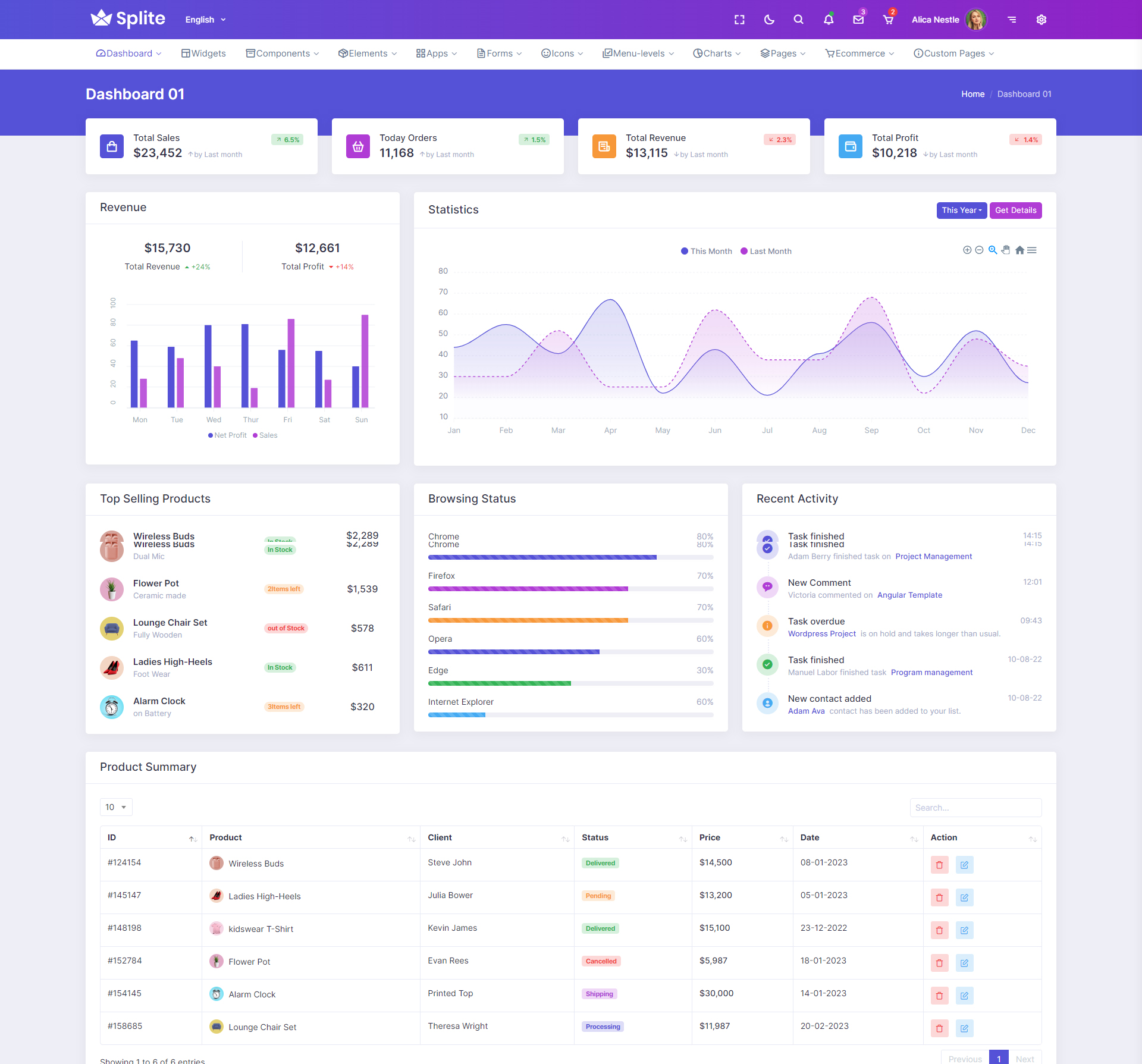 Take a look at the numerous versions we've integrated into the Splite Bootstrap 5 Premium Admin and Dashboard Template, where you can customize it in countless ways.