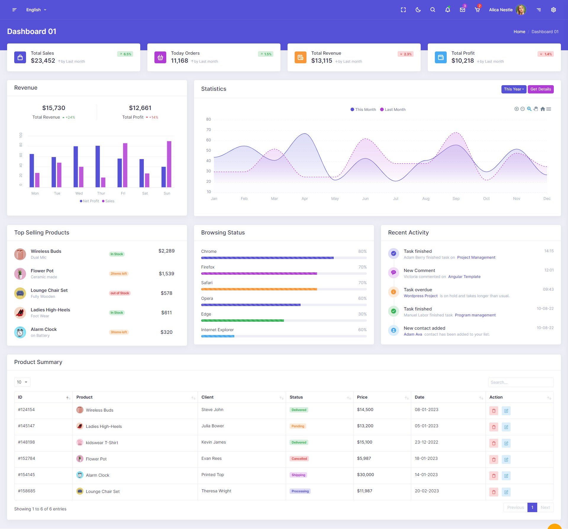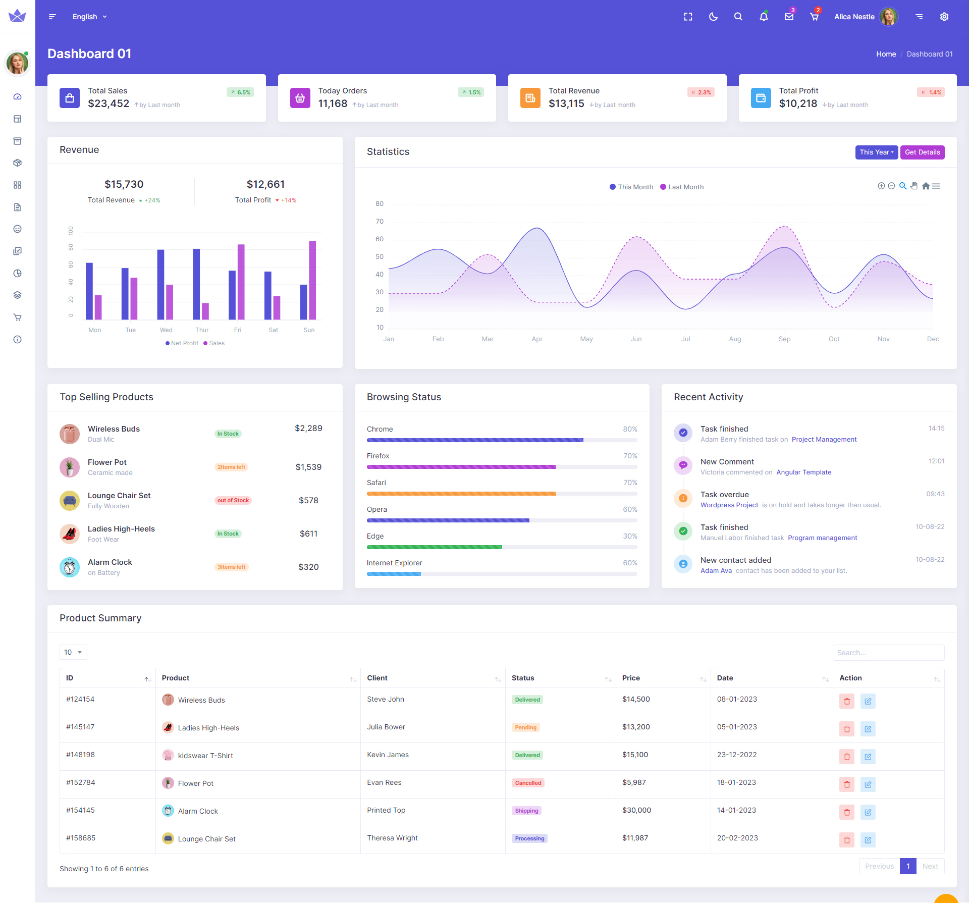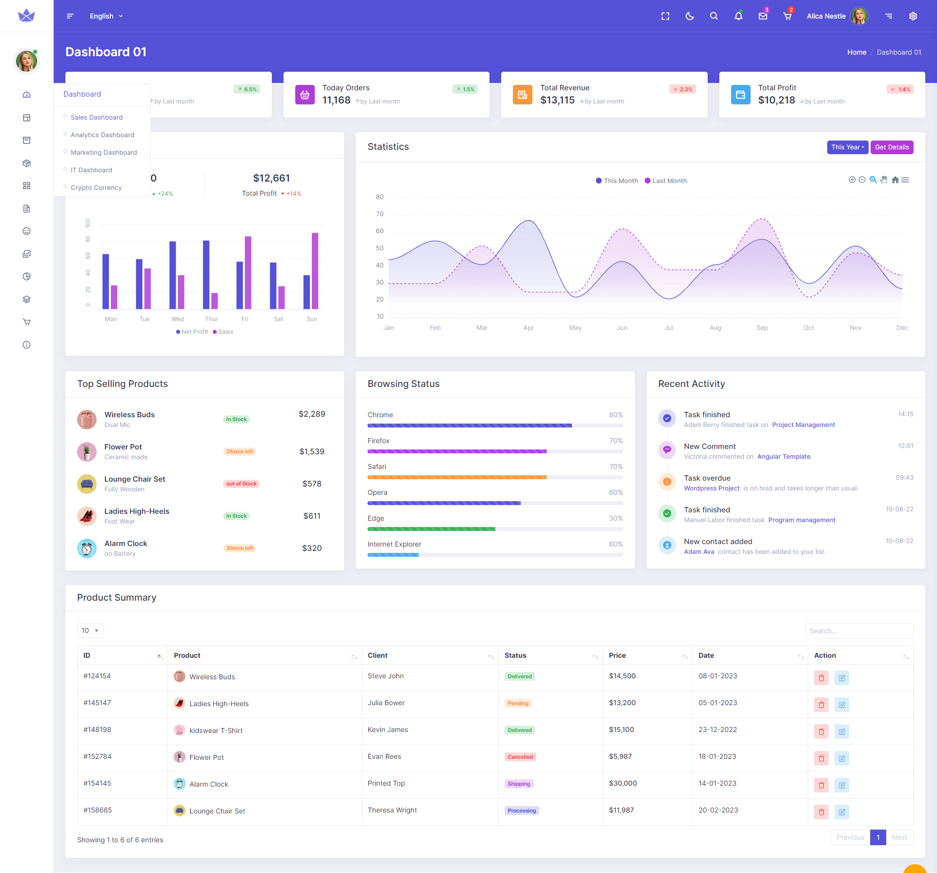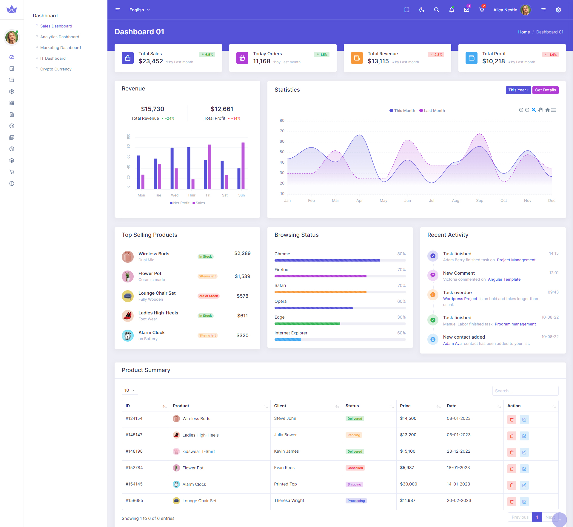 Take a look at the numerous versions we've integrated into the Splite Bootstrap 5 Premium Admin and Dashboard Template, where you can customize it in countless ways.