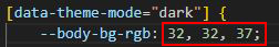 Also Change the following variable colors to the desired theme background accordingly in [data-theme-mode="dark"]