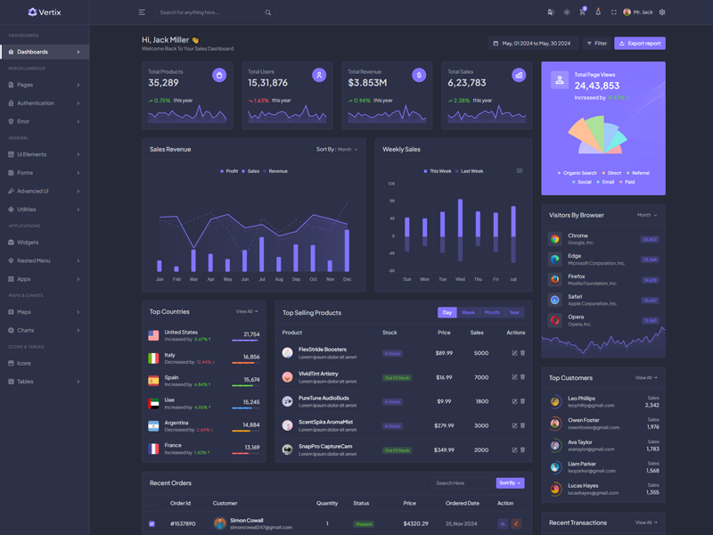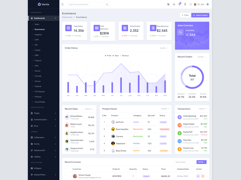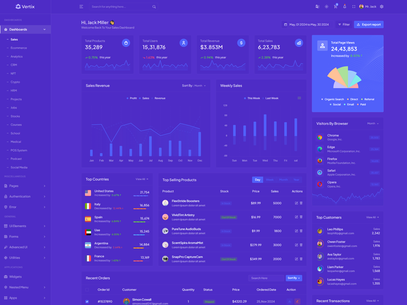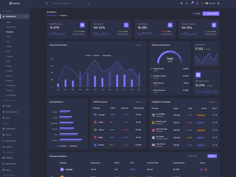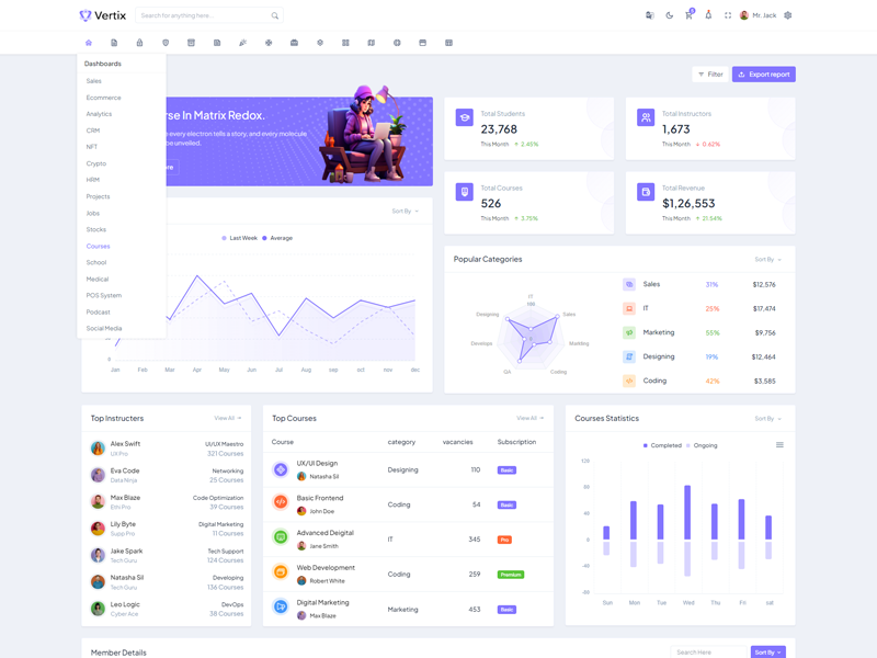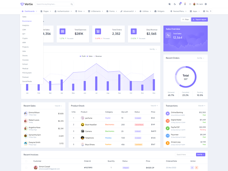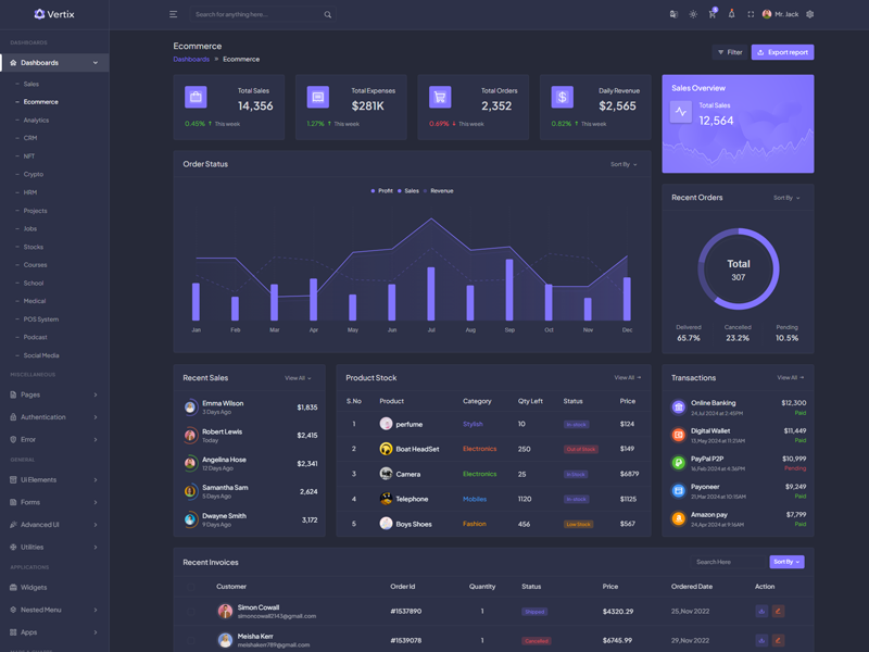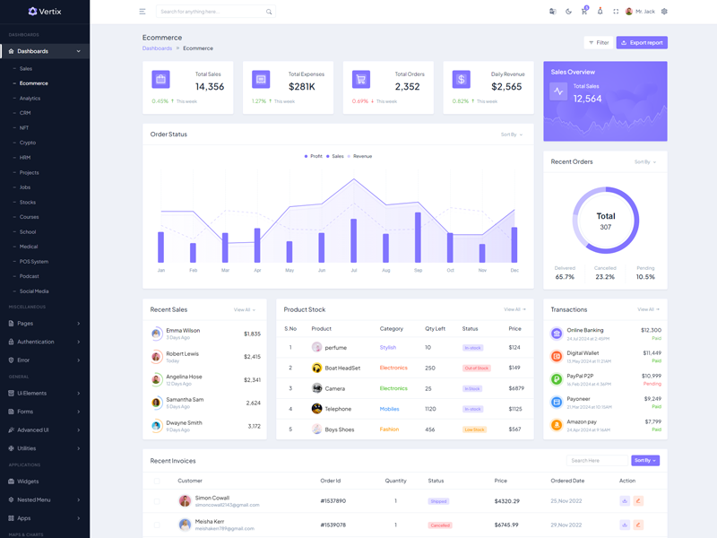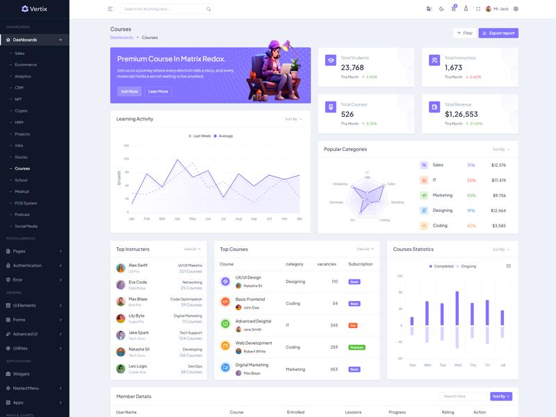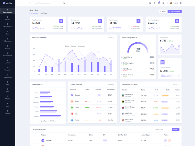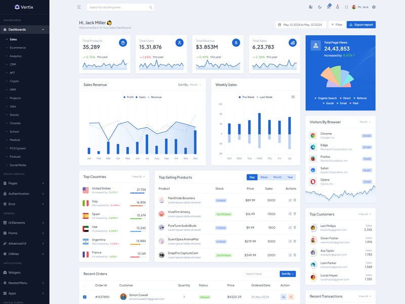 Explore the latest trending features incorporated into the Vertix Admin template, showcasing how we have enhanced and designed our template. When it comes to design, we always keep a close watch on the most trending features.