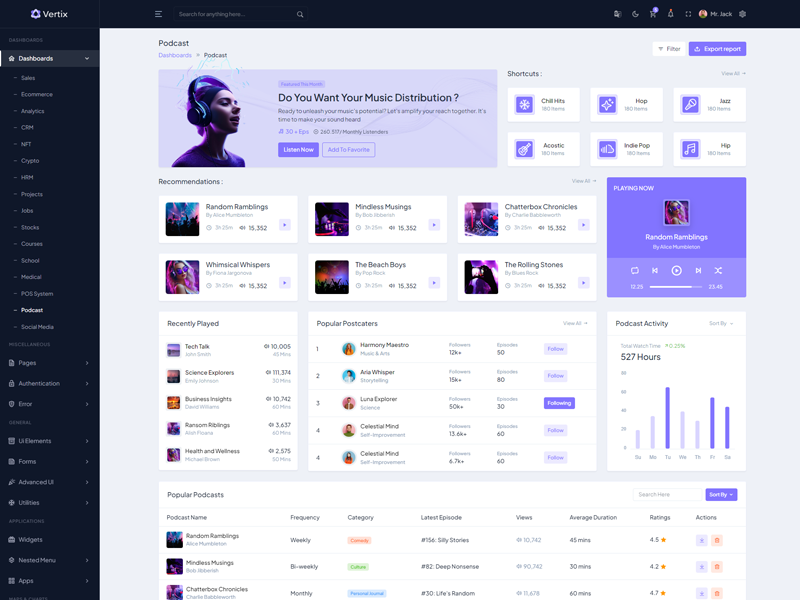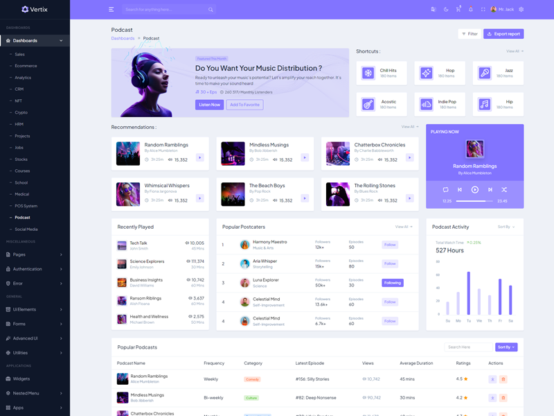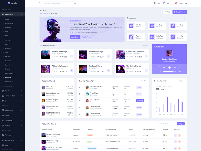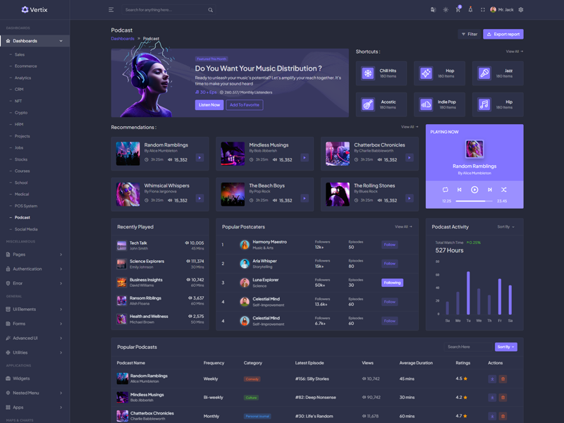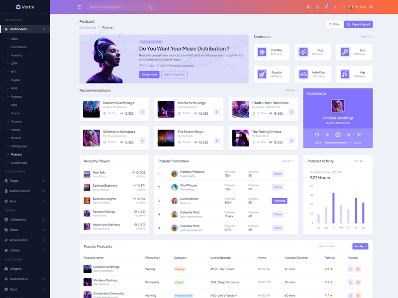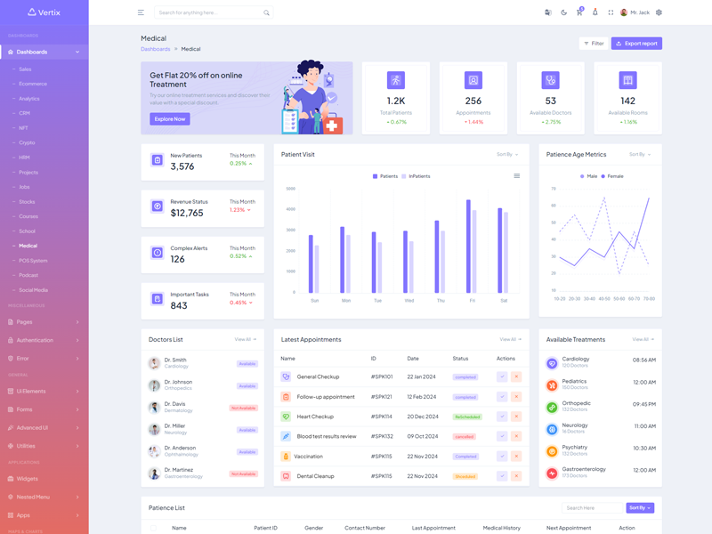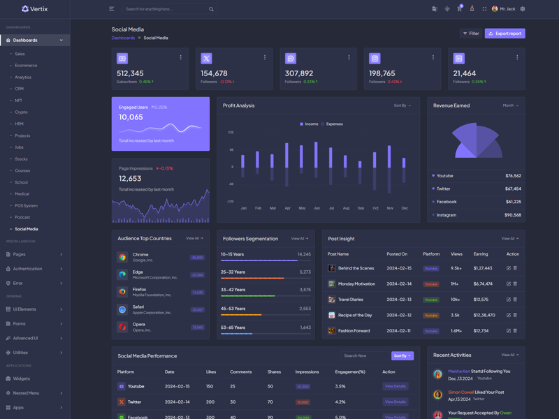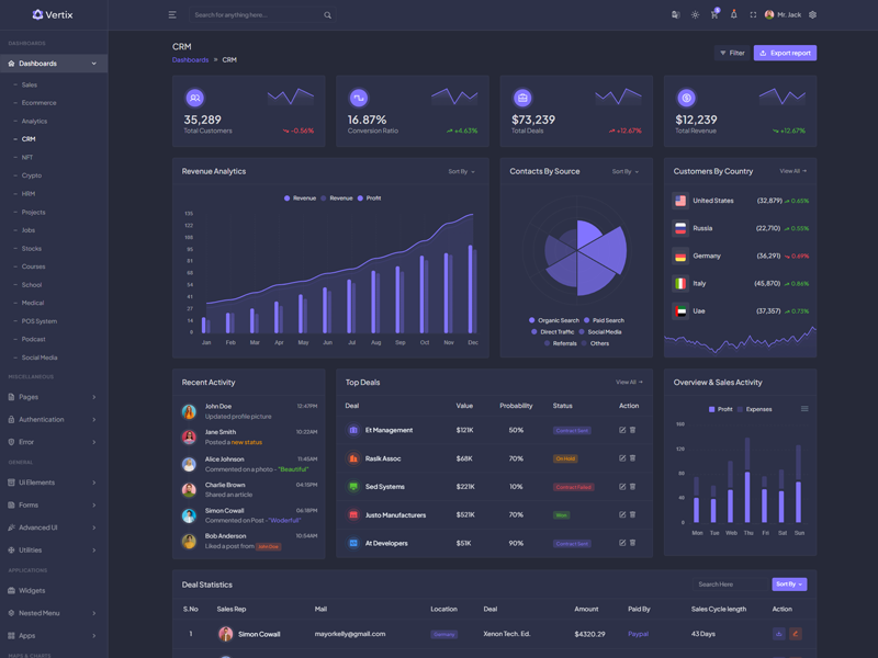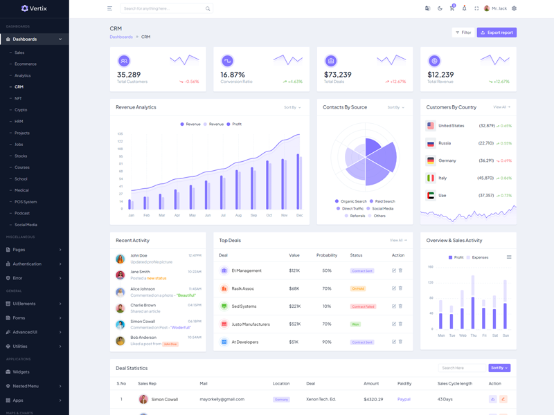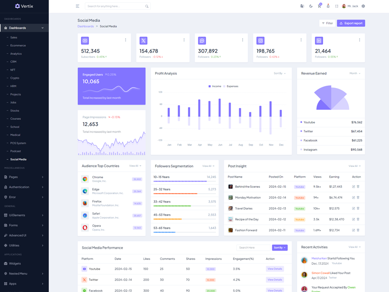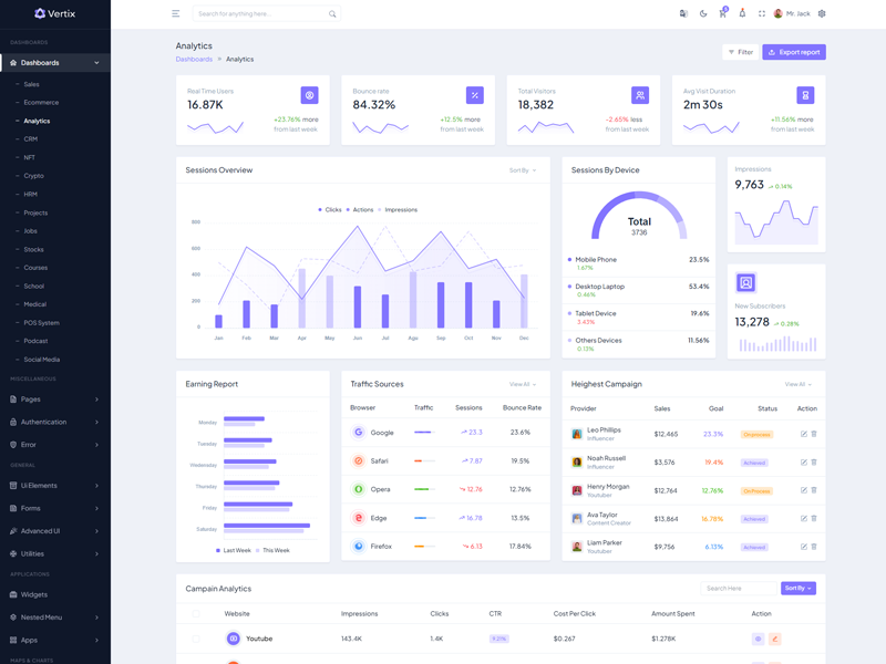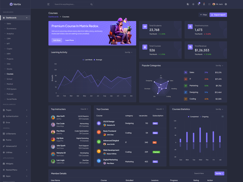 Explore the latest trending features incorporated into the Vertix Admin template, showcasing how we have enhanced and designed our template. When it comes to design, we always keep a close watch on the most trending features.