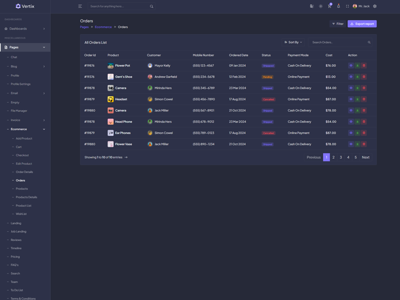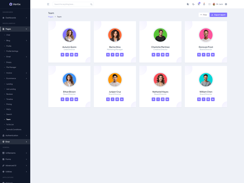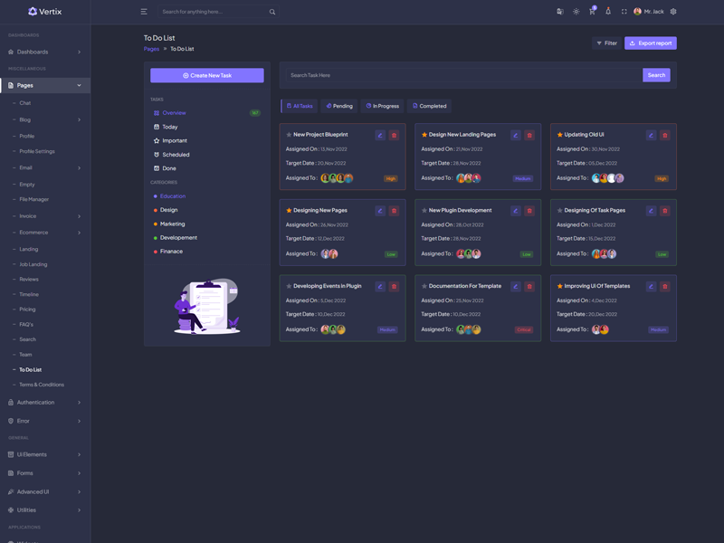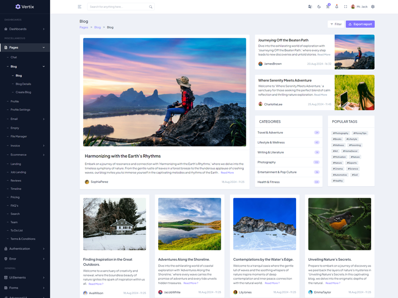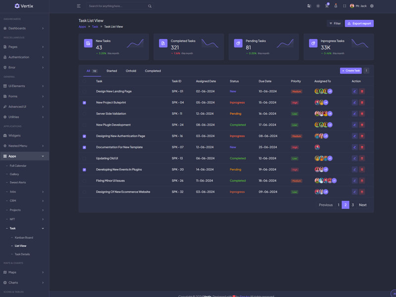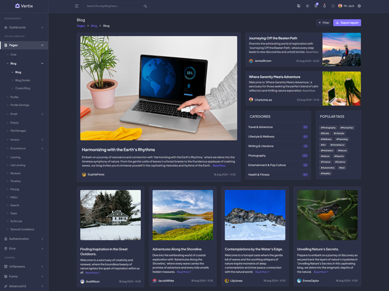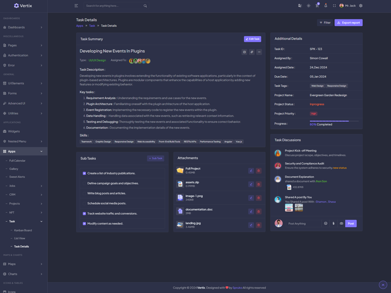 Vertix - Premium Bootstrap 5 HTML 5 Admin & Dashboard Template boasts essential features such as design quality, compatibility with your front-end framework, responsiveness, ease of customization, comprehensive documentation, and dedicated support. Additionally, it includes integrated plugins and other supplementary features.