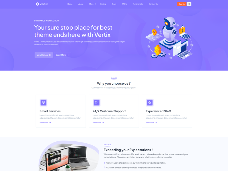 Vertix admin template comes with ready to use features. It has lots of ready-made features saves more time for developers.