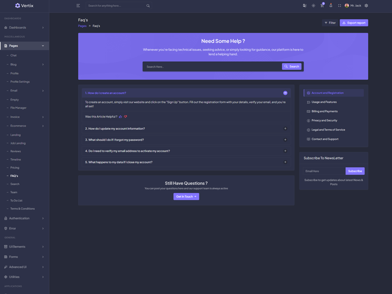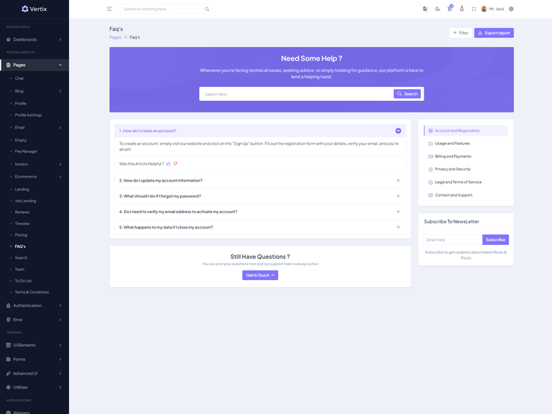 Enjoy lifetime updates for free with your purchase of the Vertix Admin Dashboard template. For any questions our support team is always available to assist you.
