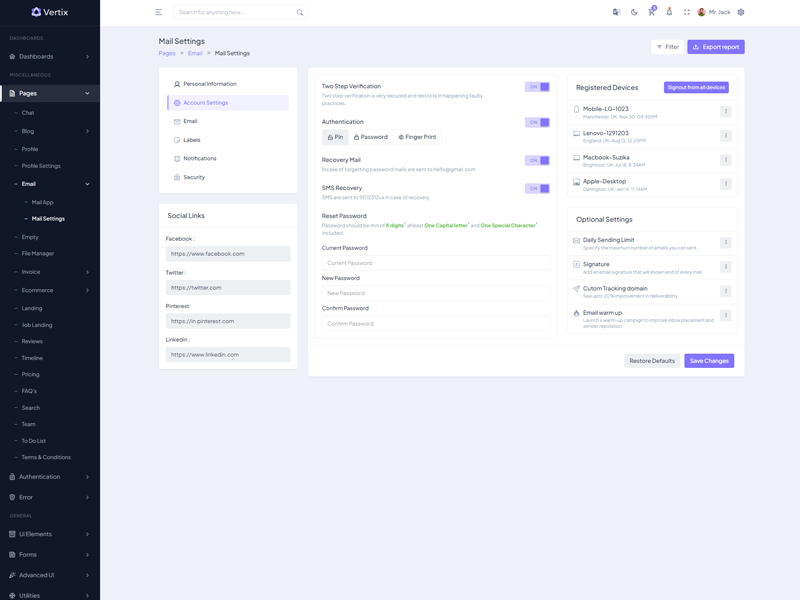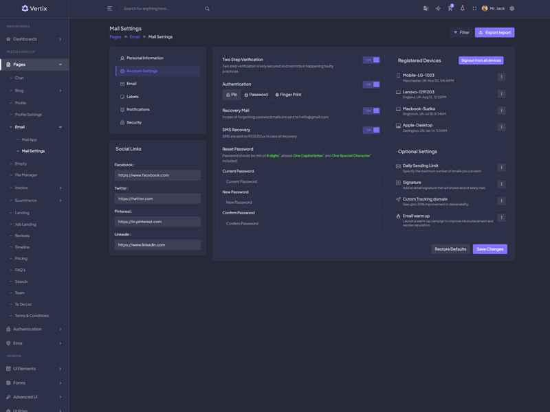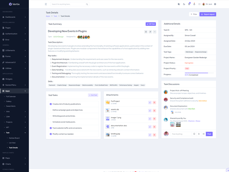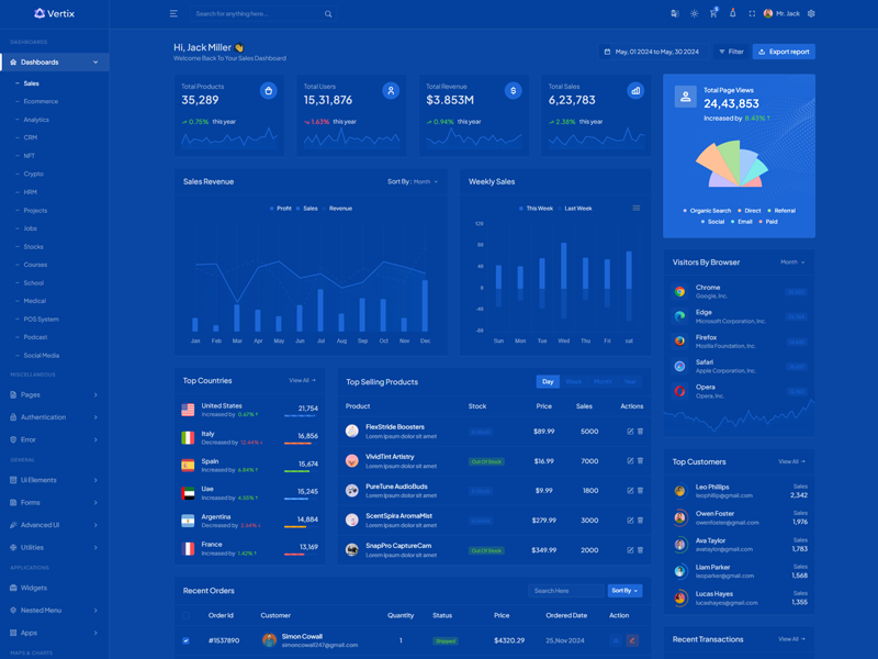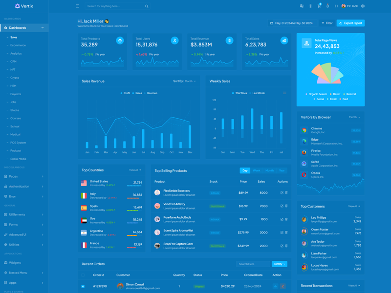 Vertix Admin Template Main Features