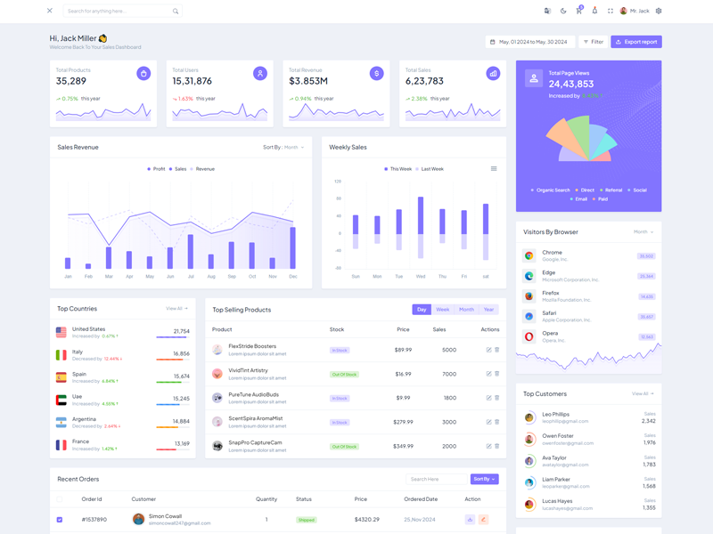 Our admin template ensures seamless usability across desktops, laptops, tablets, and mobiles, supporting a variety of browsers including Chrome, Edge, and more.