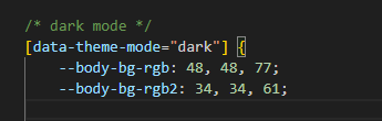 Also Change the following variable colors to the desired theme background accordingly in [data-theme-mode="dark"]