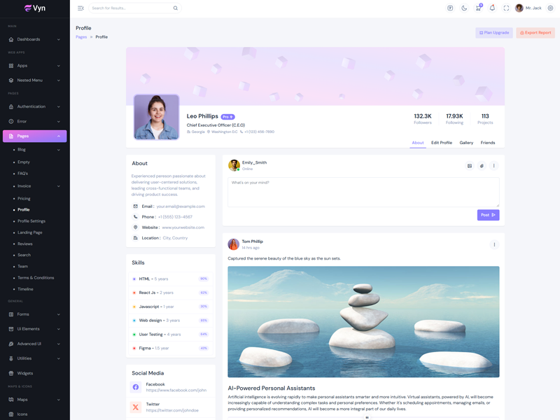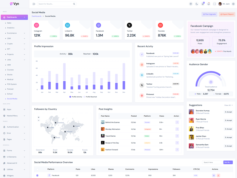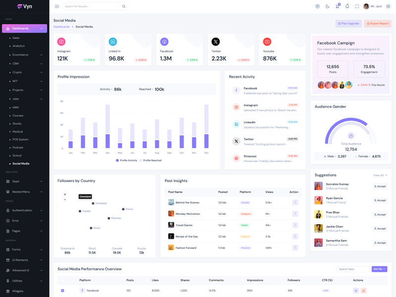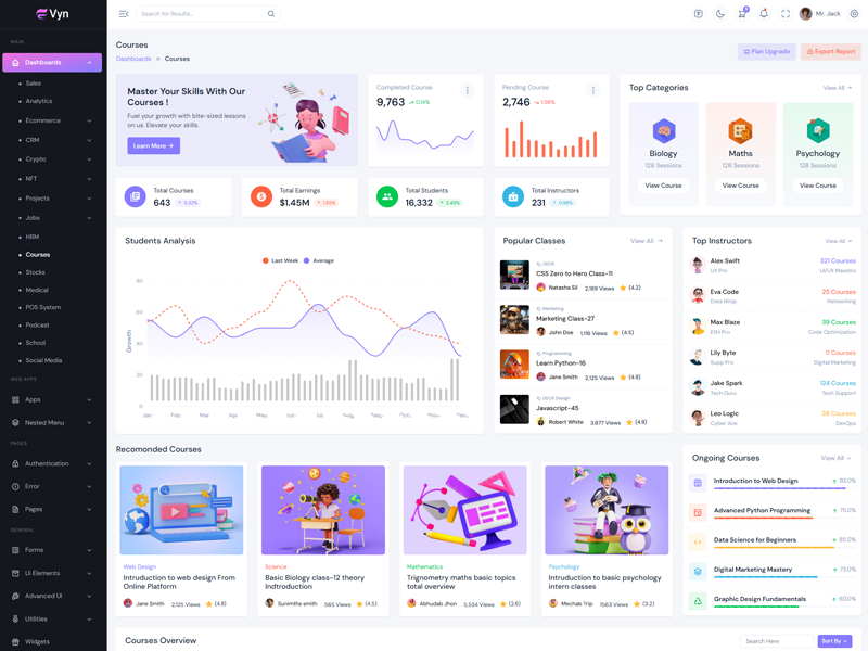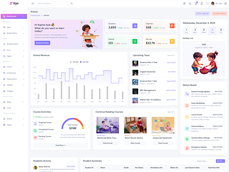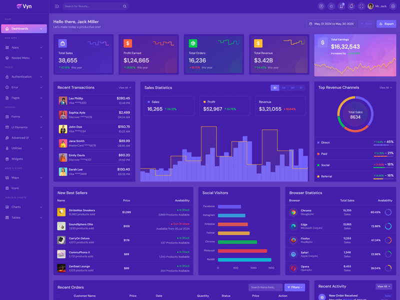 Vyn – Innovative Boostrap Admin Dashboard Template offers top-tier design, seamless framework compatibility, full responsiveness, and easy customization. With beginner-friendly docs, dedicated support, and integrated plugins, Vyn provides a powerful foundation for modern applications.