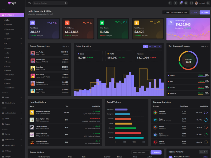 Here’s a quick overview of the Vyn Bootstrap 5 Dashboard Template and its key features.