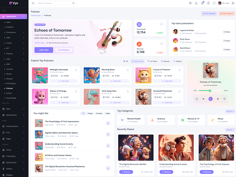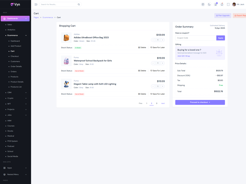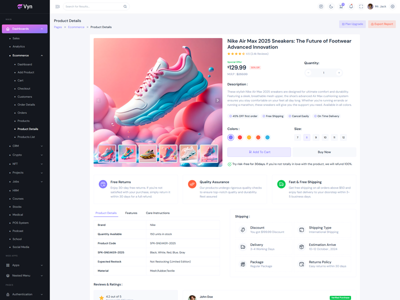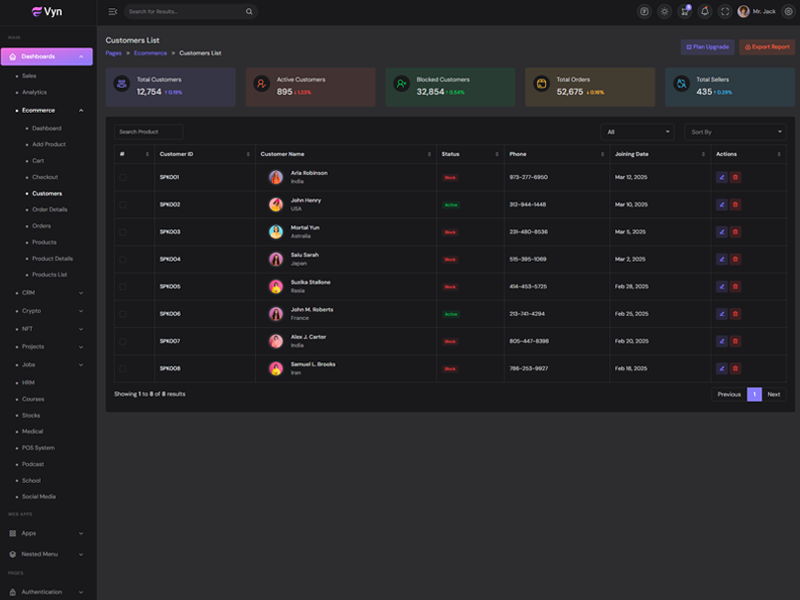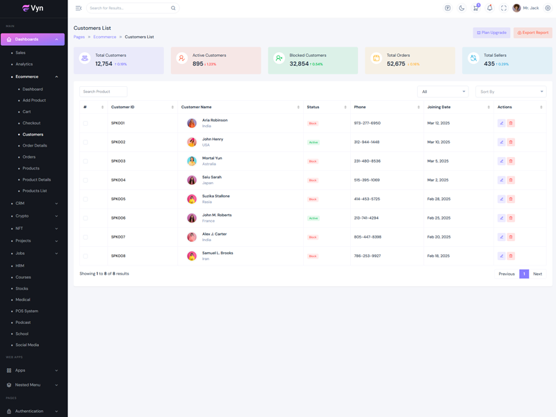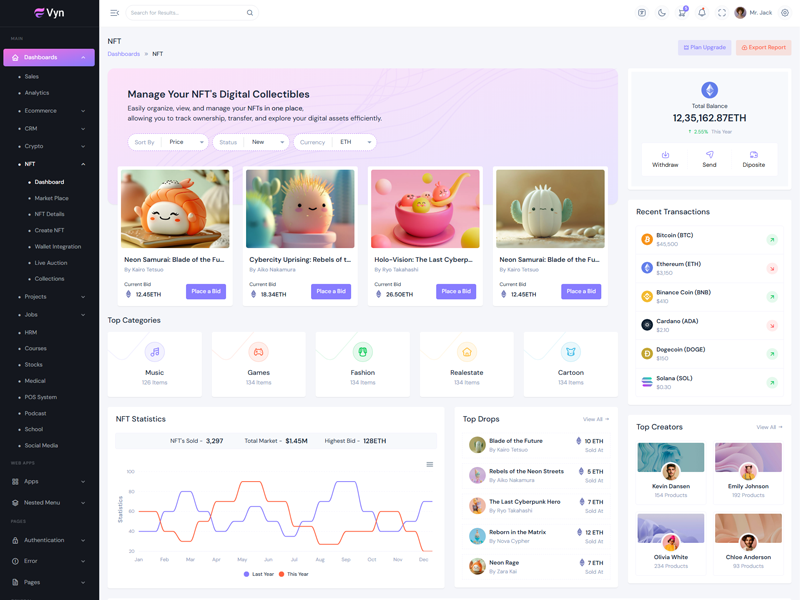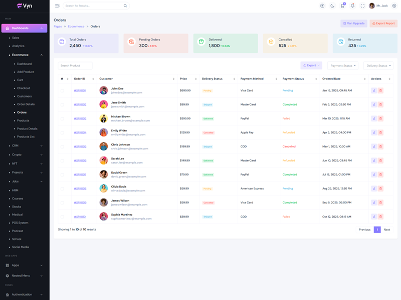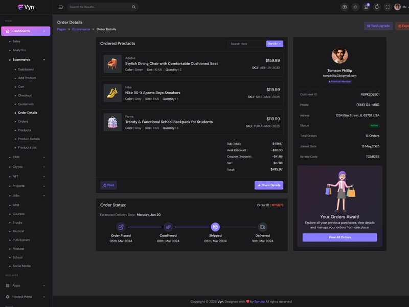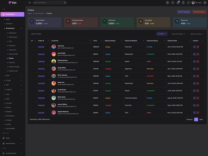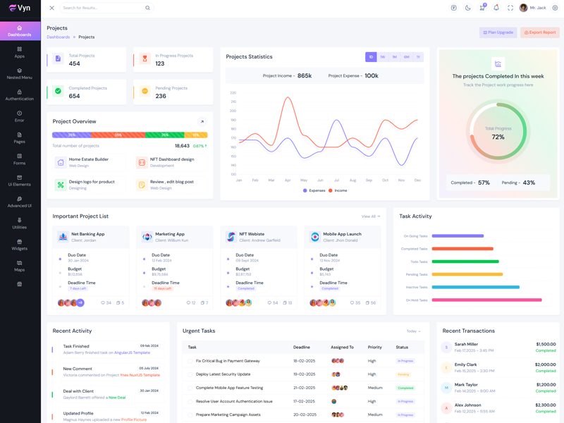 Discover the multiple Features packed into the Vyn Premium Admin & Dashboard Template, each offering flexible customization to suit any project style or requirement. Built for developers of all levels, Vyn makes it easy to create stunning, high-performance dashboards with minimal effort.