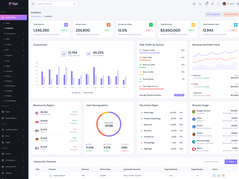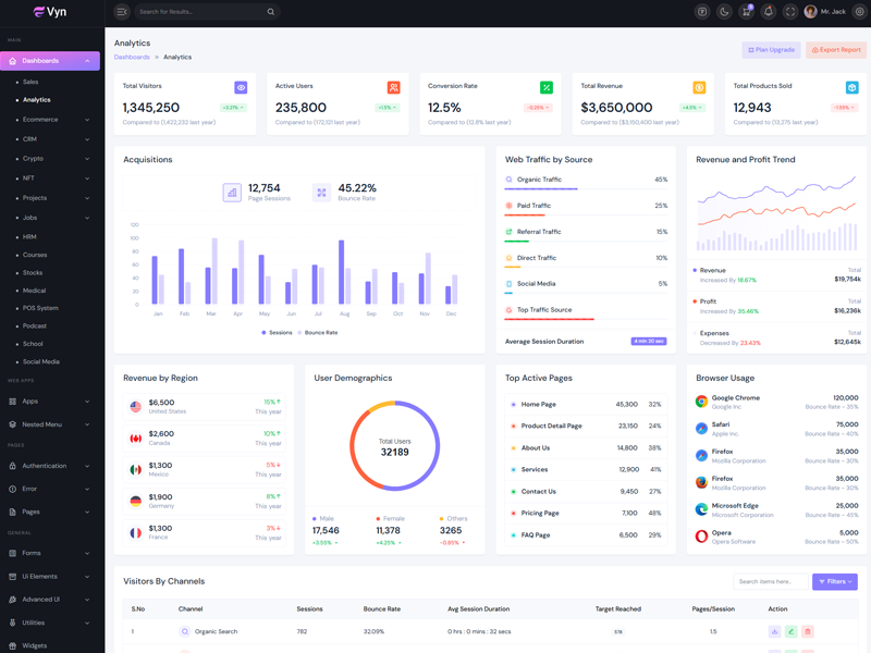 Discover the latest trending features integrated into the vyzor Admin template, highlighting how we’ve enhanced and designed our offering. We consistently monitor the most popular design trends to ensure our template remains cutting-edge.