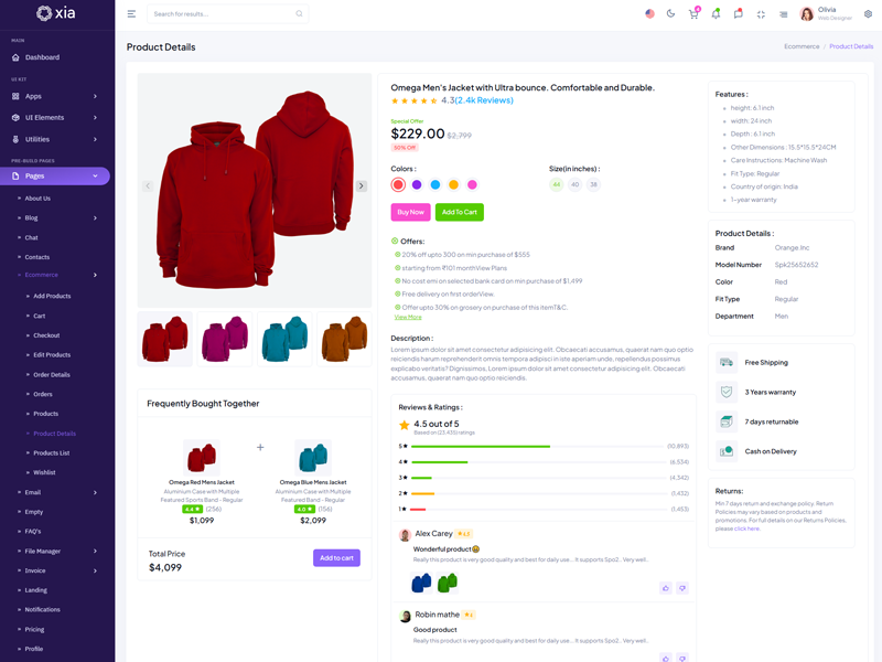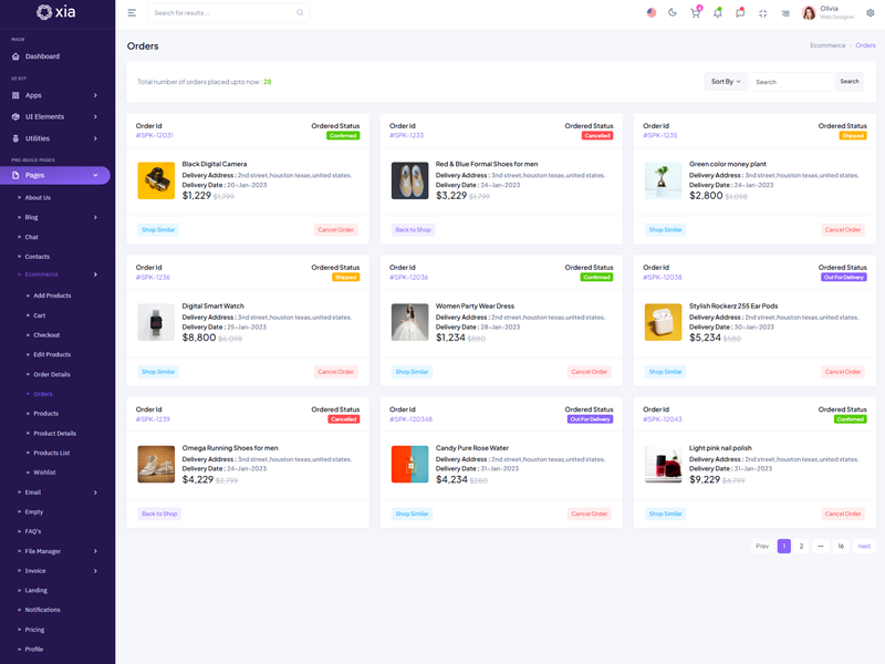 Discover the multiple Features packed into the Xia Premium Admin & Dashboard Template, each offering flexible customization to suit any project style or requirement. Built for developers of all levels, Xia makes it easy to create stunning, high-performance dashboards with minimal effort.