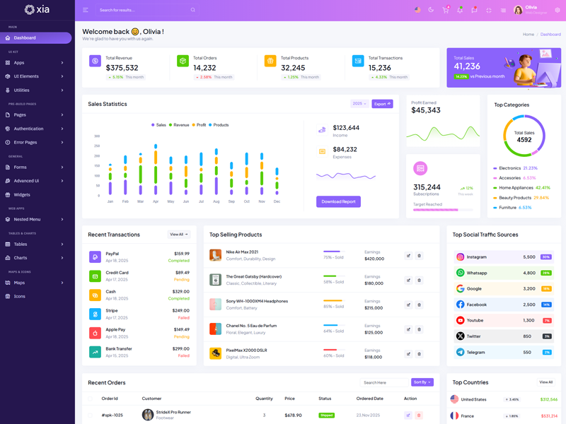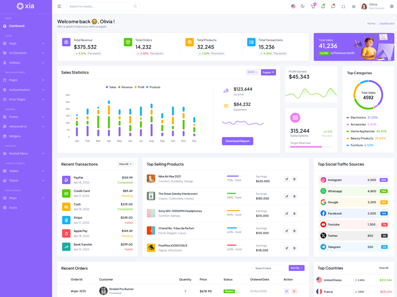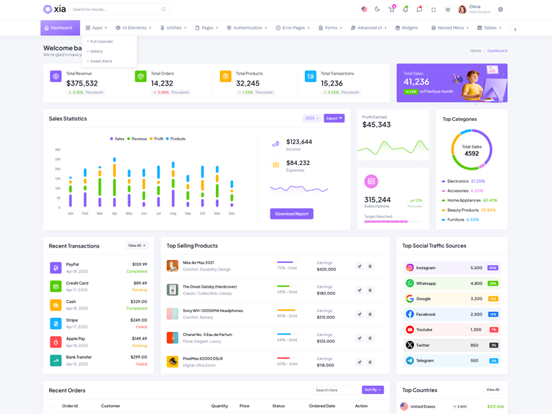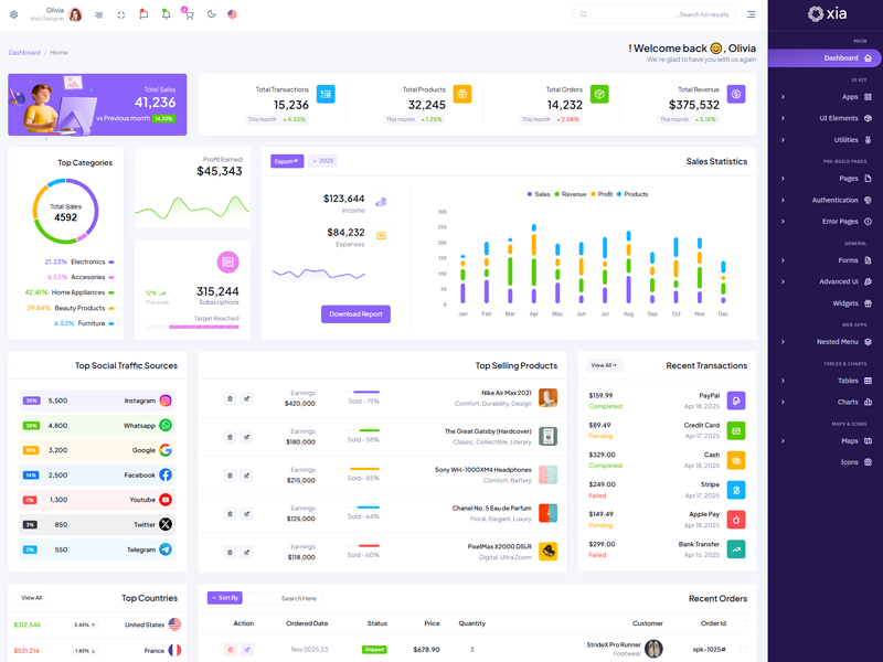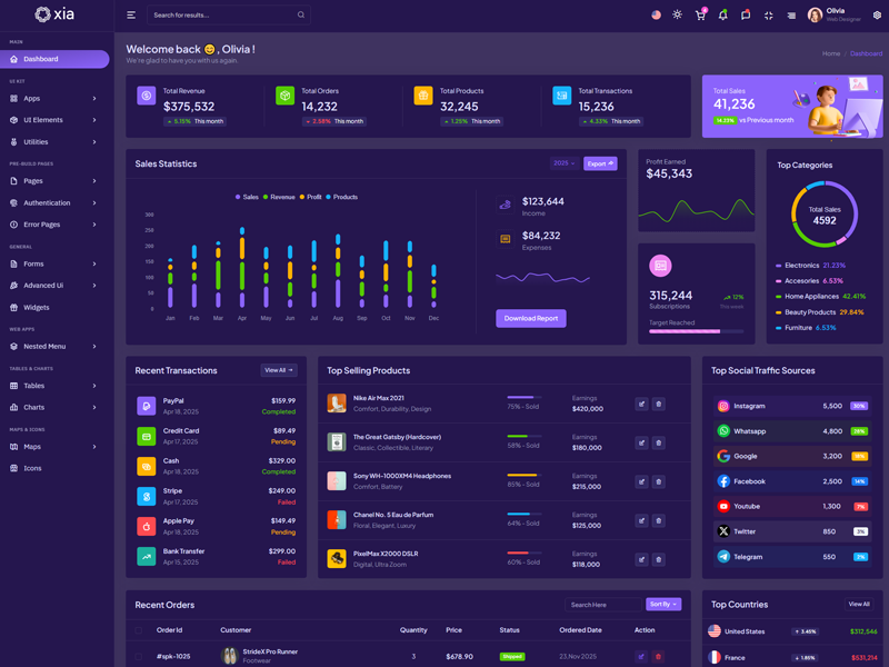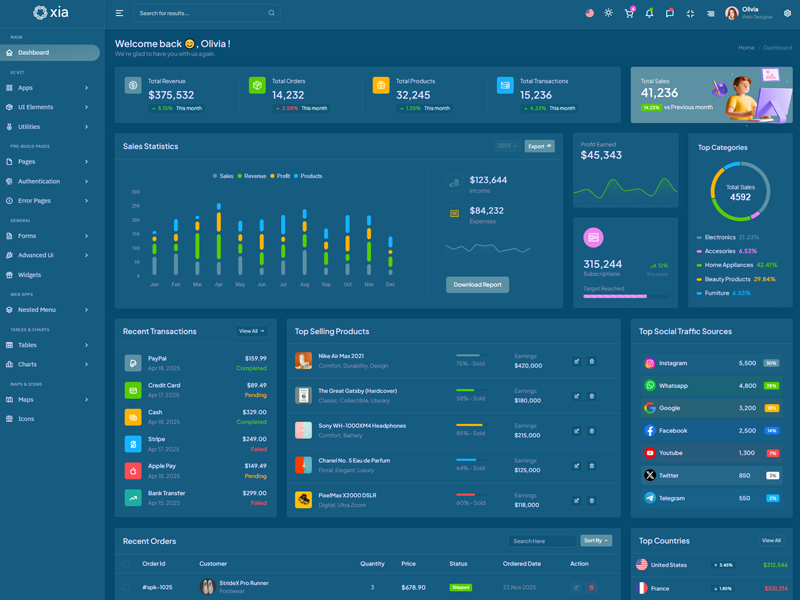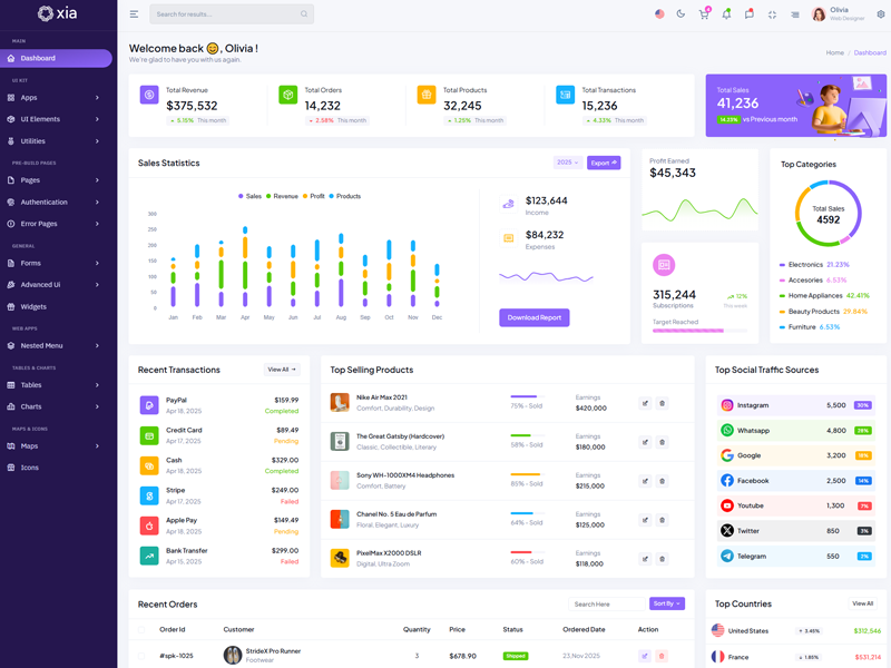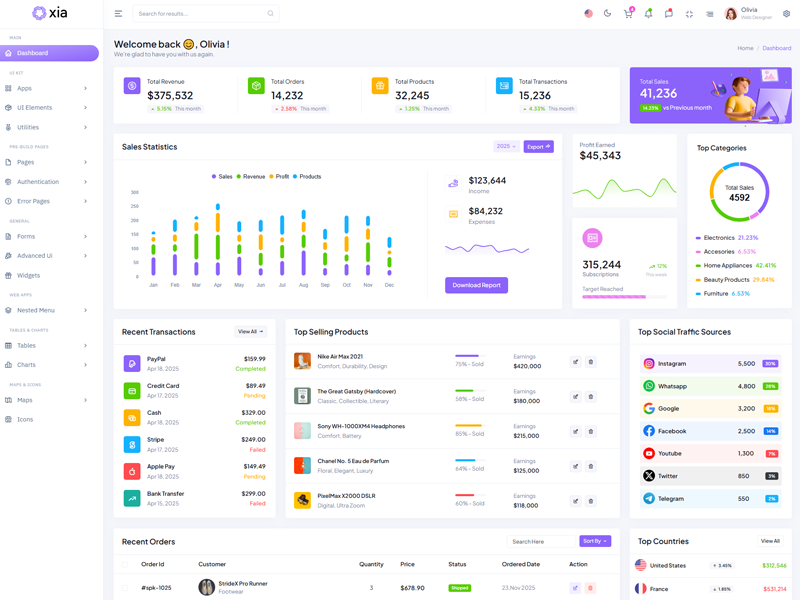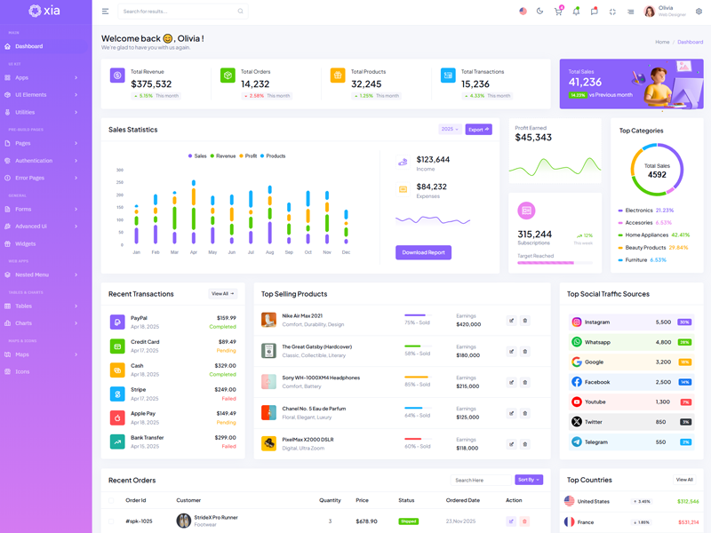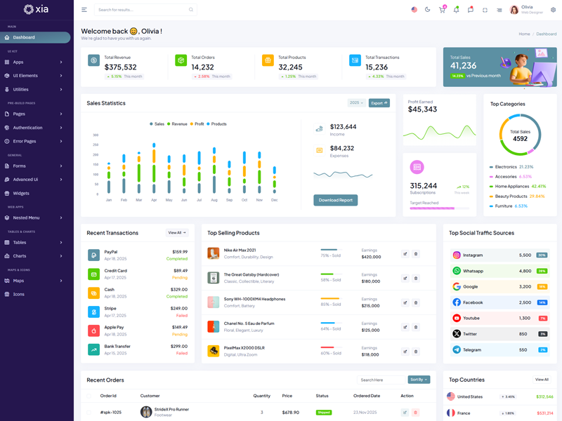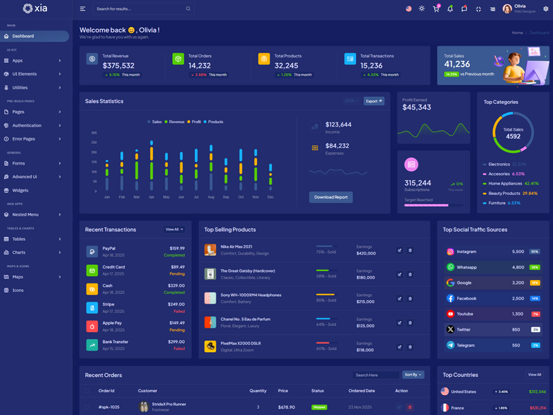 Here’s a quick overview of the Xia Bootstrap 5 Dashboard Template and its key features.