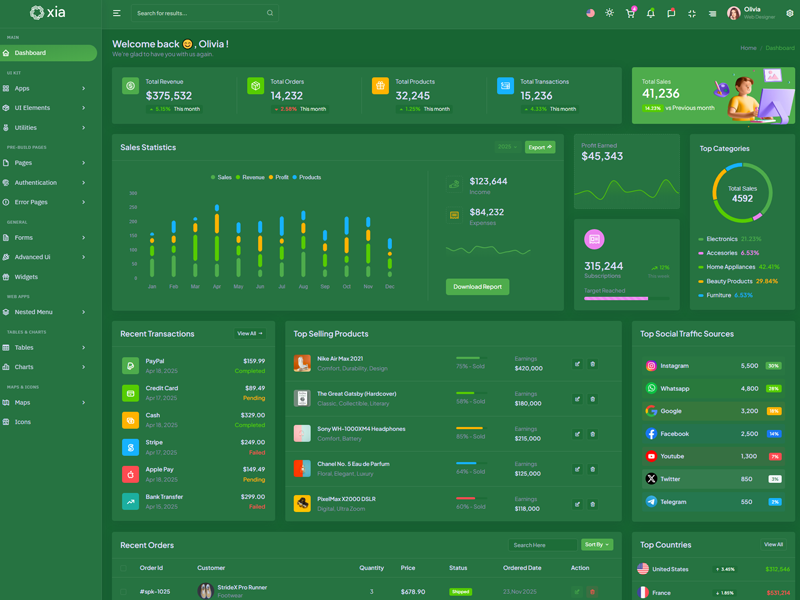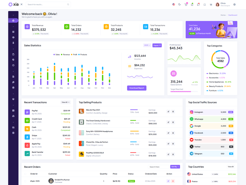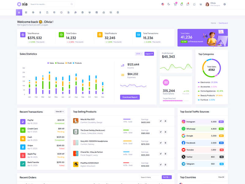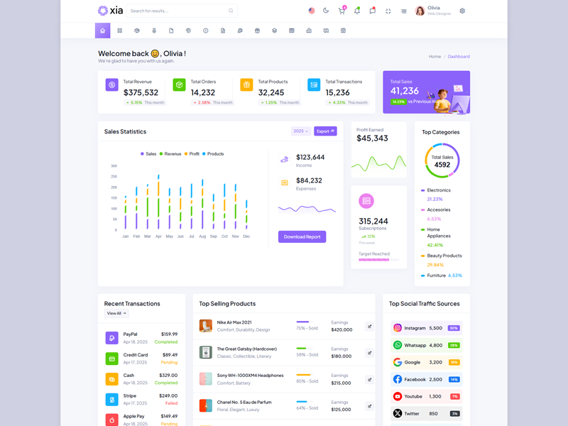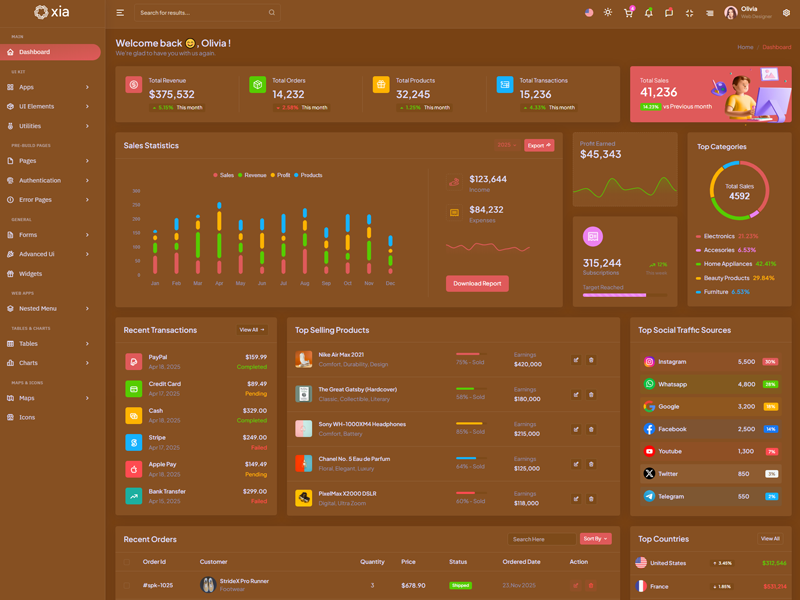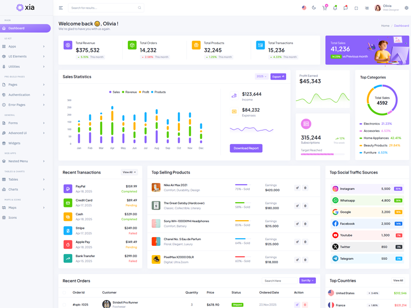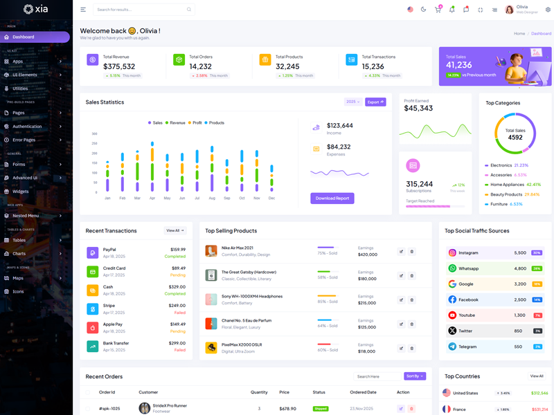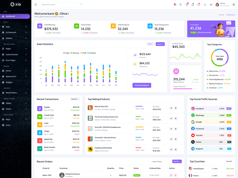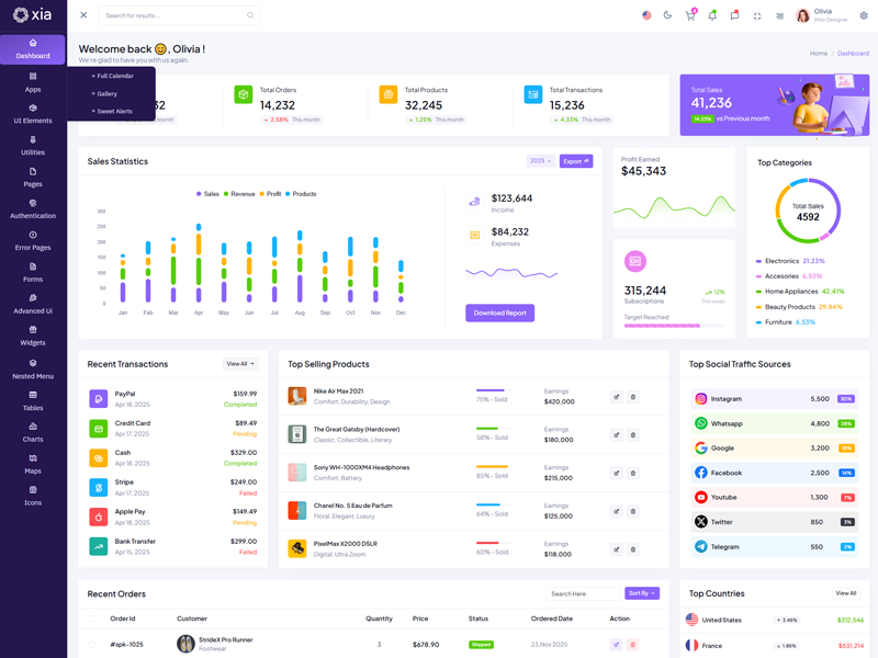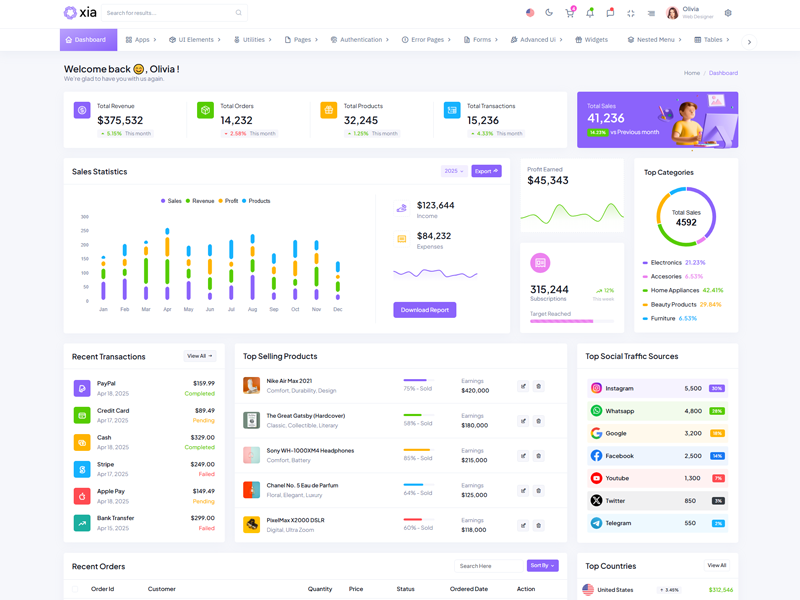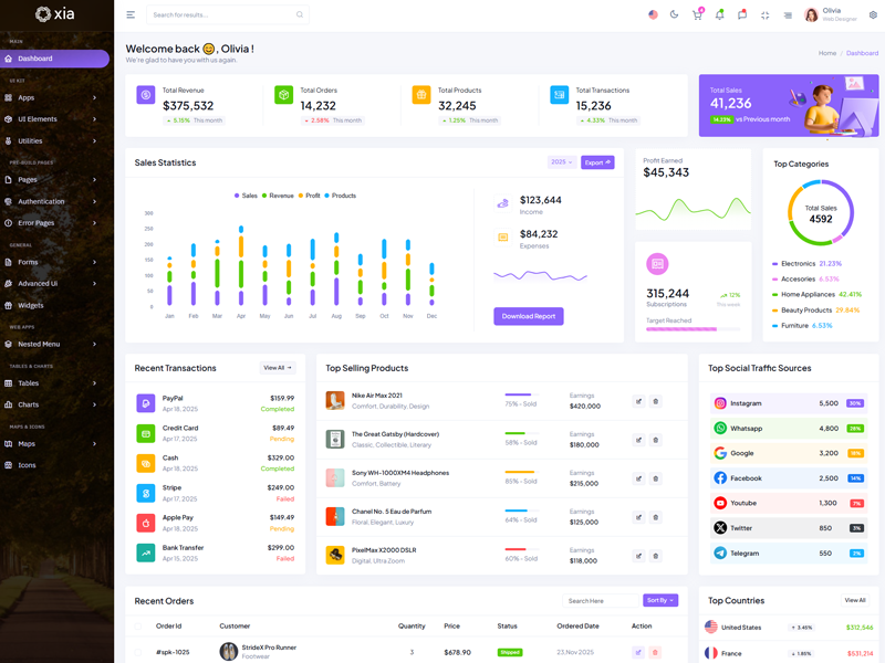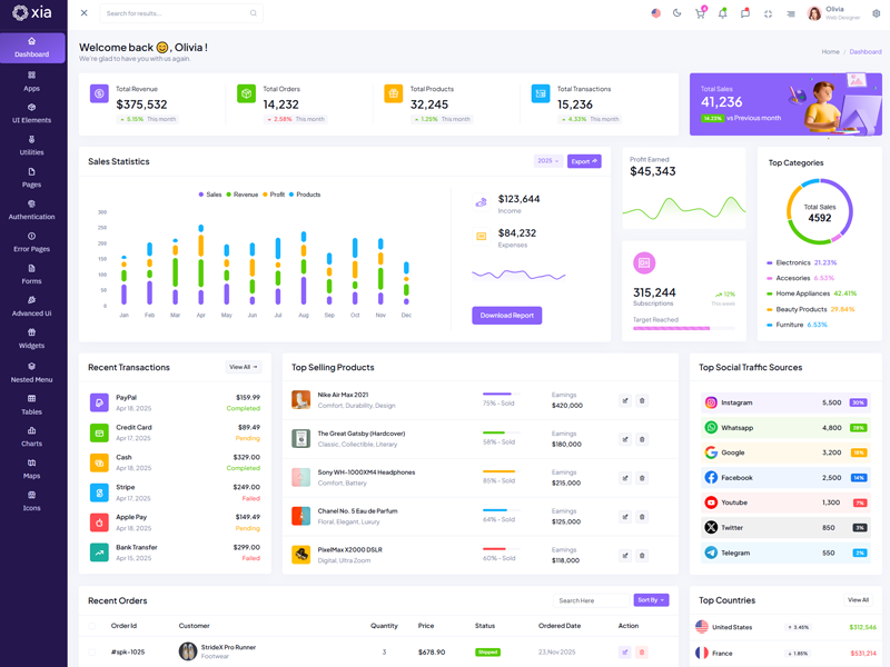 Here’s a quick overview of the Xia Bootstrap 5 Dashboard Template and its key features.
