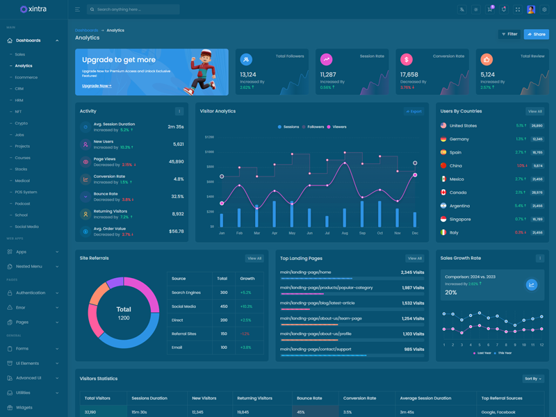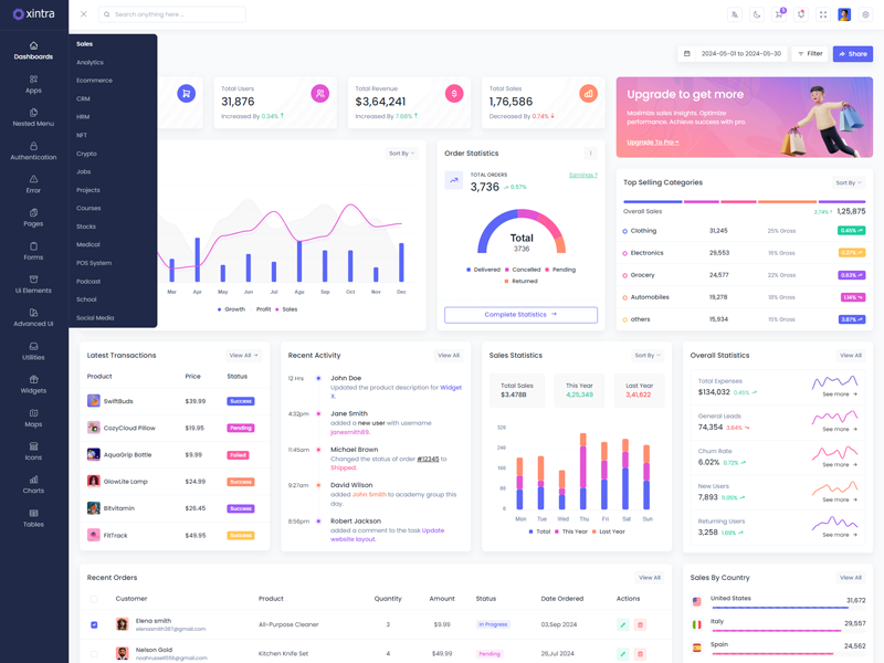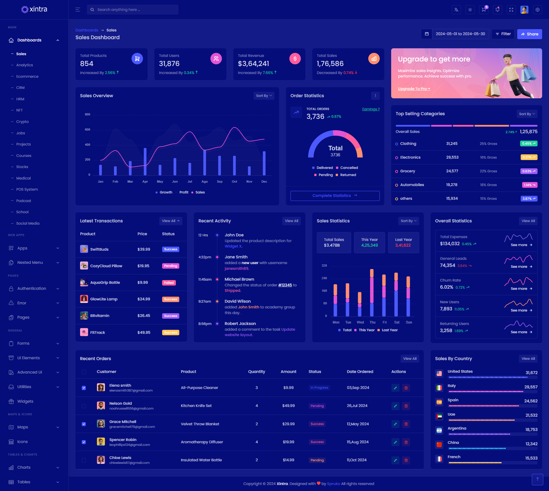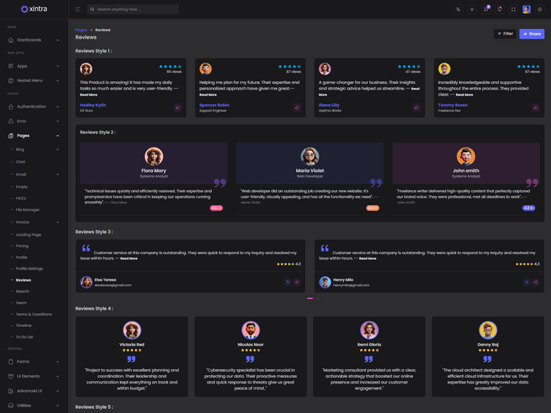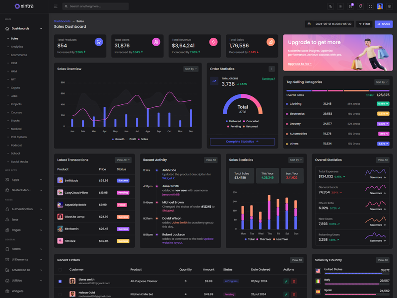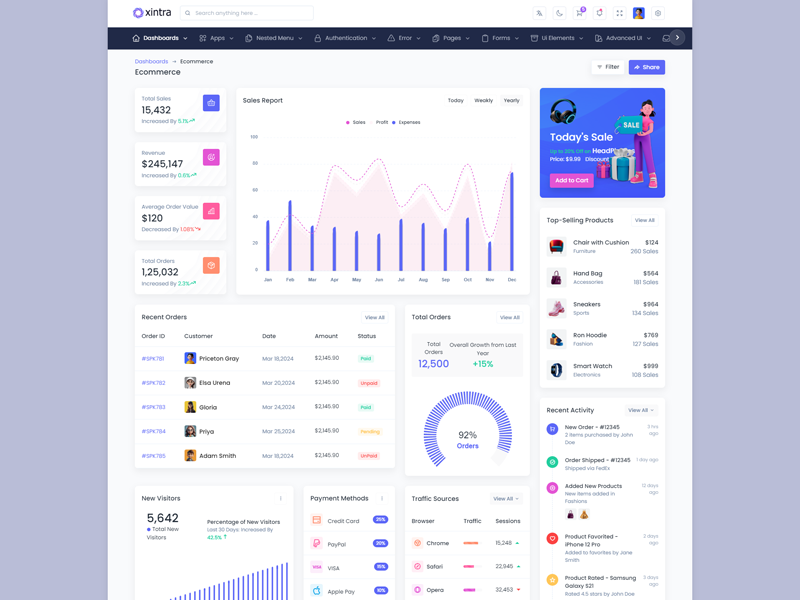 Explore the latest trending features incorporated into the Xintra Admin template, showcasing how we have enhanced and designed our template. When it comes to design, we always keep a close watch on the most trending features.