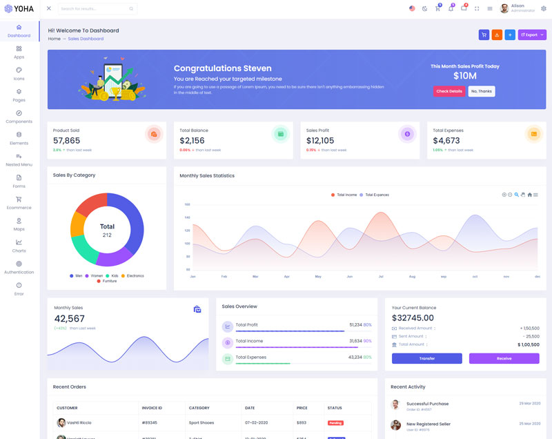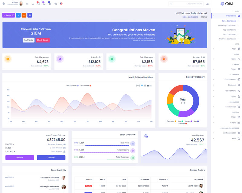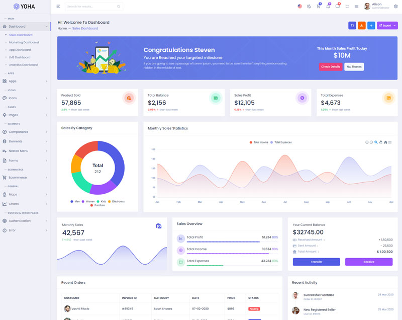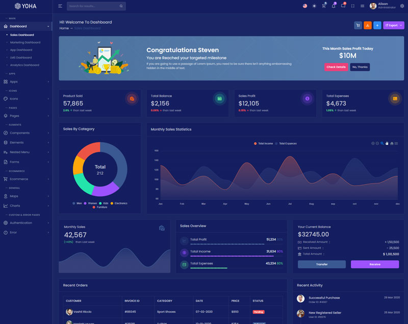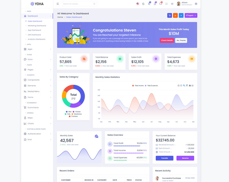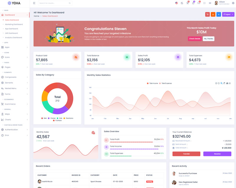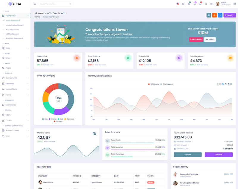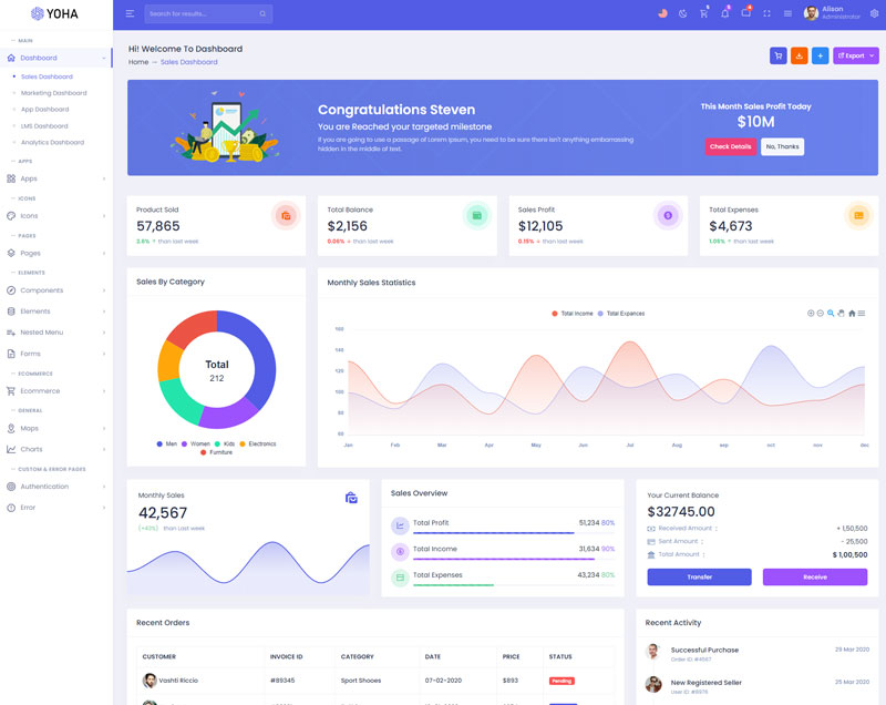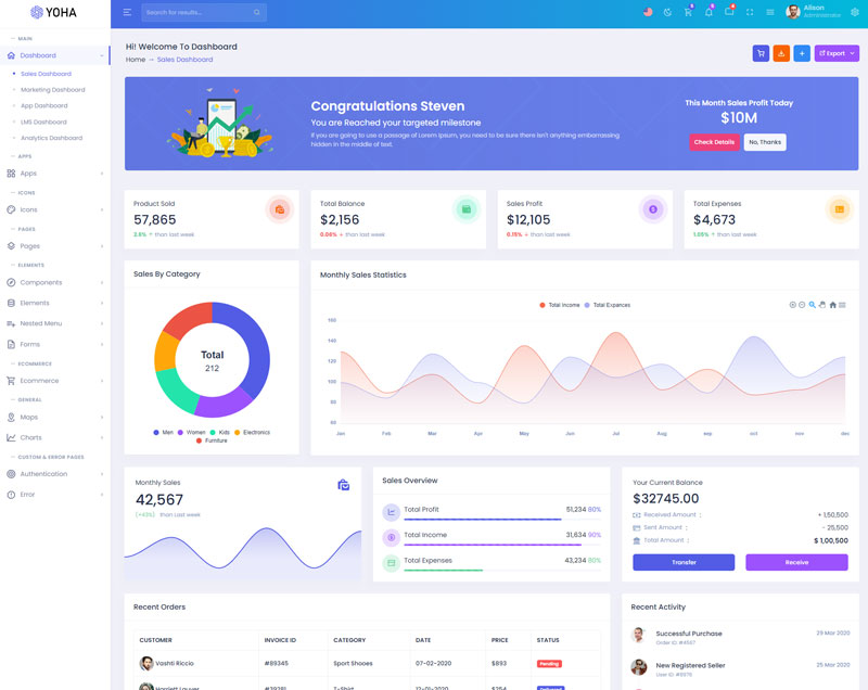 Yoha admin template comes with ready to use features. It has lots of ready-made features saves more time for developers.