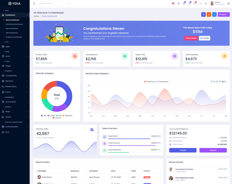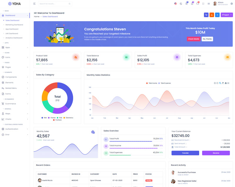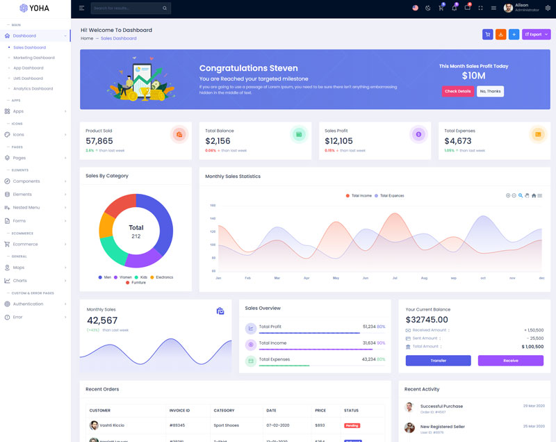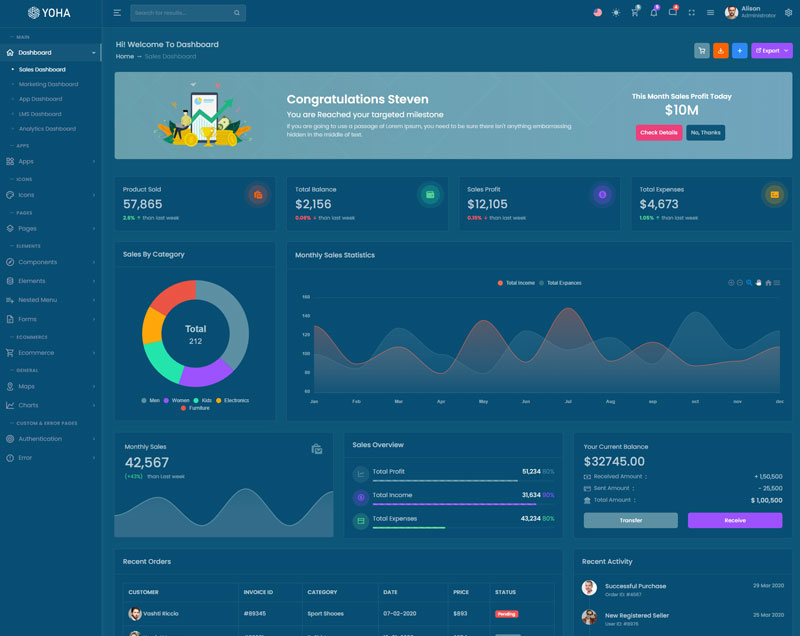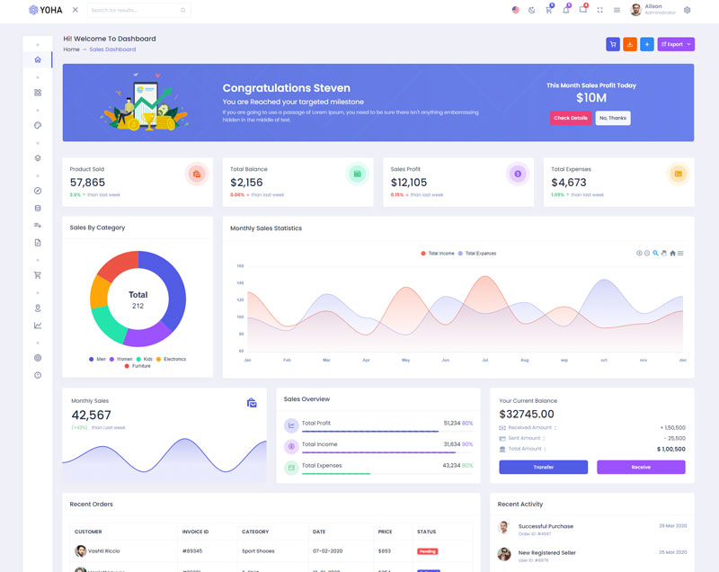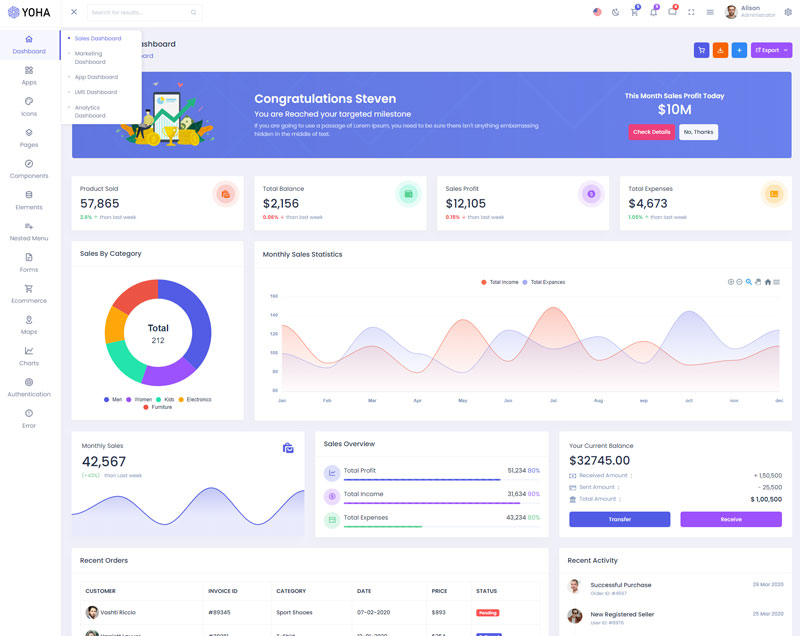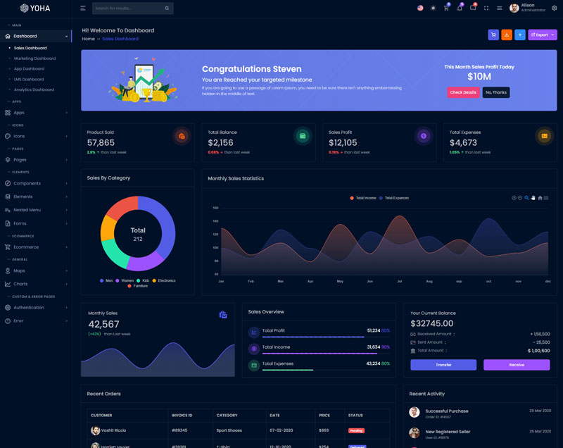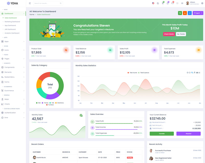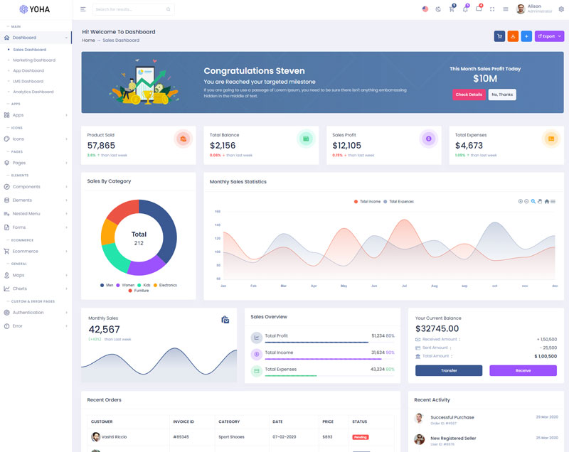 Yoha admin template comes with ready to use features. It has lots of ready-made features saves more time for developers.