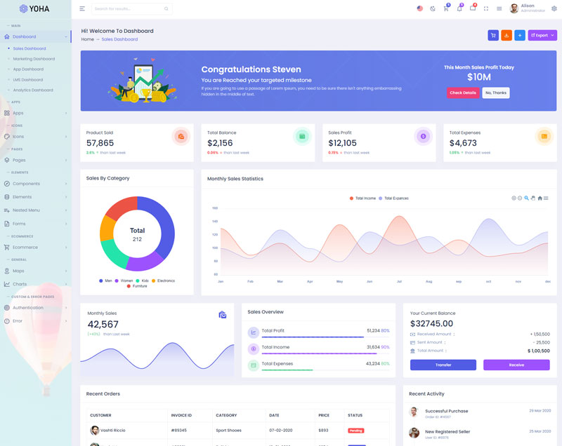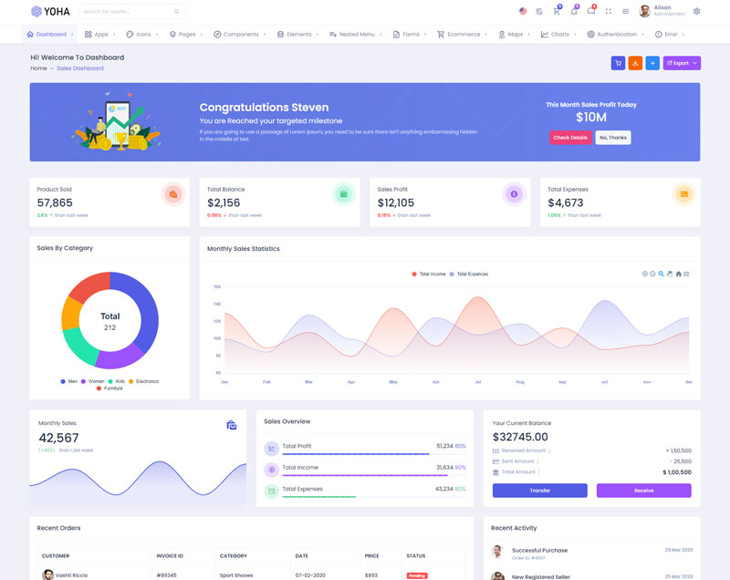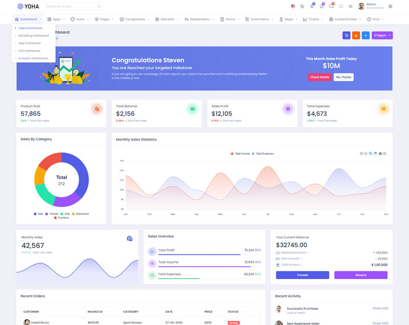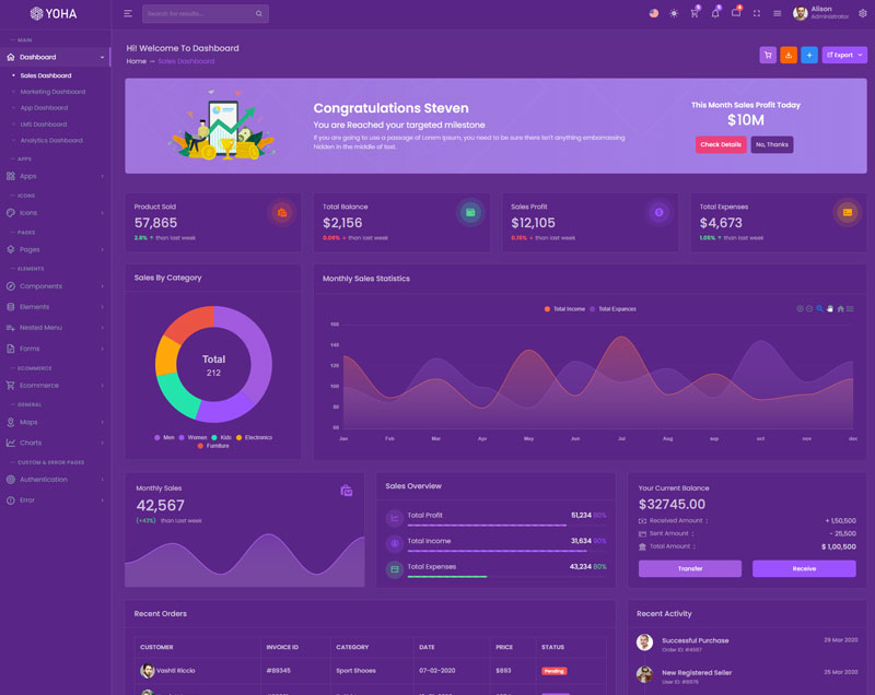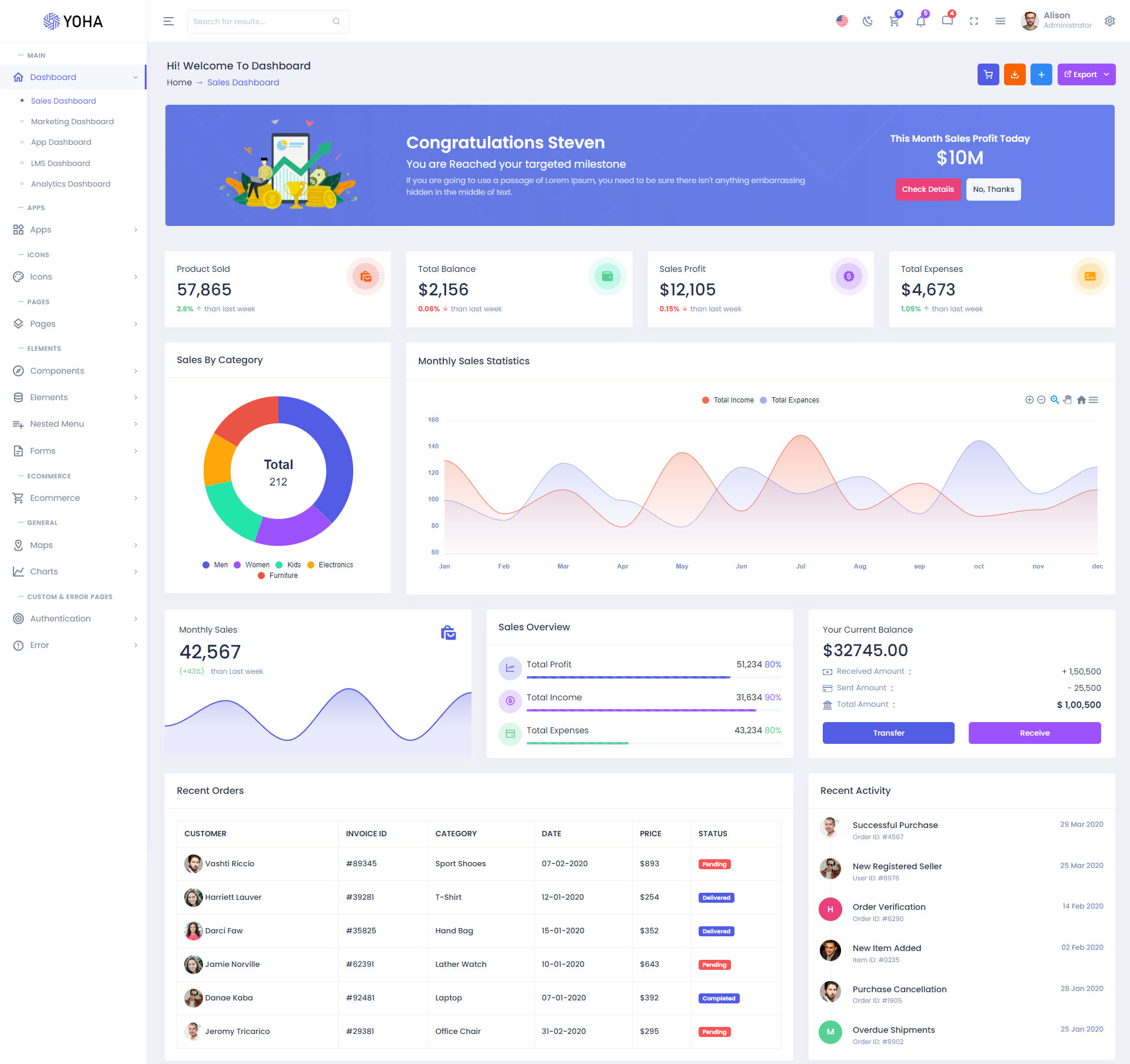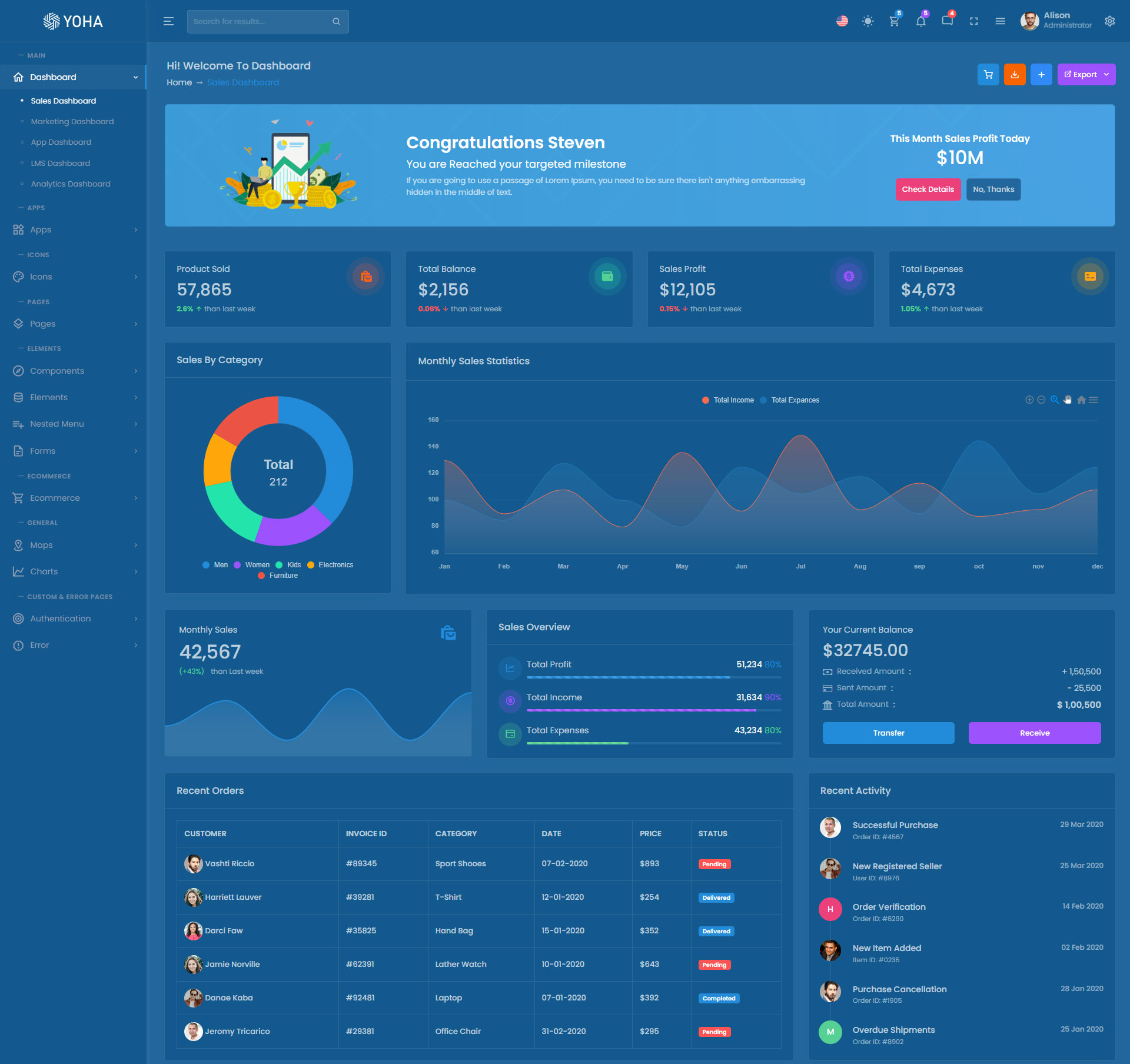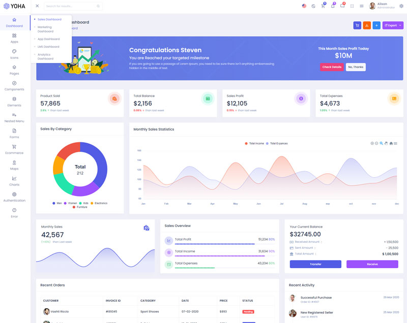 Yoha admin template comes with ready to use features. It has lots of ready-made features saves more time for developers.