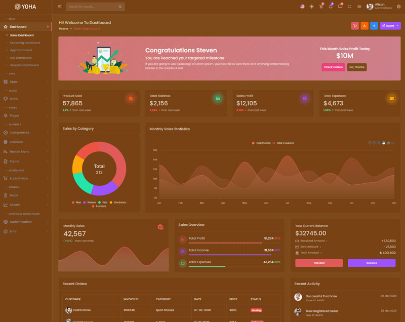 Have a look at the numerous versions we integrated in Yoha bootstrap-5 premium admin and dashboard template,where you can customize theme in unlimited ways.