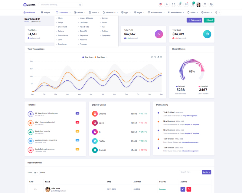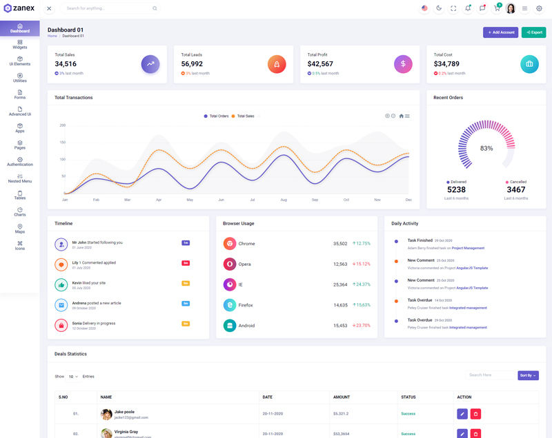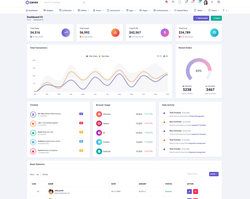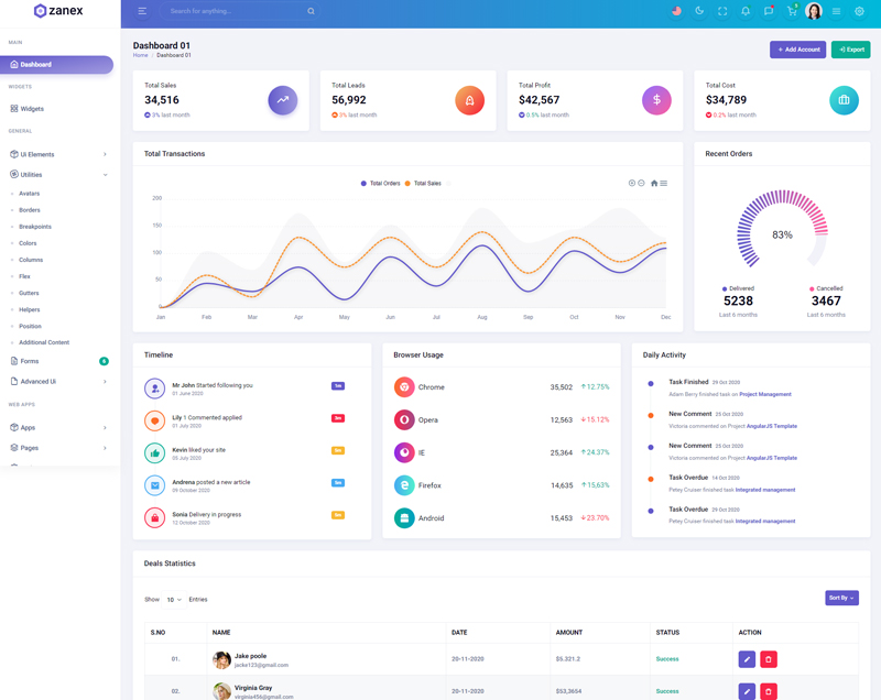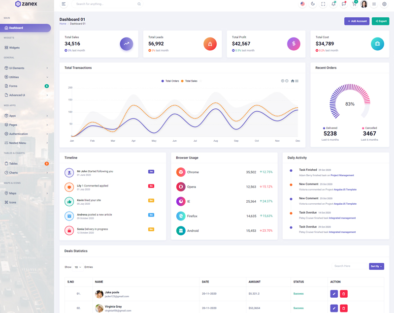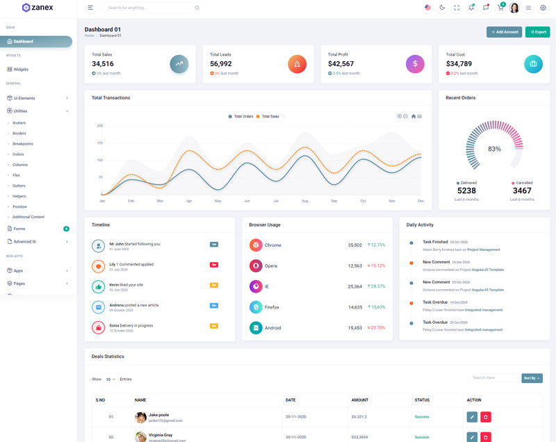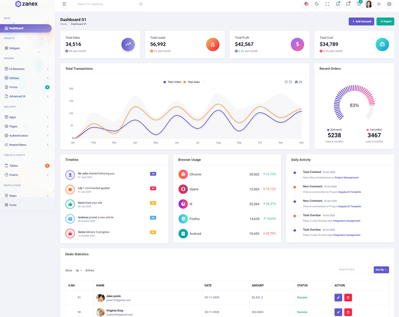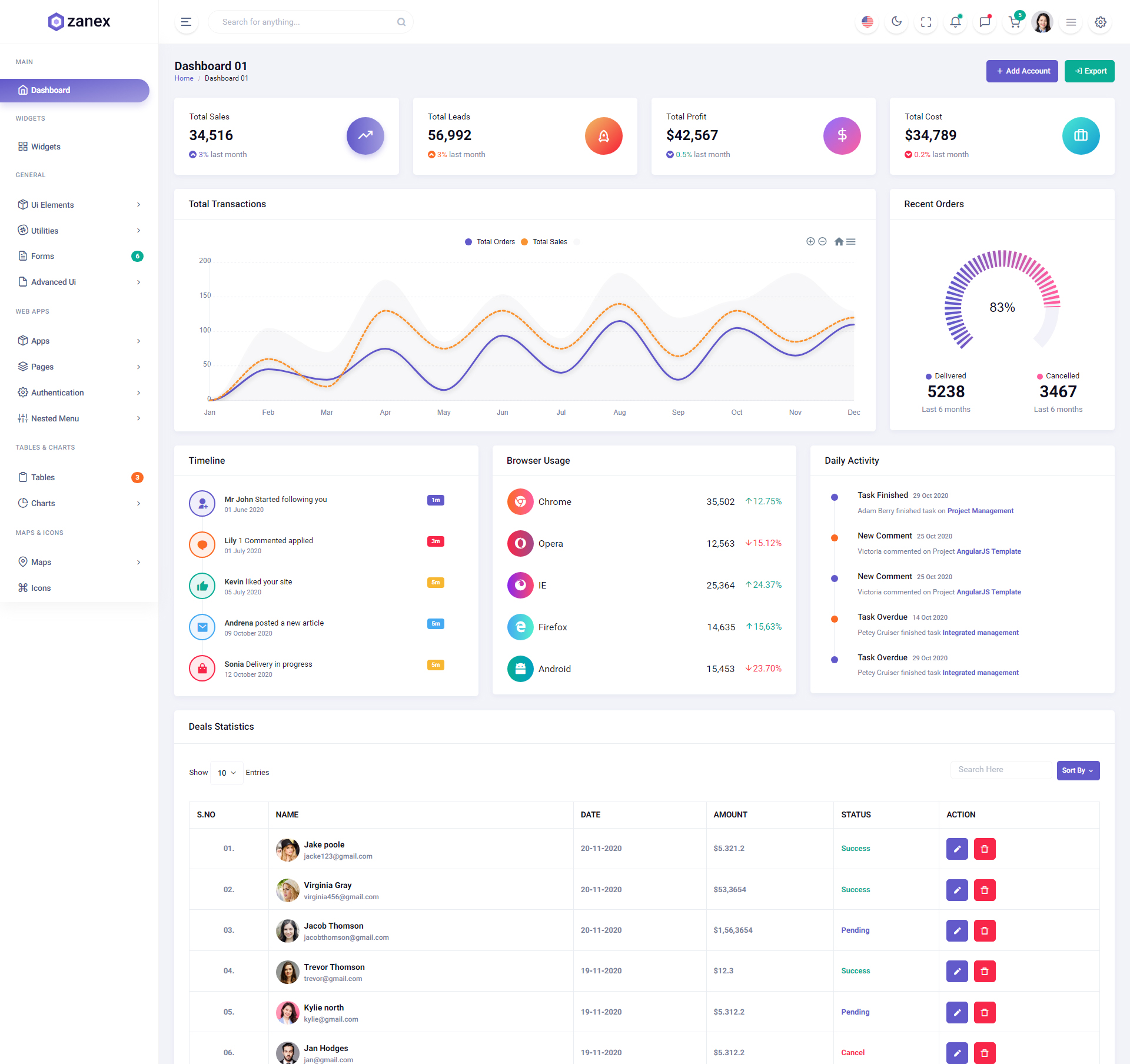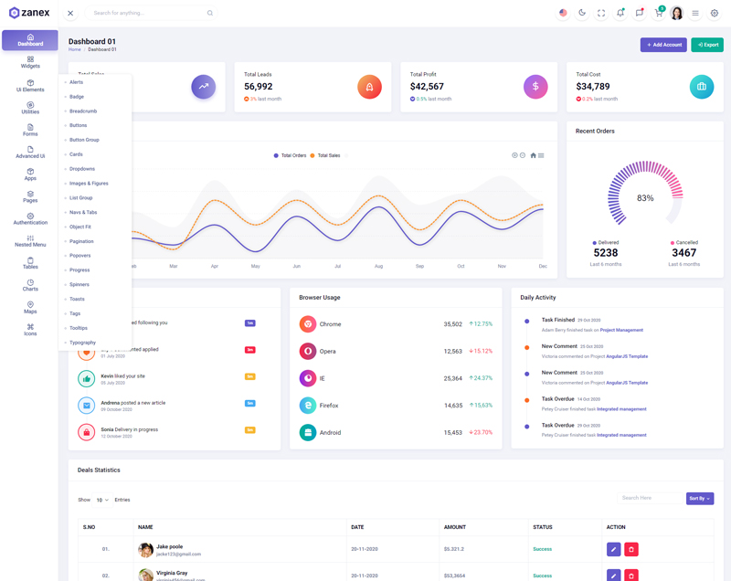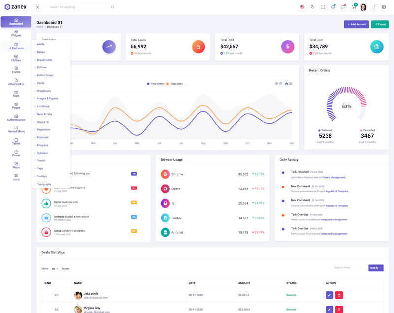 Explore the latest trending features incorporated into the Zanex Admin template, showcasing how we have enhanced and designed our template. When it comes to design, we always keep a close watch on the most trending features.