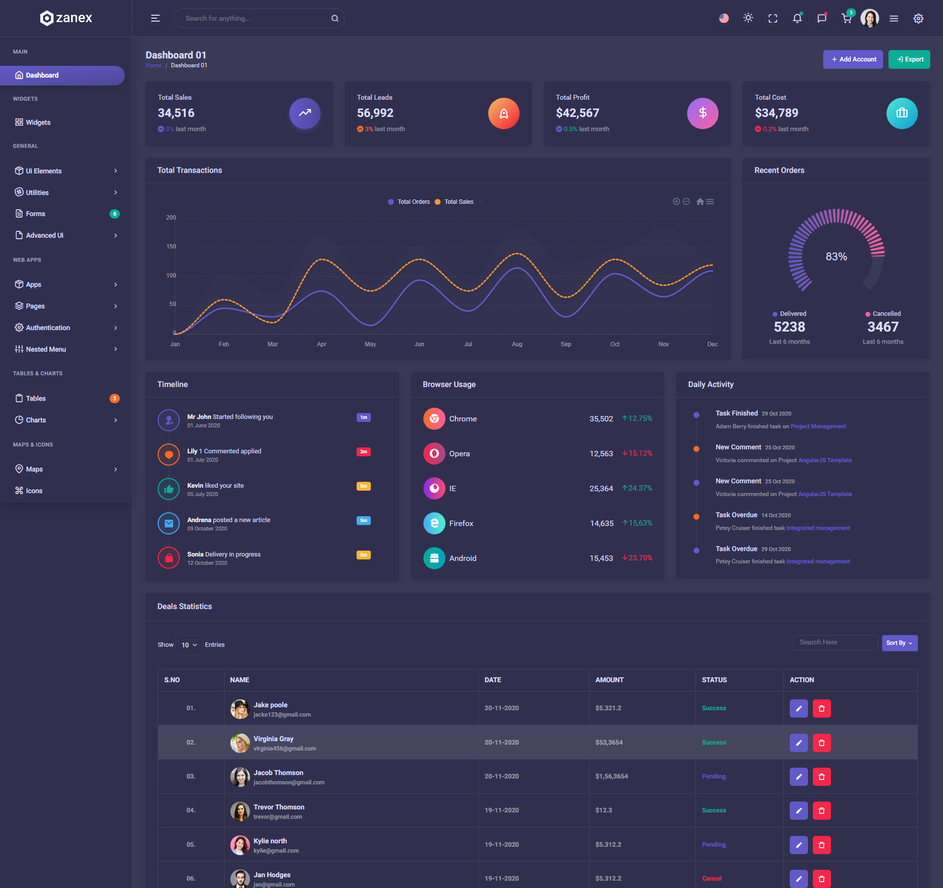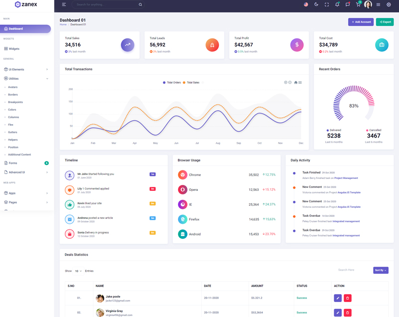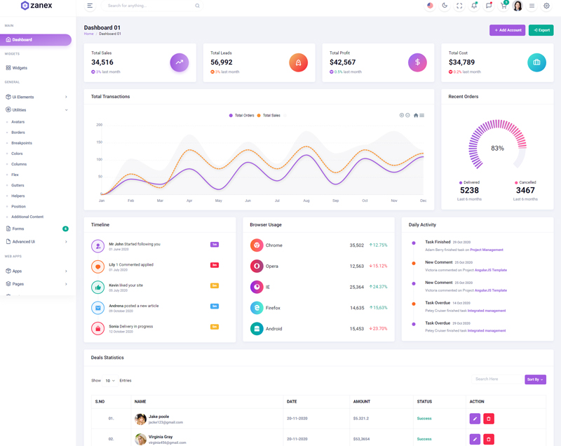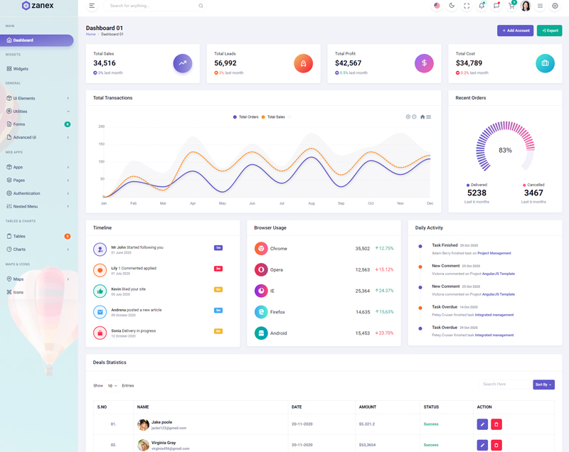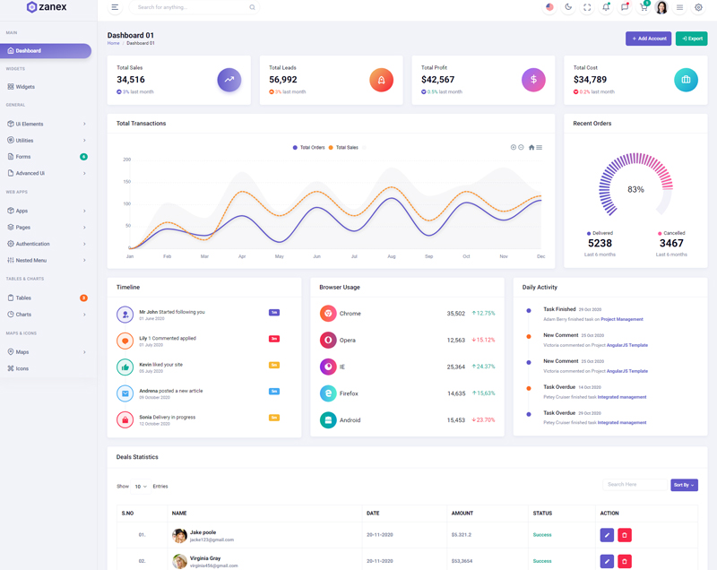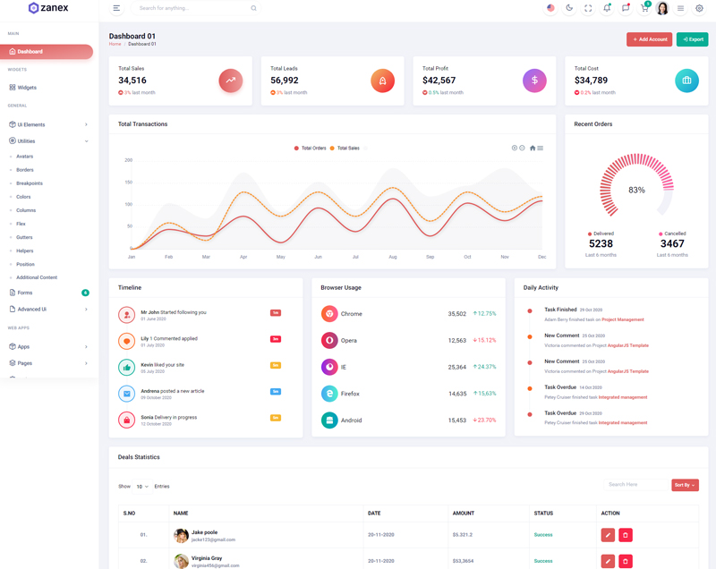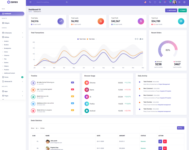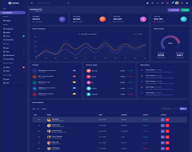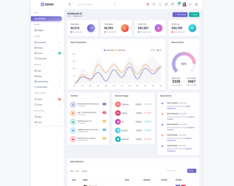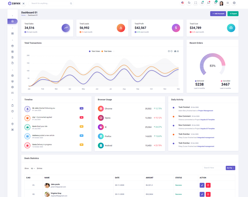 Explore the latest trending features incorporated into the Zanex Admin template, showcasing how we have enhanced and designed our template. When it comes to design, we always keep a close watch on the most trending features.