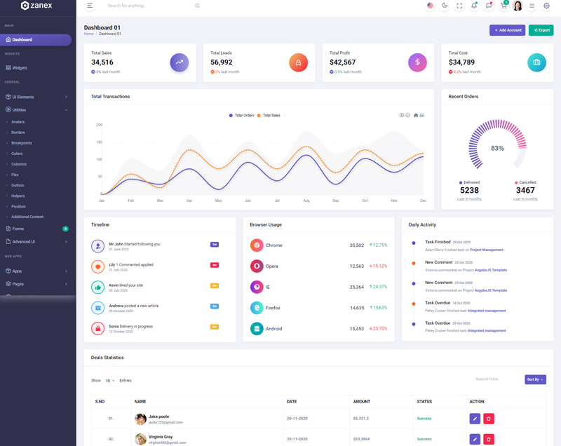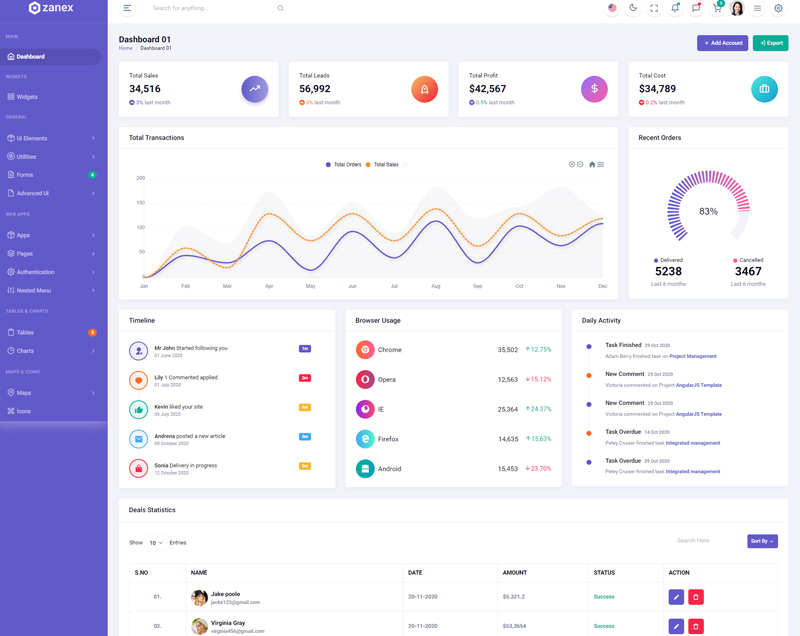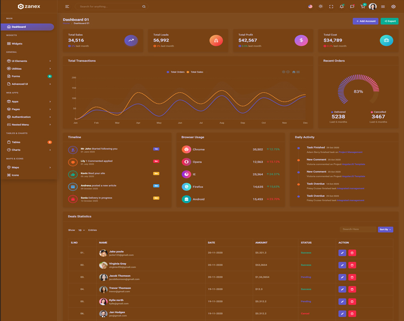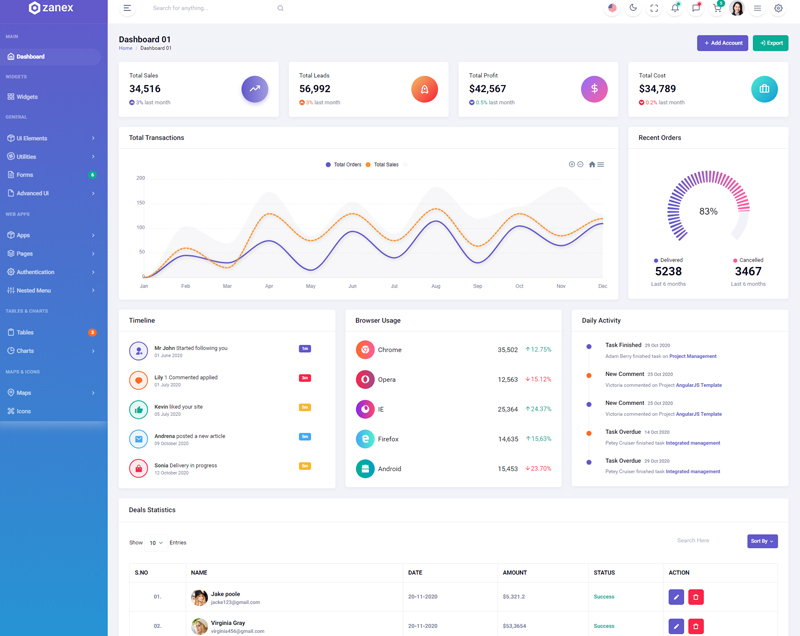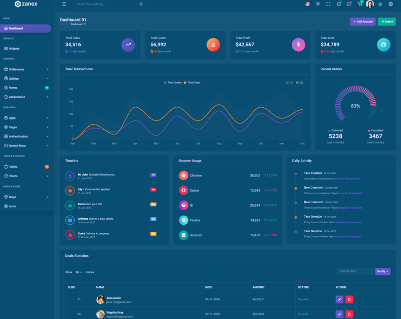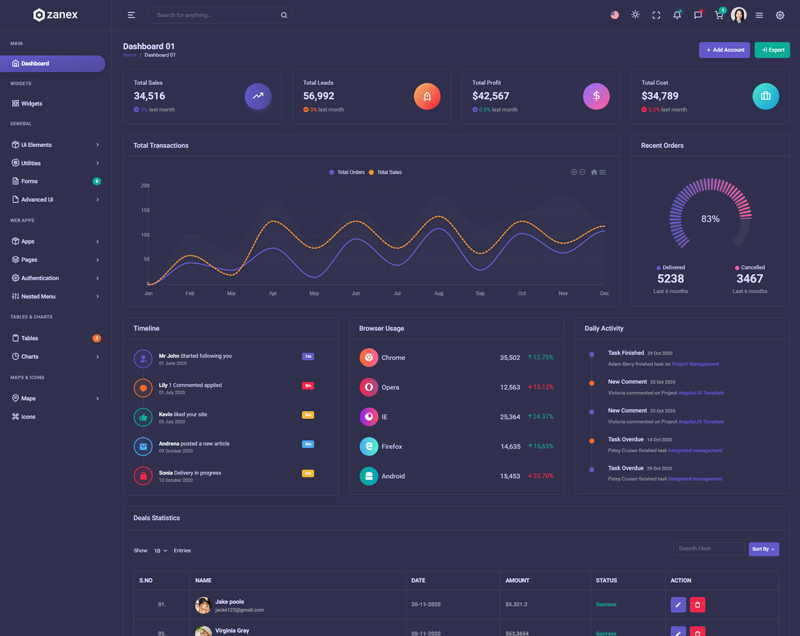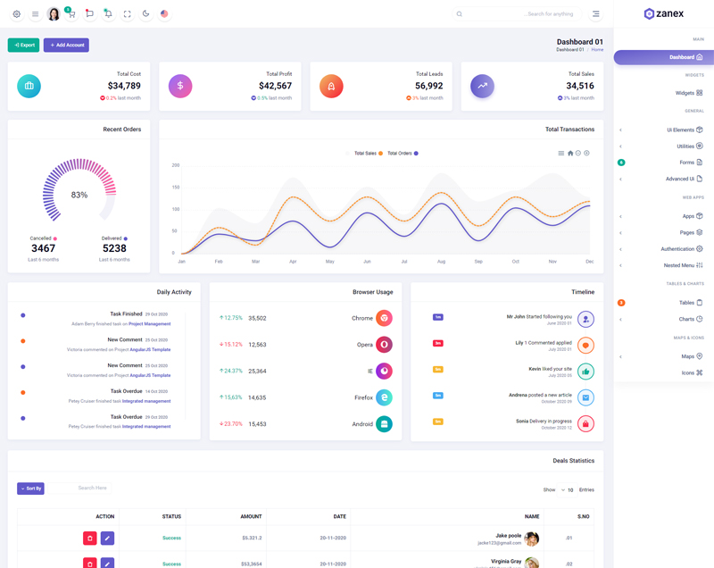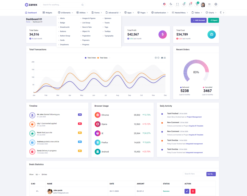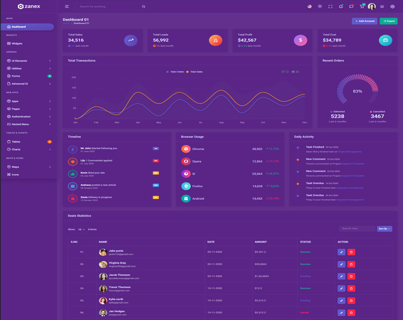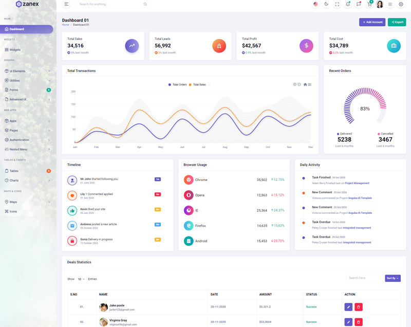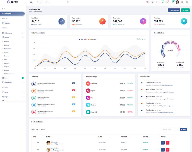 Explore the latest trending features incorporated into the Zanex Admin template, showcasing how we have enhanced and designed our template. When it comes to design, we always keep a close watch on the most trending features.