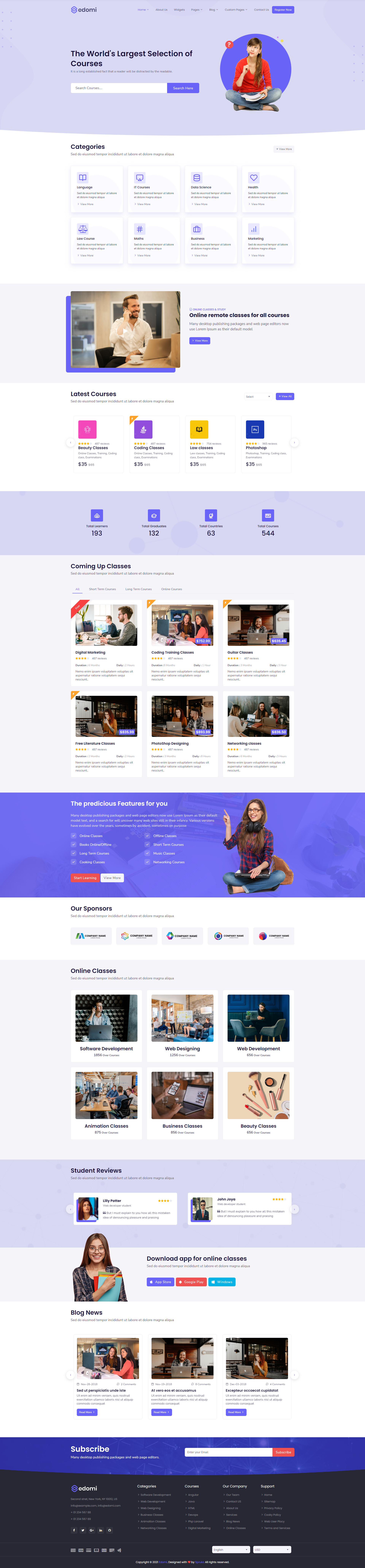 Edomi - Responsive Classified Ads Bootstrap 5 HTML 5 Listing Template is available with 9 home pages . So that users can choose their best theme and customize the Edomi Listing template according to their choice.