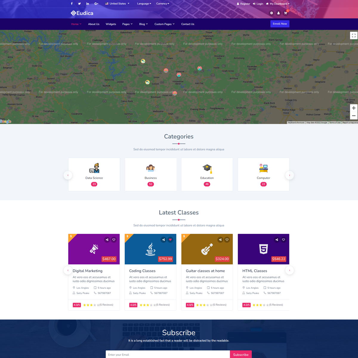 Enjoy free lifetime updates once you purchase the Eudica Online Education & Learning Courses Listing Template. If you have any questions, comments, or concerns, we're here to help!