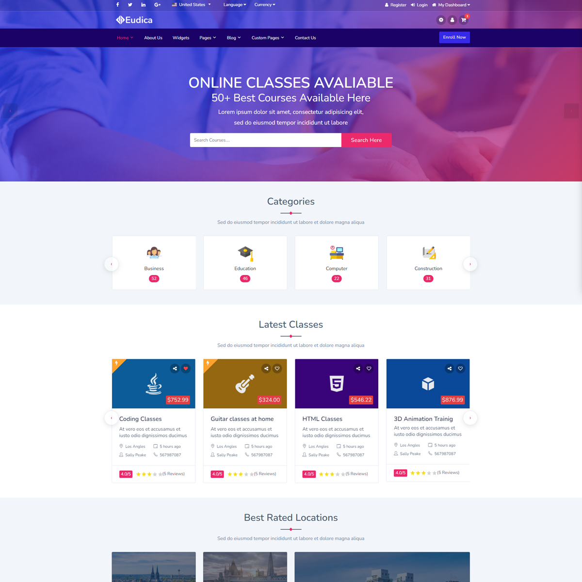 Eudica Online Education & Learning Courses Listing Template Main Features