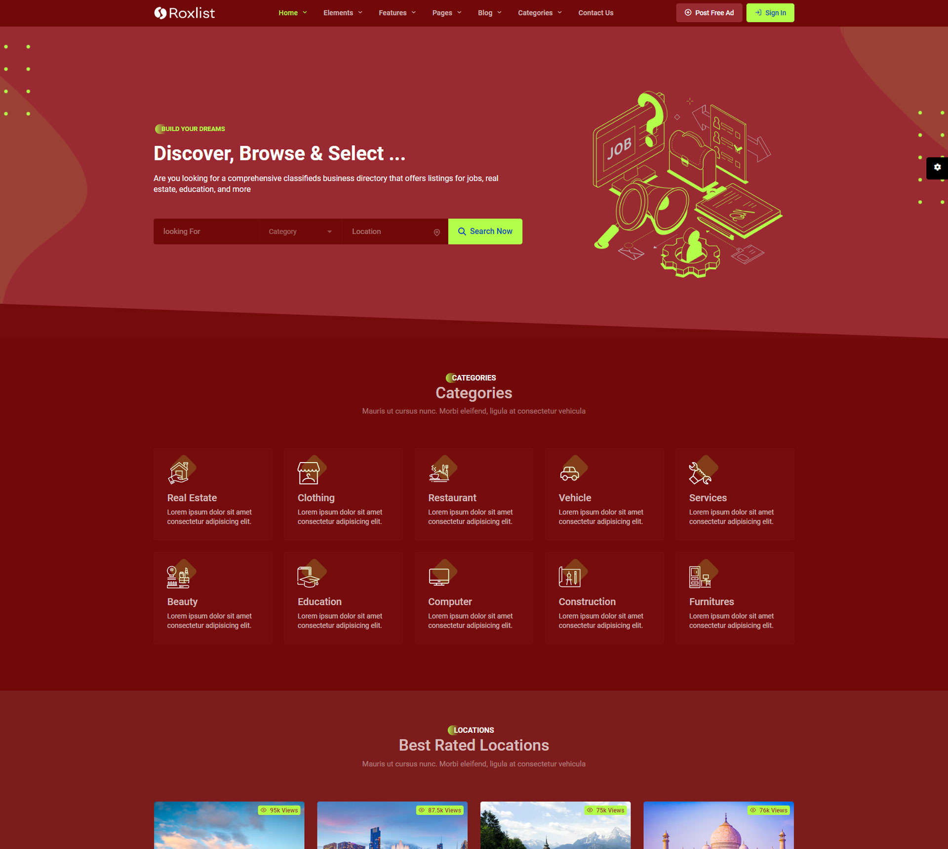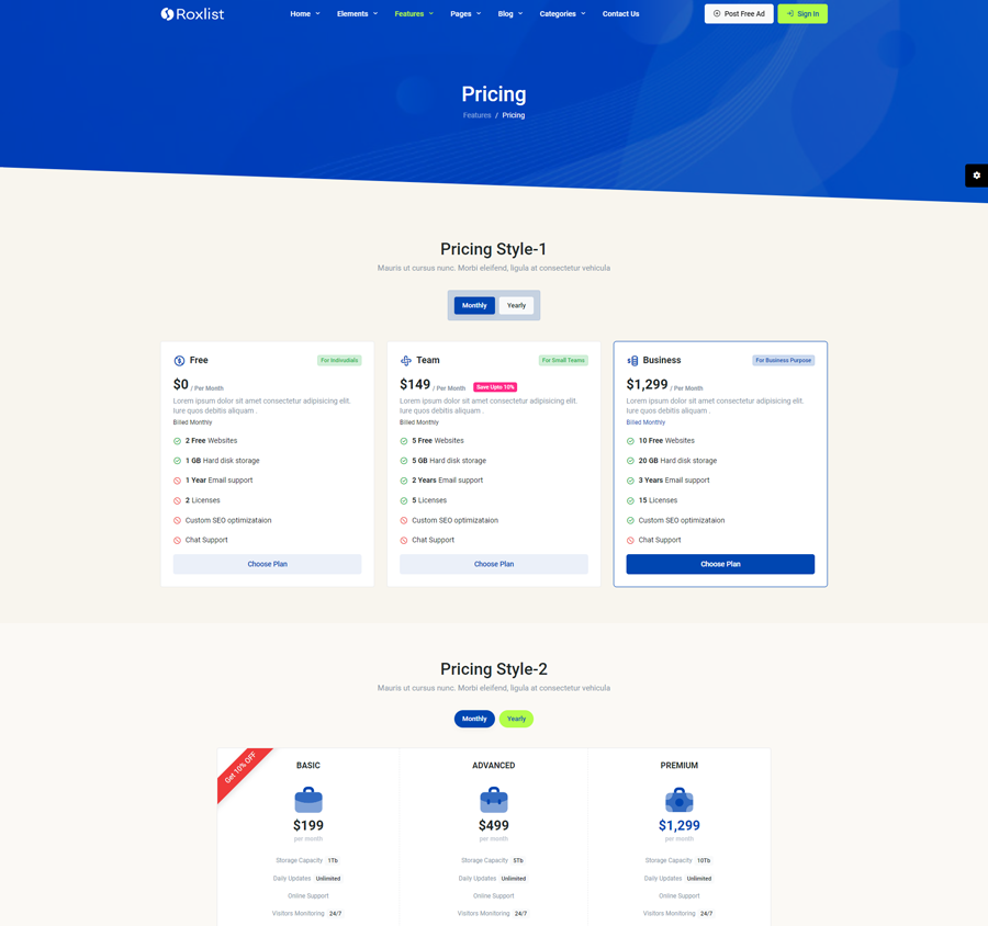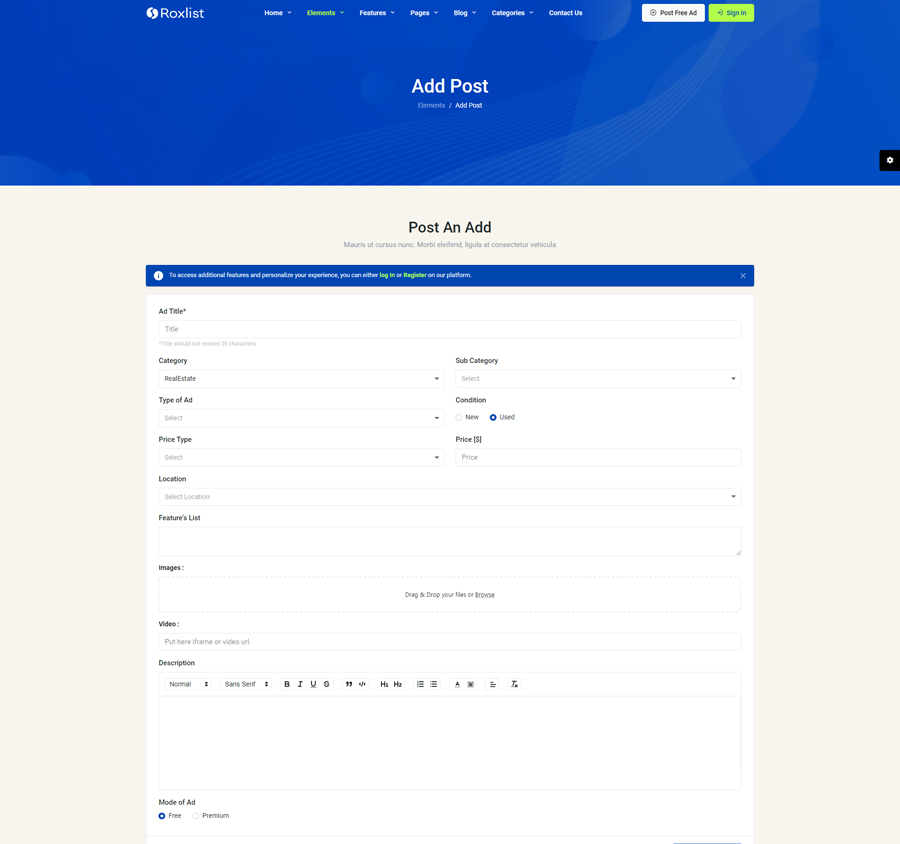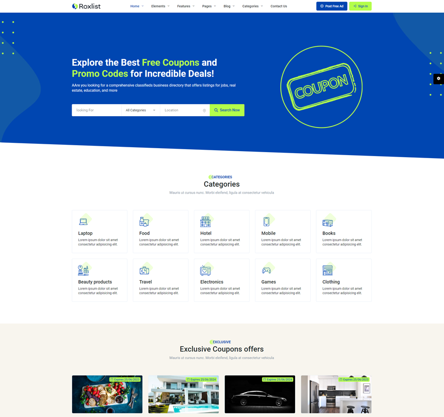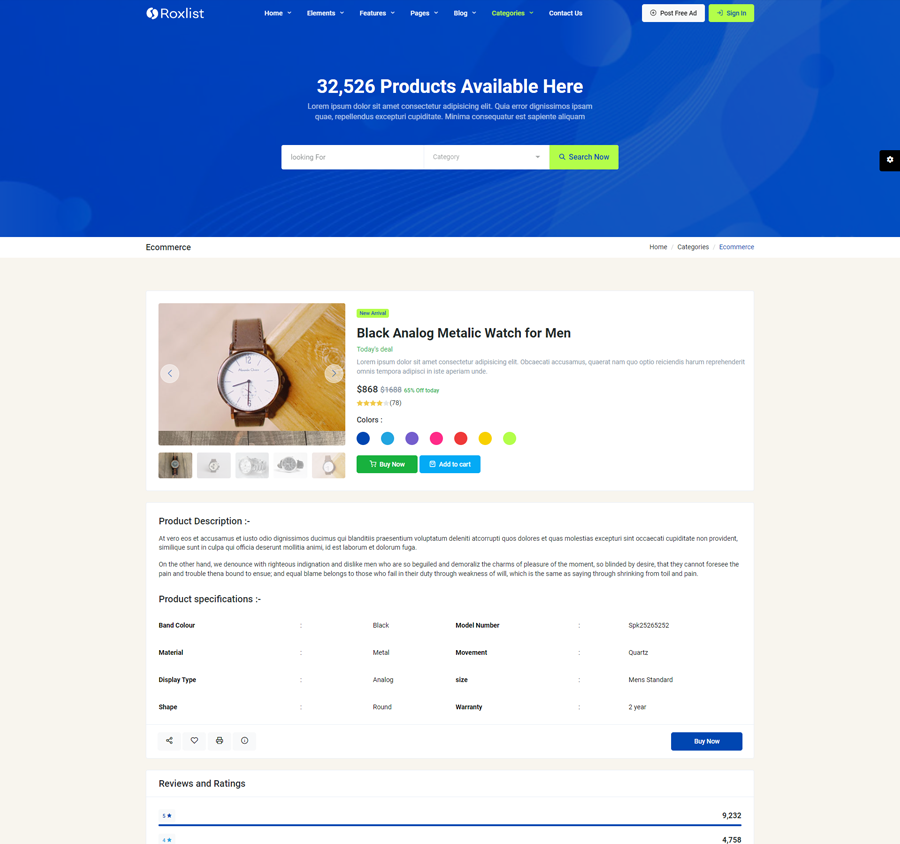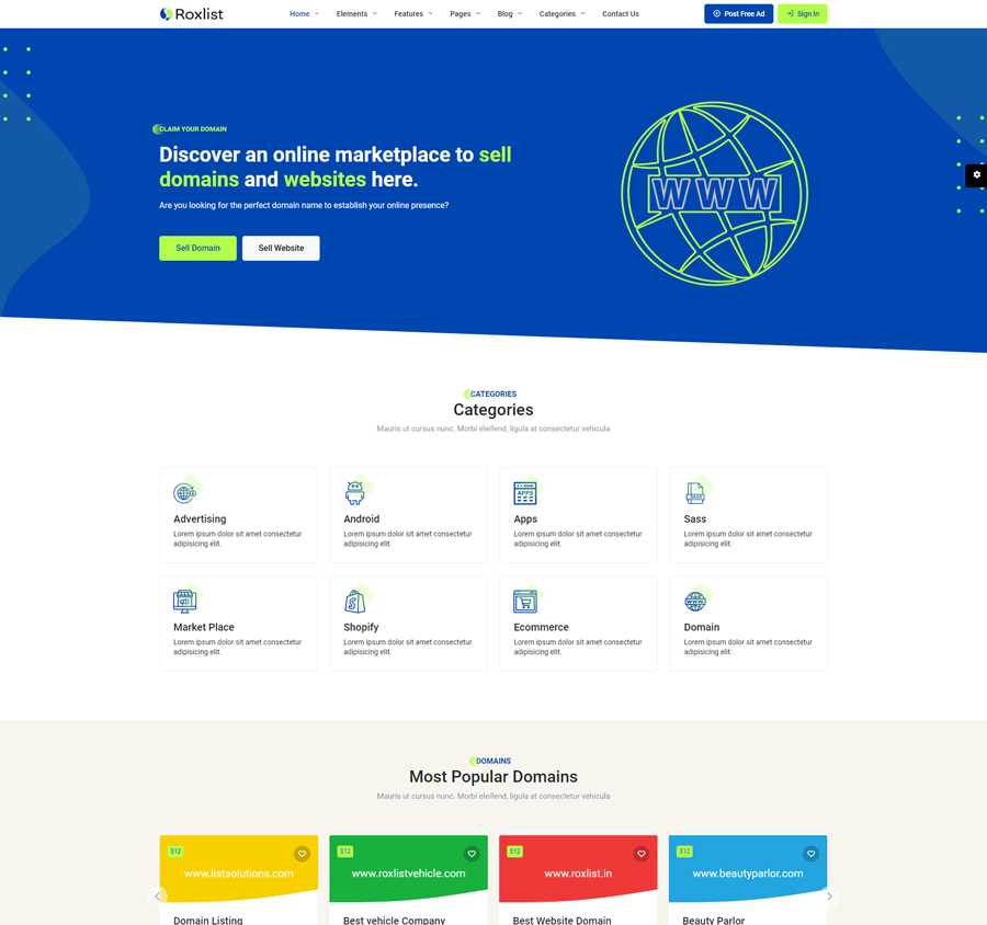 Roxlist Listing Template Main Features