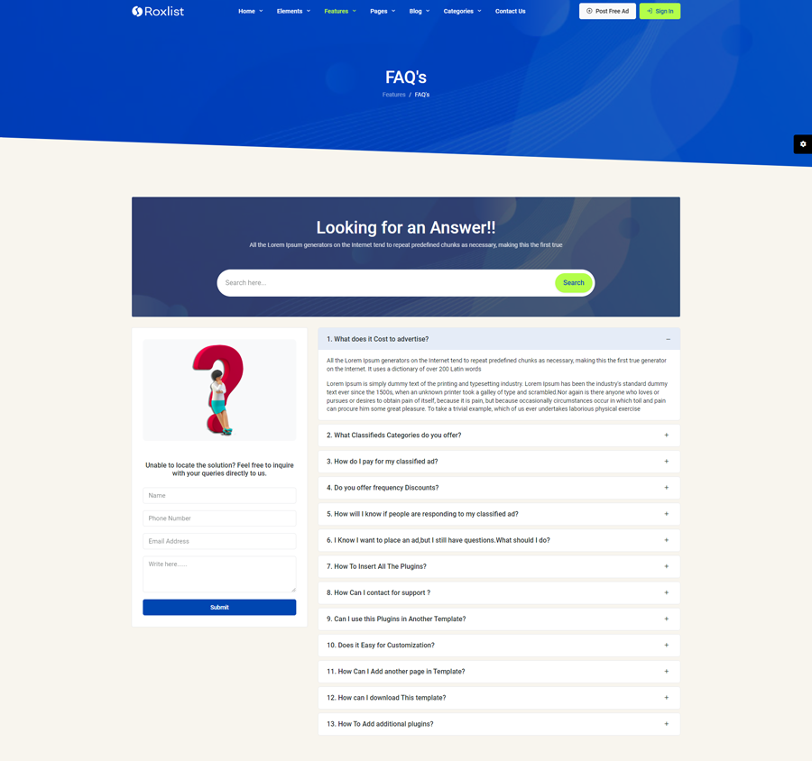 This is the basic information related to “Roxlist bootstrap-5 Listing Template”.