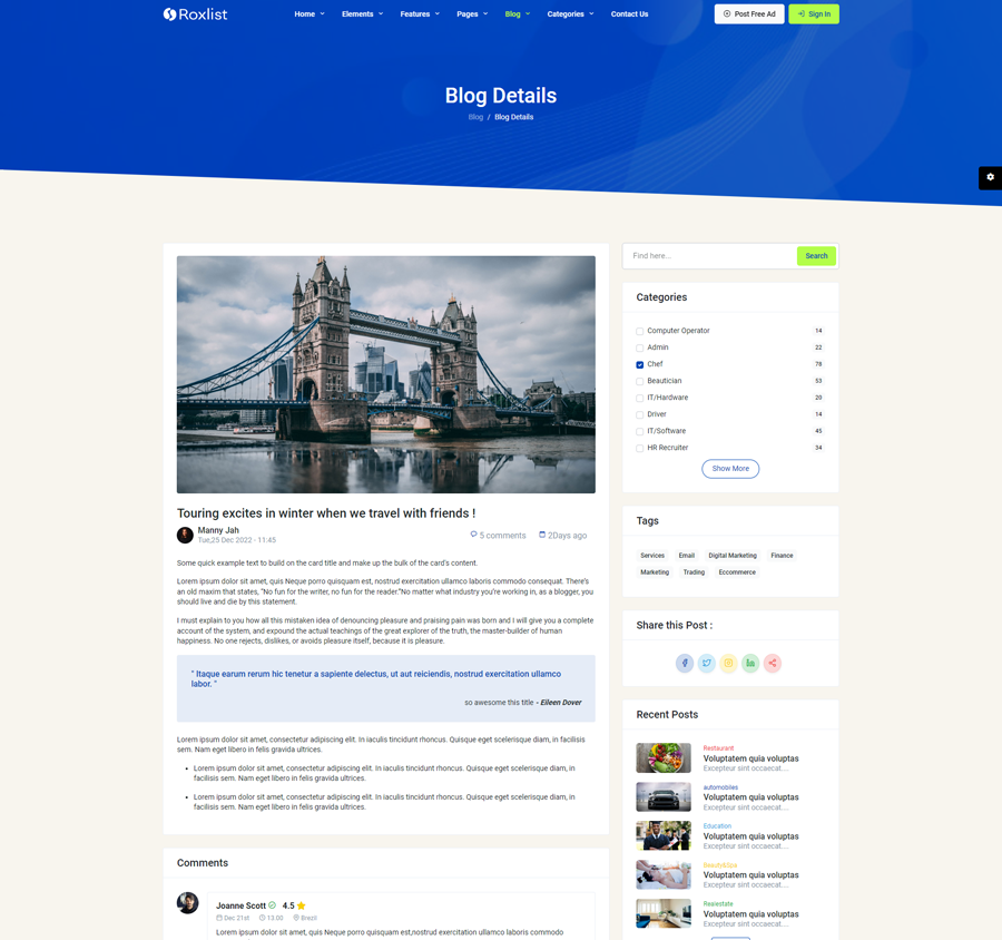 Explore the latest trending features incorporated into the Roxlist Listing template, showcasing how we have enhanced and designed our template. When it comes to design, we always keep a close watch on the most trending features.
