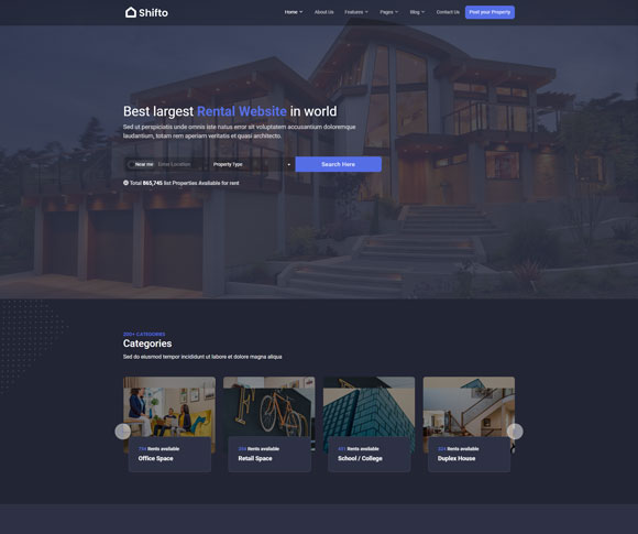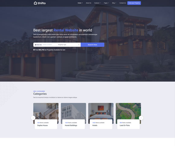 Shifto - Bootstrap HTML Rent Template is available with 10 home pages . So that users can choose their best theme and customize the Shifto Listing template according to their choice.