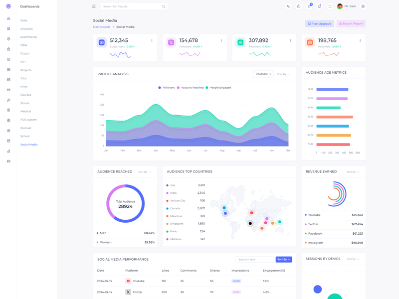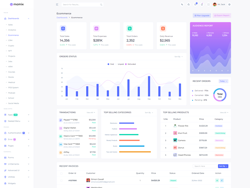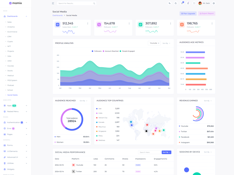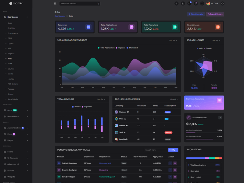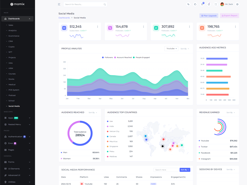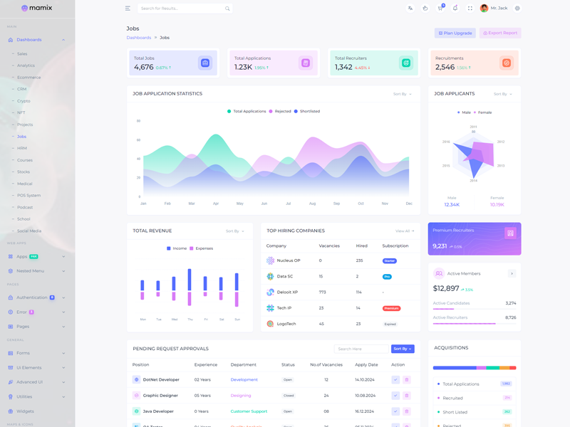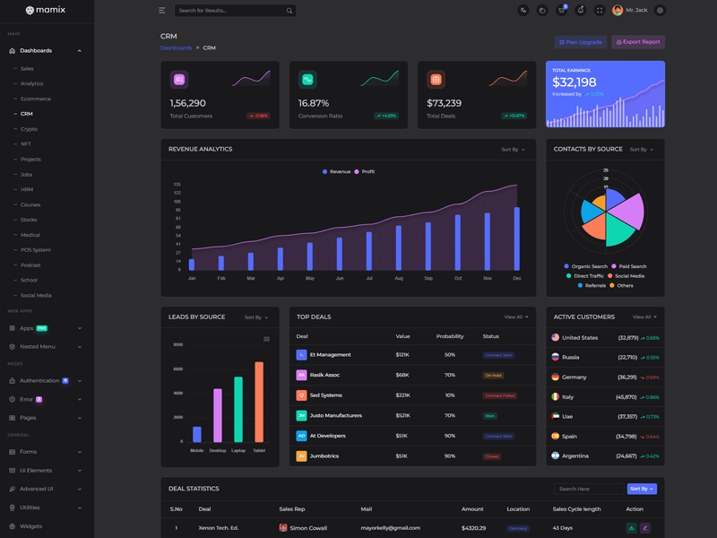 Mamix offers 16 attractive dashboards with various themes for users to customize the tailwind admin template according to their preferences.