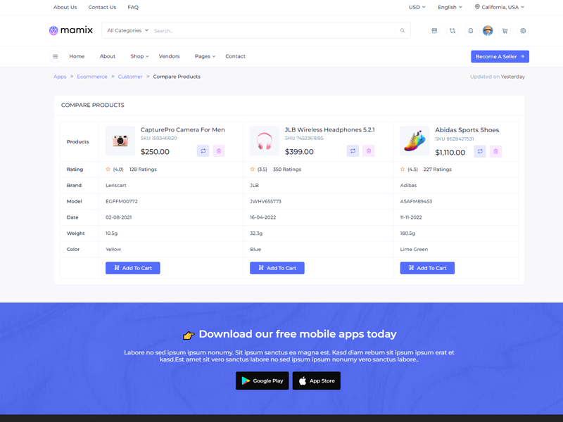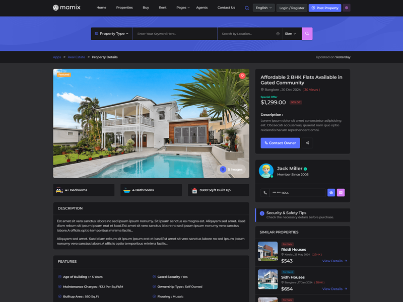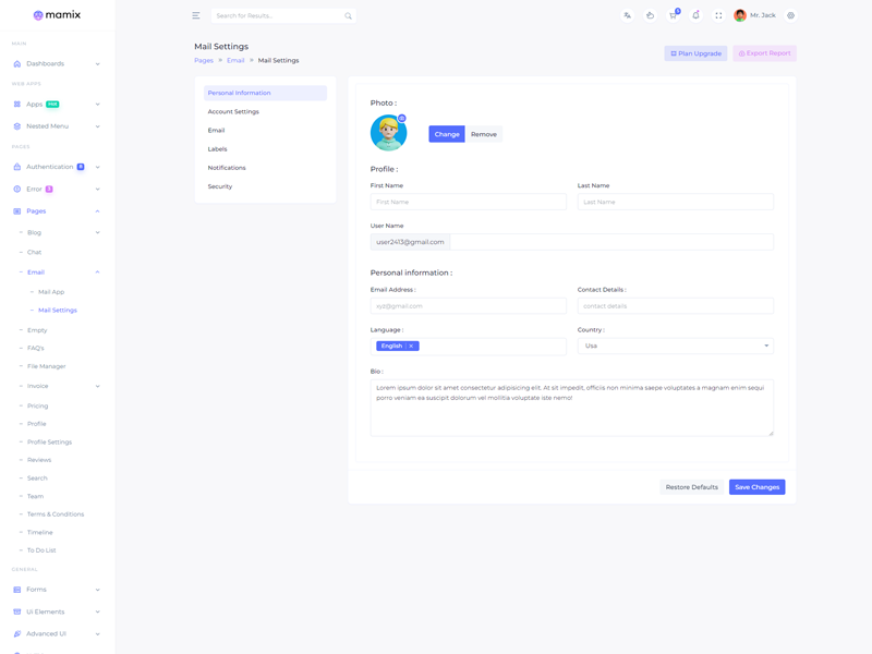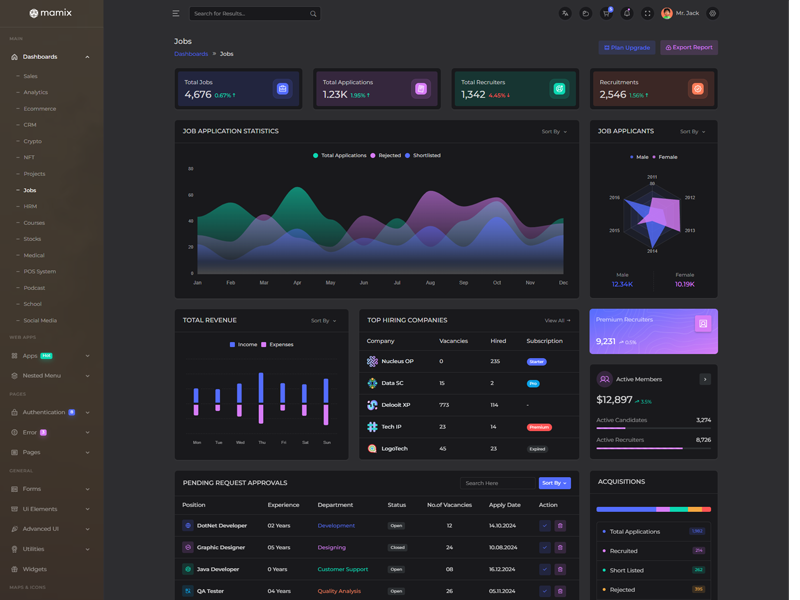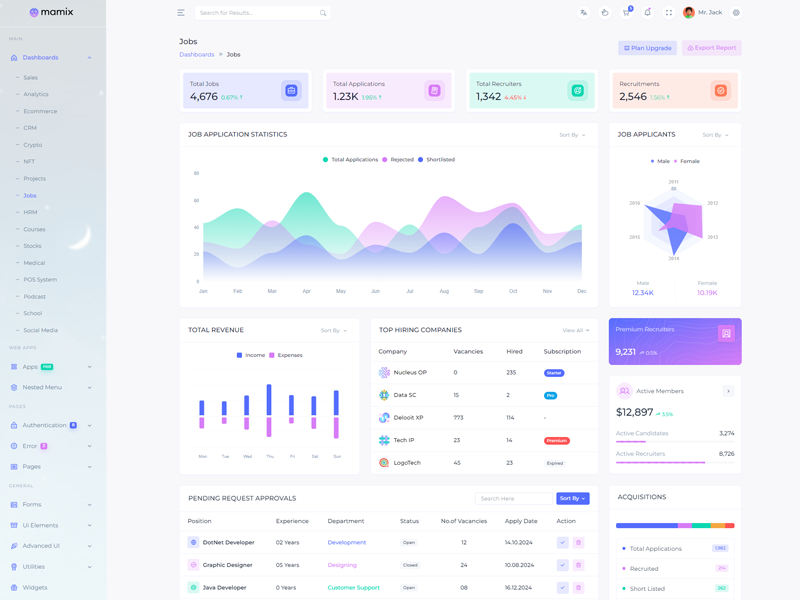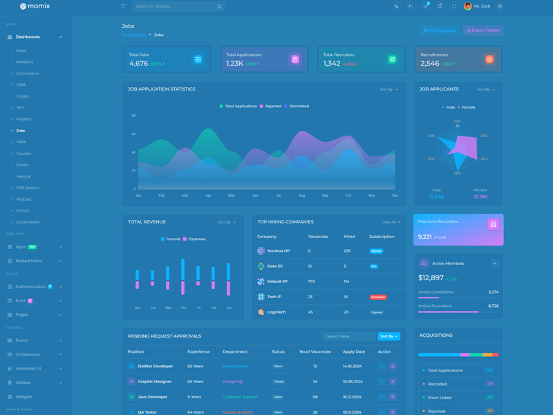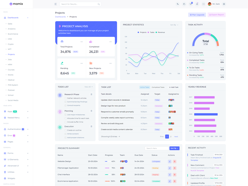 Mamix admin template comes with ready to use features. It has lots of ready-made features saves more time for developers.