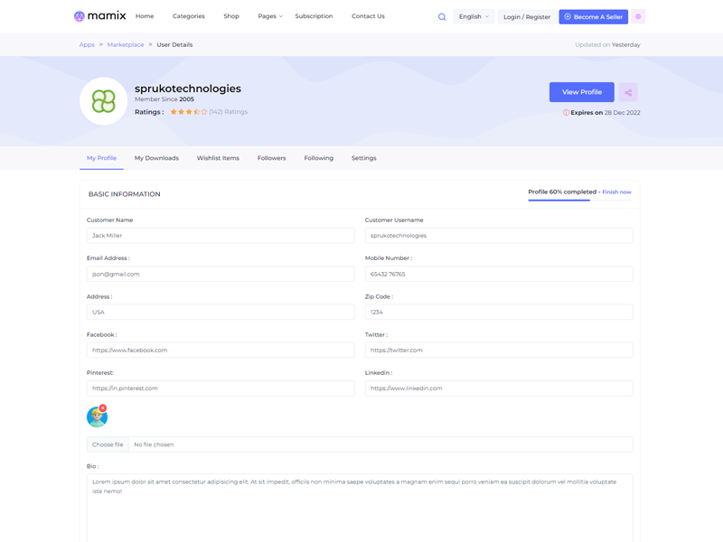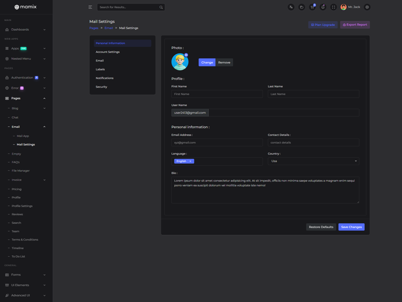 This is the basic information related to “Mamix bootstrap-5 Dashboard Template”.