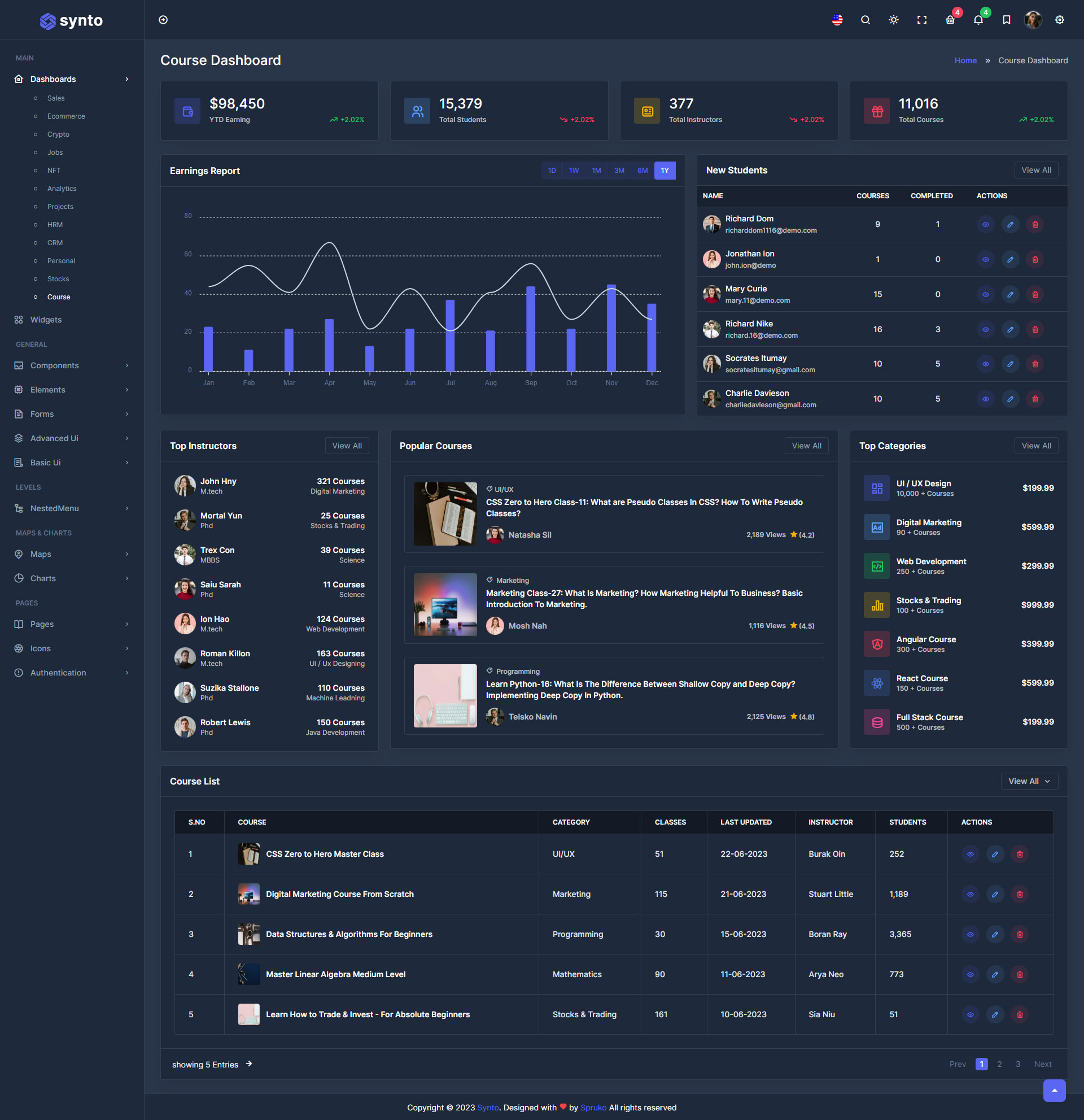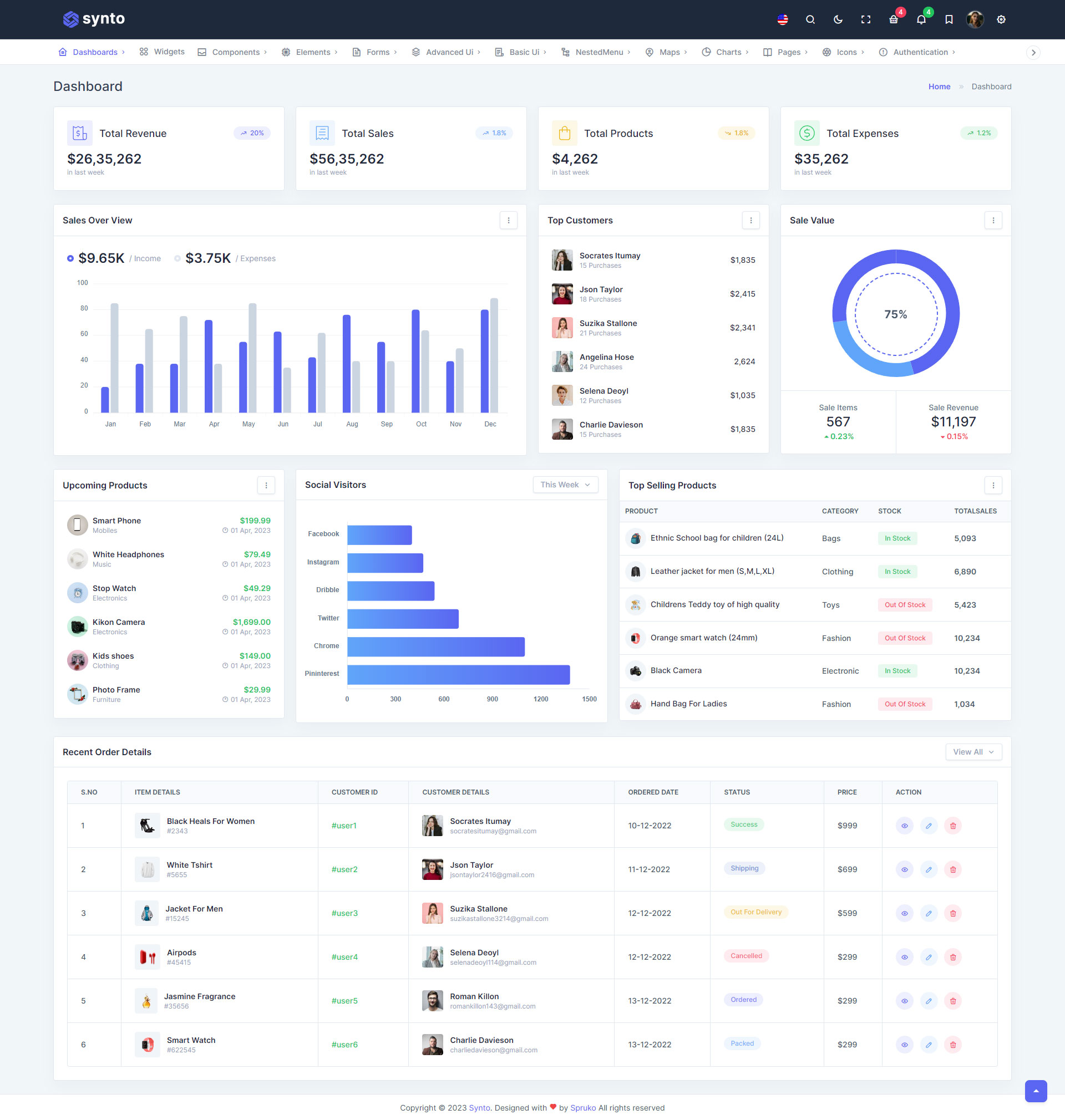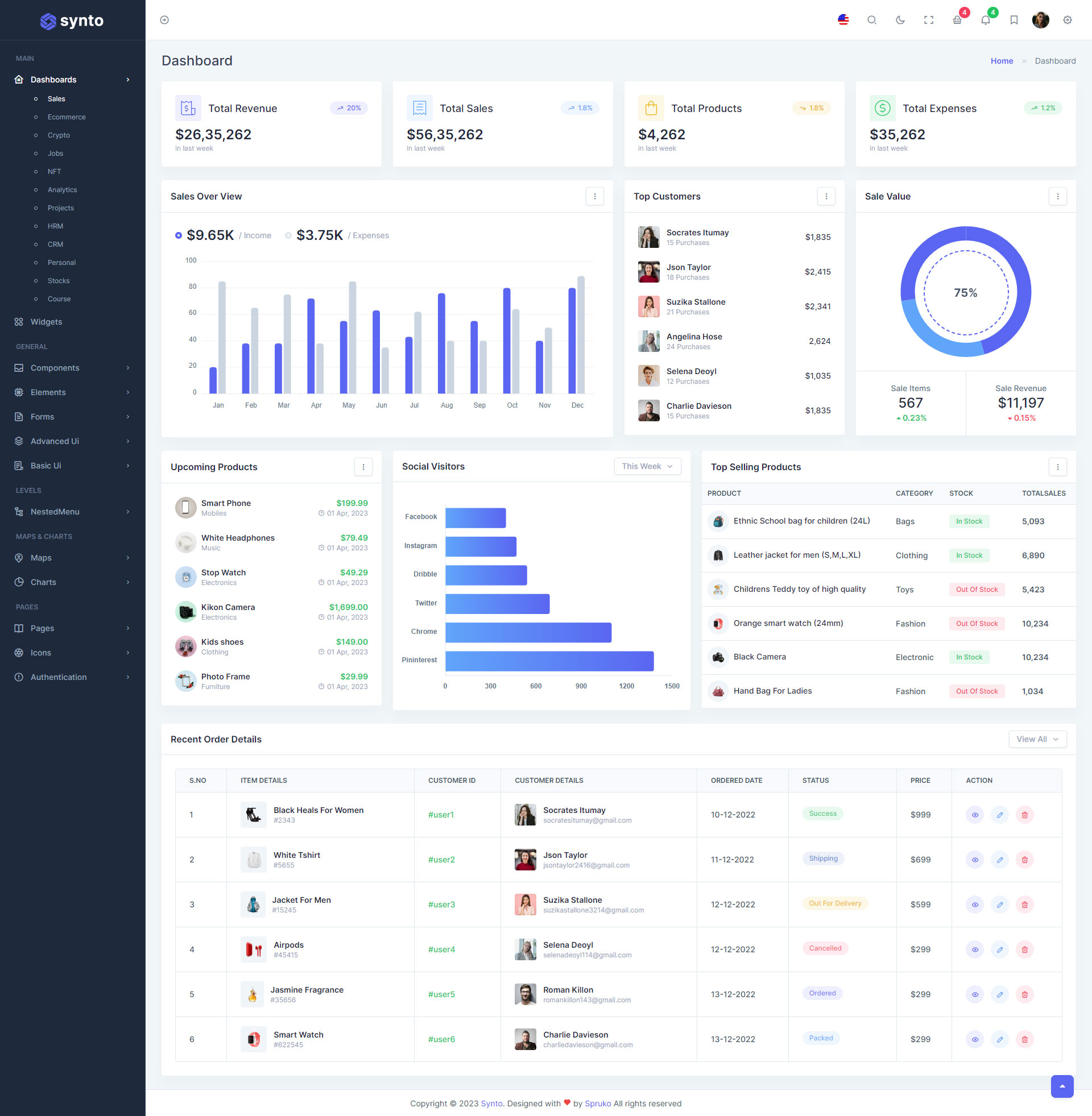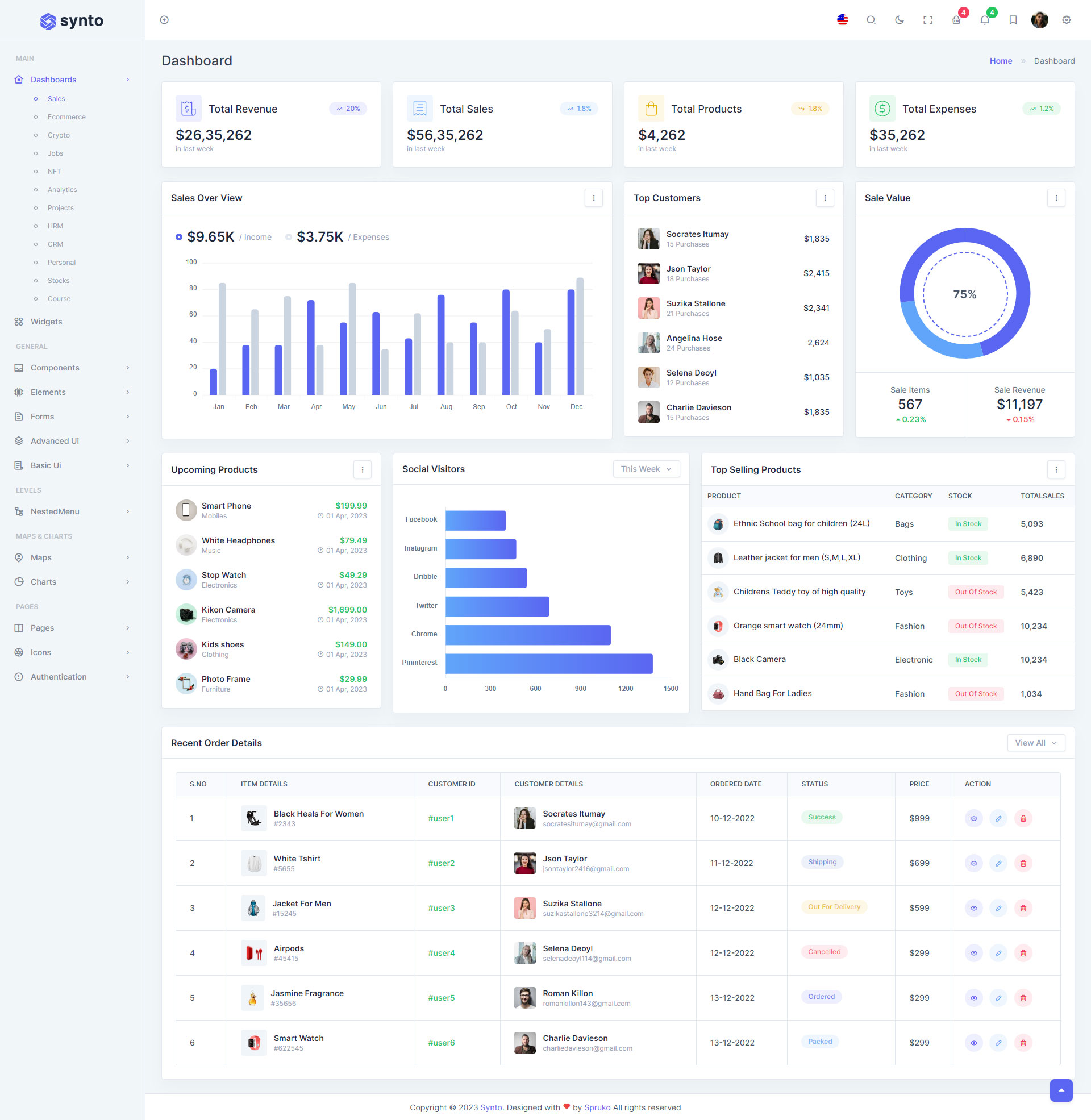 Synto - Now you can use this admin template to design stunning dashboards that will wow your target viewers or users to no end. To create a good and well-structured dashboard, you need to start from scratch with HTML, SCSS, CSS, and JS and with lots of coding, but by using this Synto -Admin template, you can customise your dashboard effortlessly within no time.