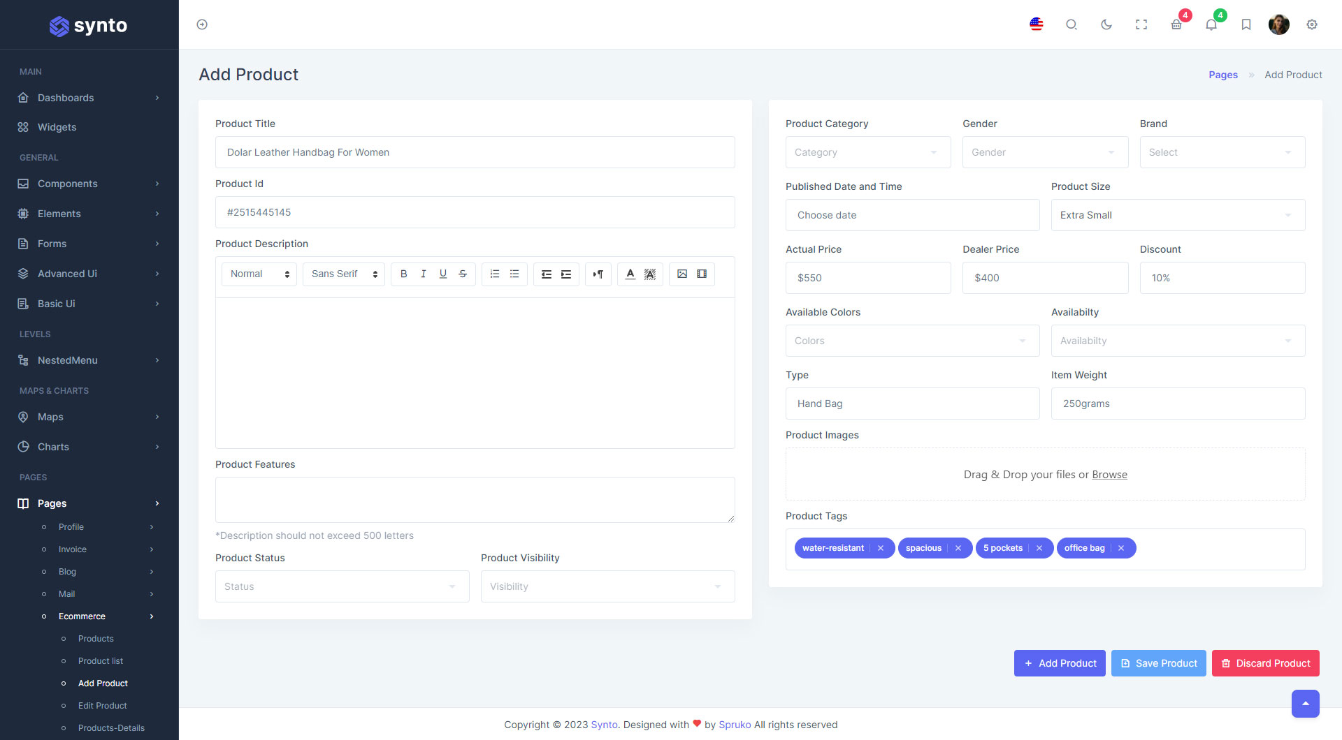 Synto Tailwind Admin Template comes with ready to use features. It has lots of readymade features saves more time for developers.