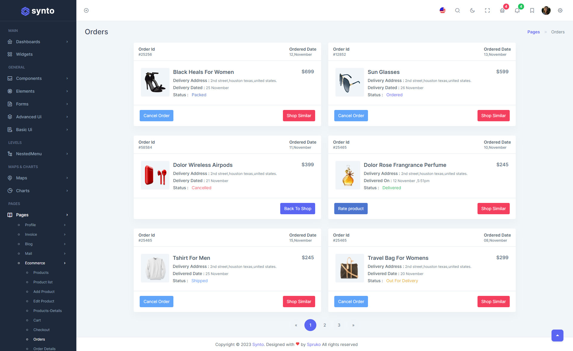 Here are some of the pages in Synto tailwind admin template ui design,no need of additional customization required,designed perfectly for ready to use template.