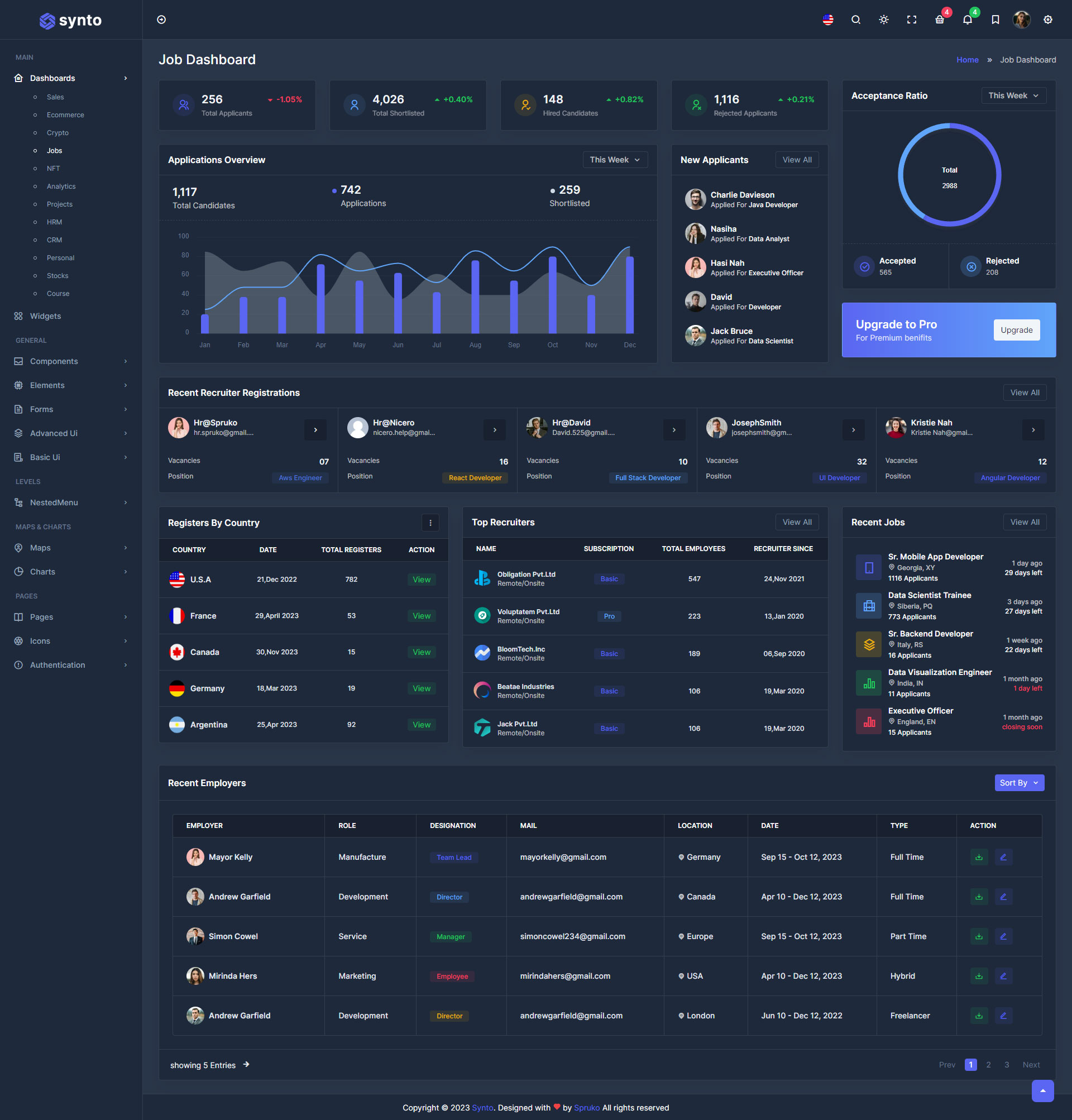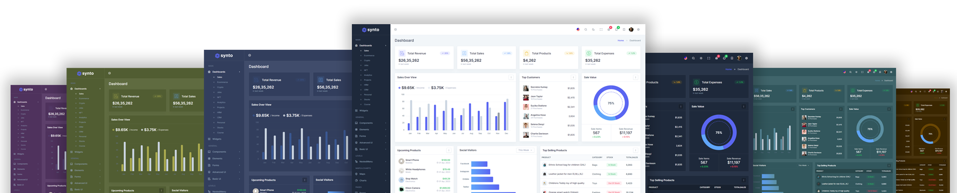 Here, Synto 12 beautiful dashboards and comes with different types of themes. So that users can choose their best theme and customize the Synto - Tailwind Admin Template according to their choice.