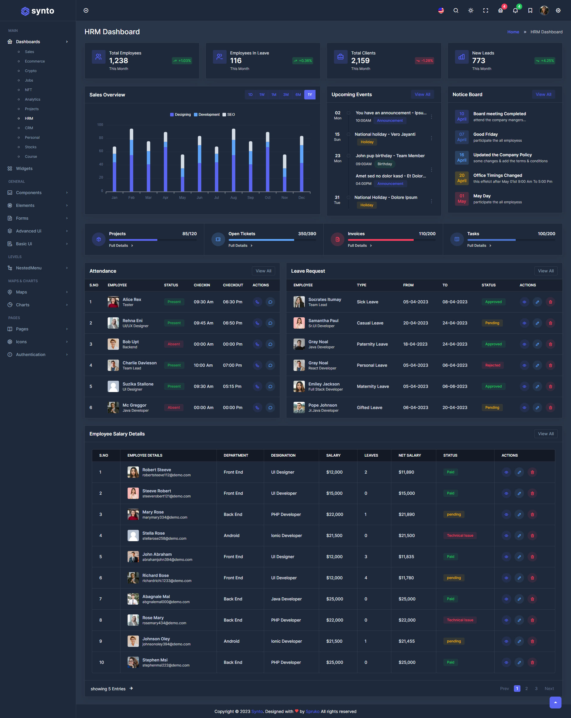 Check out these most trending features that are used in the Synto Tailwind Admin Template that shows how we improved and designed our template. When it came to designing, we keep an eye on the most trending feature..
