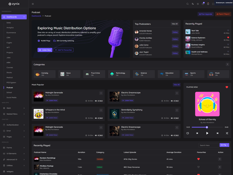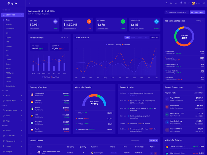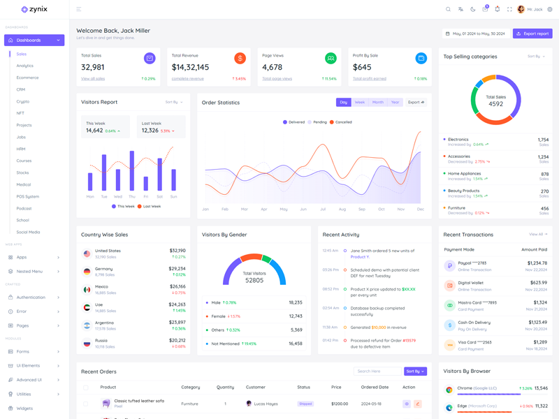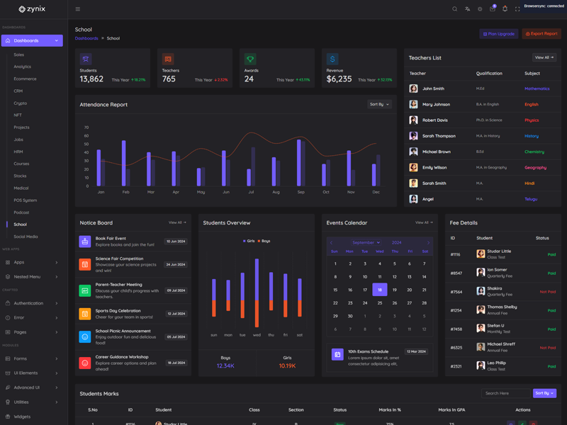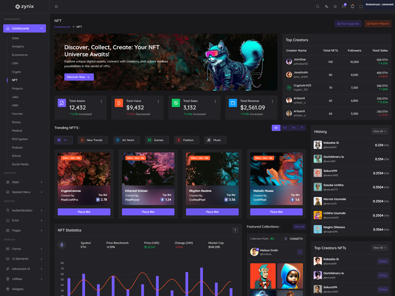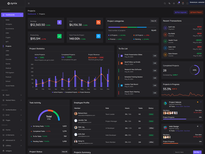 Discover the latest trending features integrated into the Zynix Tailwind Admin & Dashboard Template, highlighting how we’ve enhanced and designed our offering. We consistently monitor the most popular design trends to ensure our template remains cutting-edge.